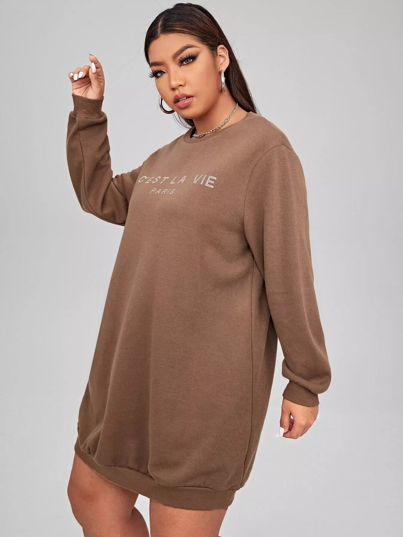 بلس سويت شيرت منسدل الكتف مزين بشعار الراين