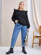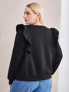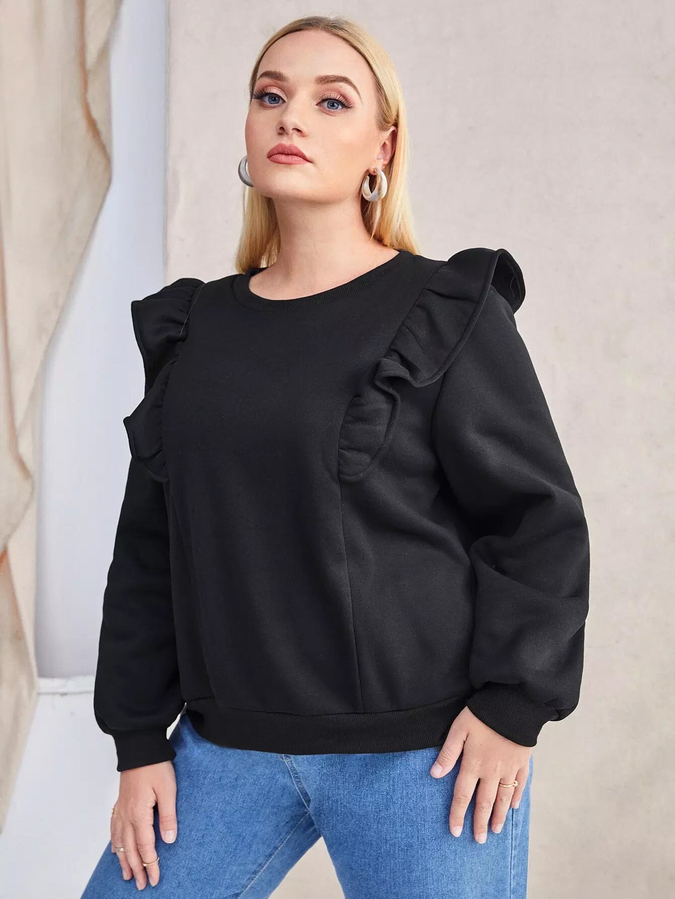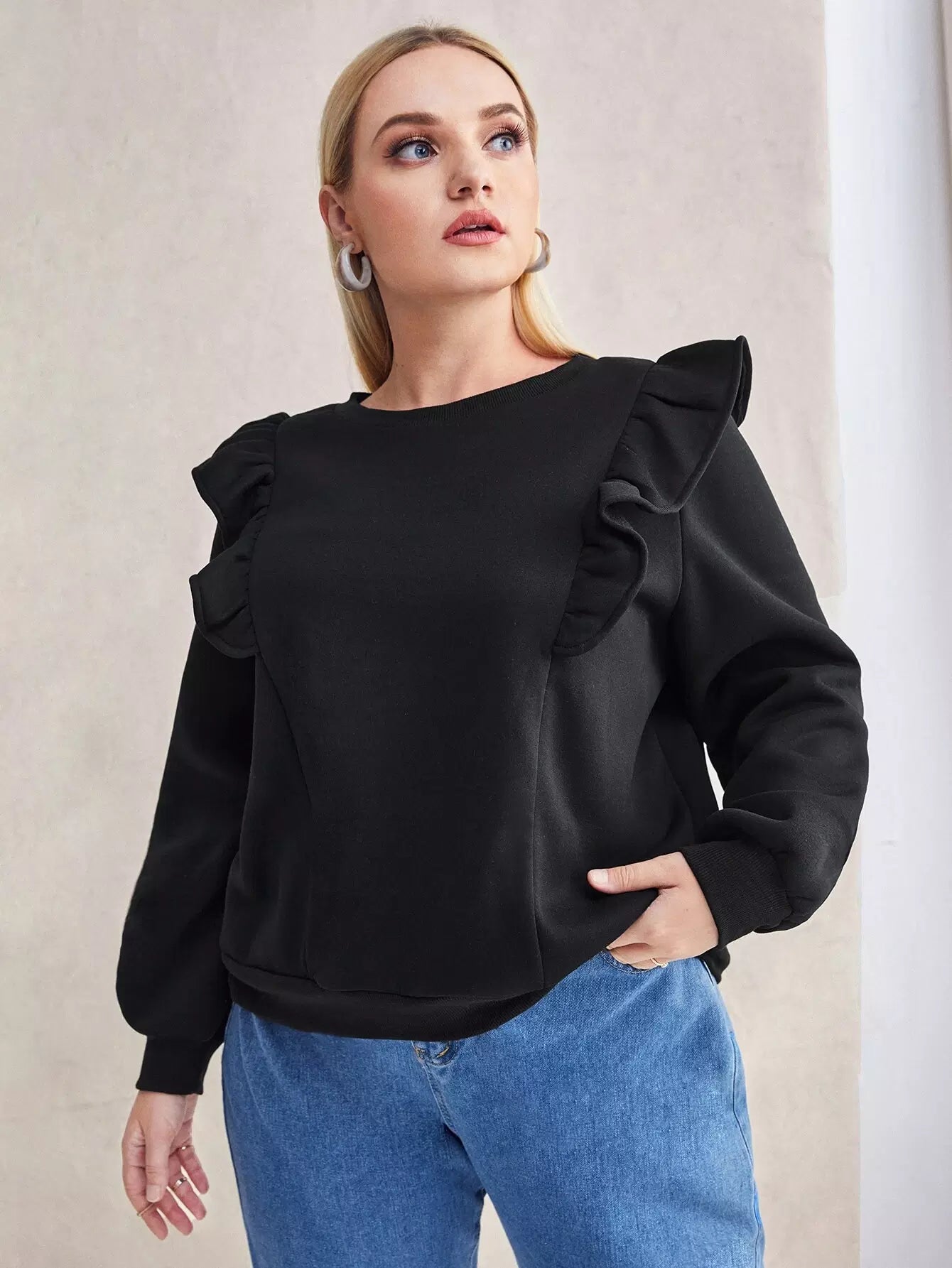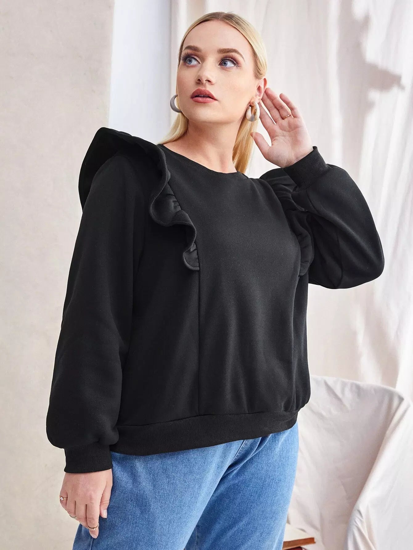 بلس سويت شيرت بحواف مكشكشة سادة بلس