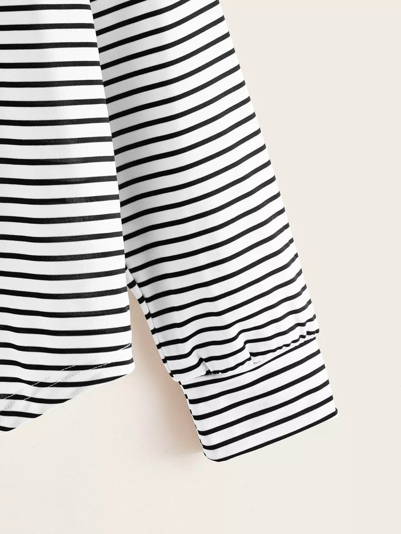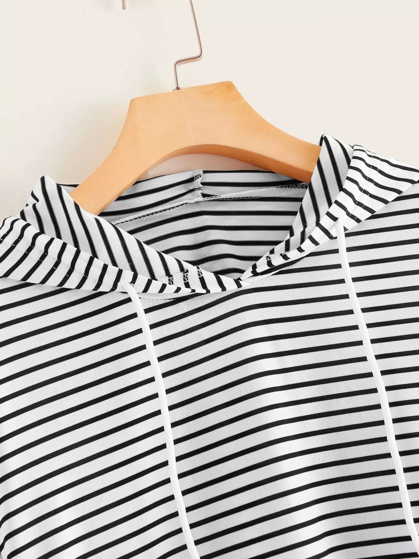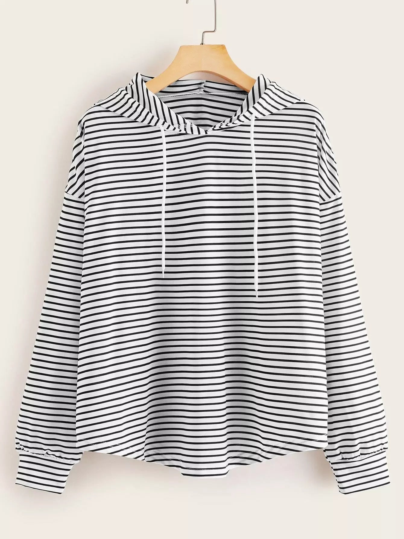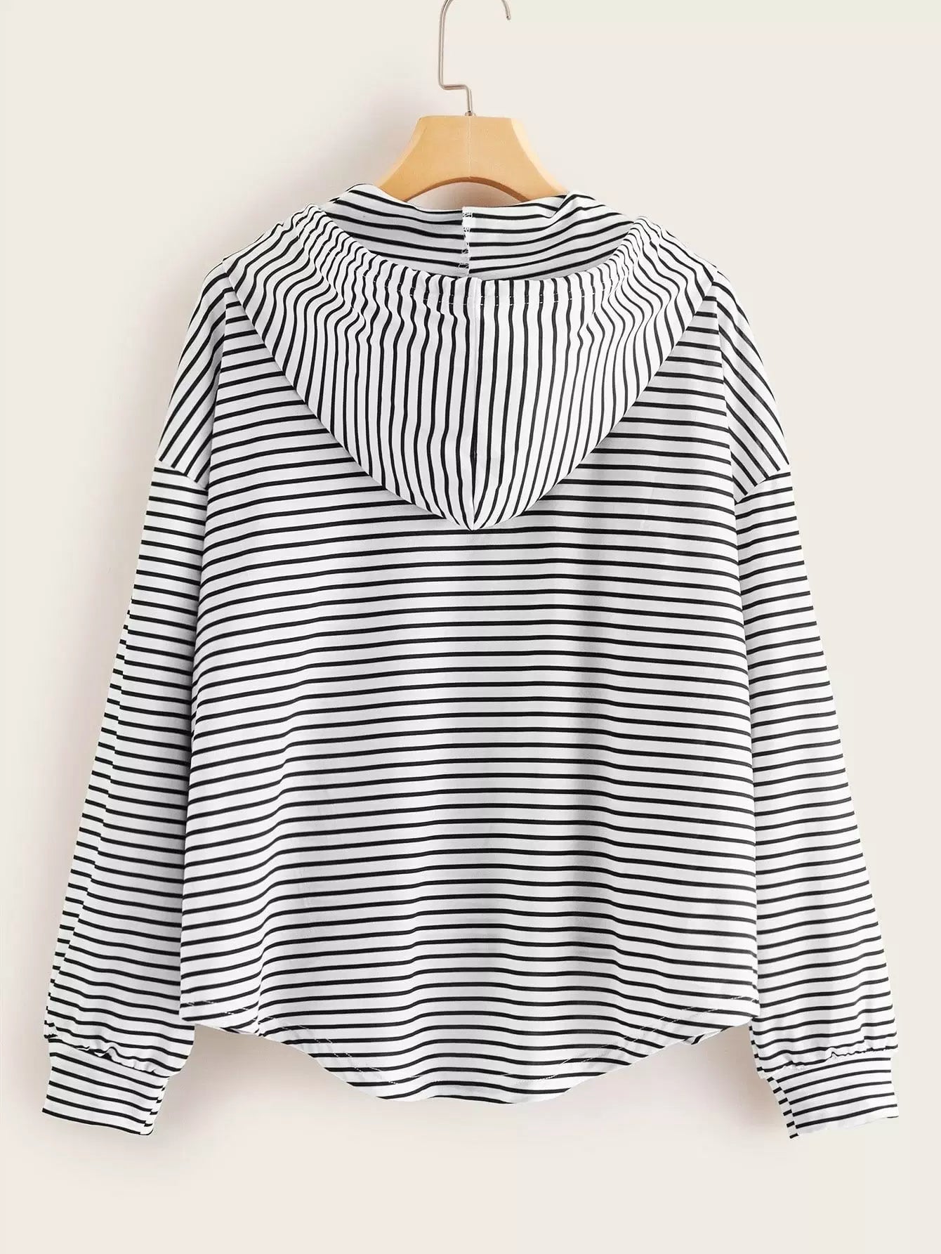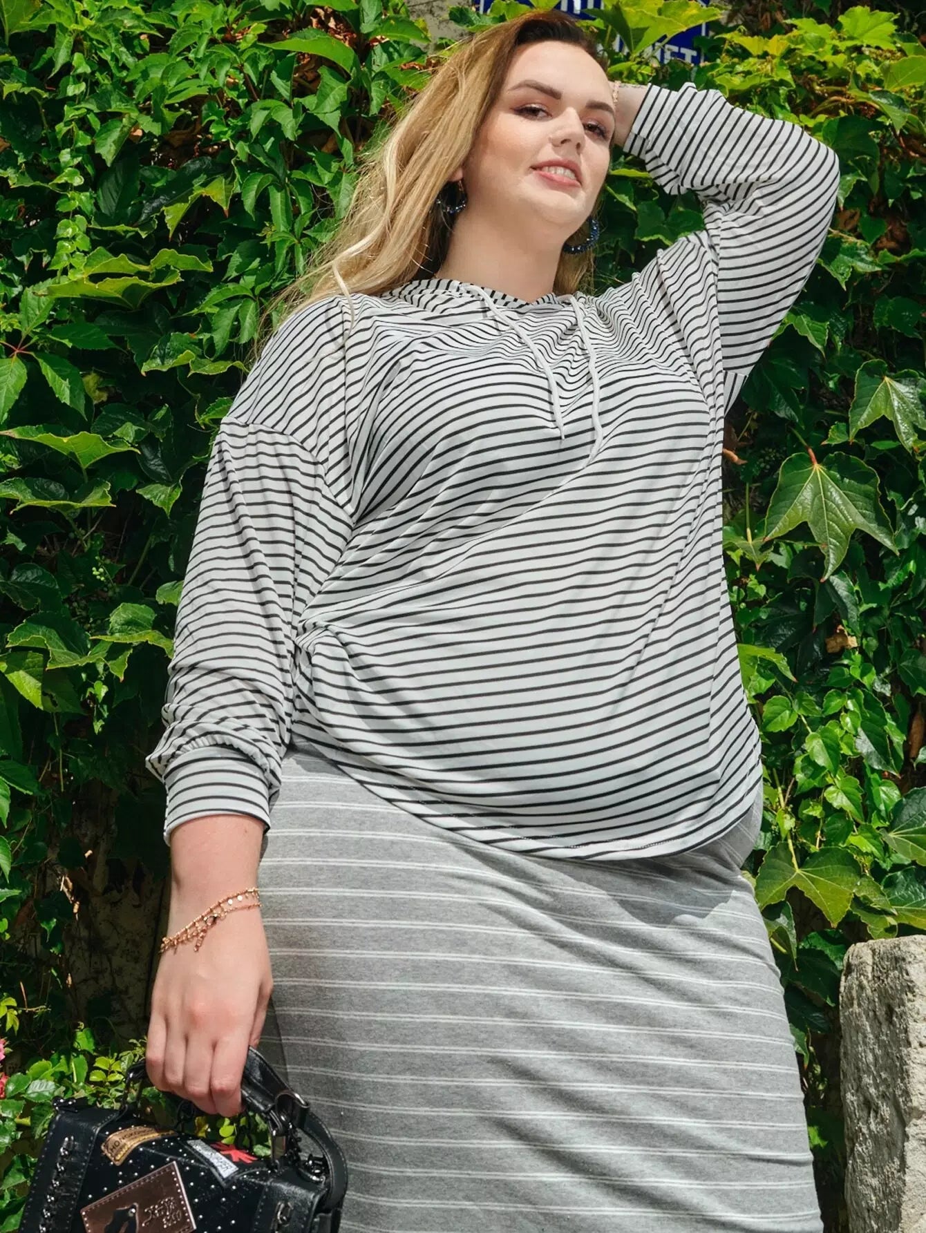 نحيف - مقاس كبير هوديي مخطط منسدل الكتف