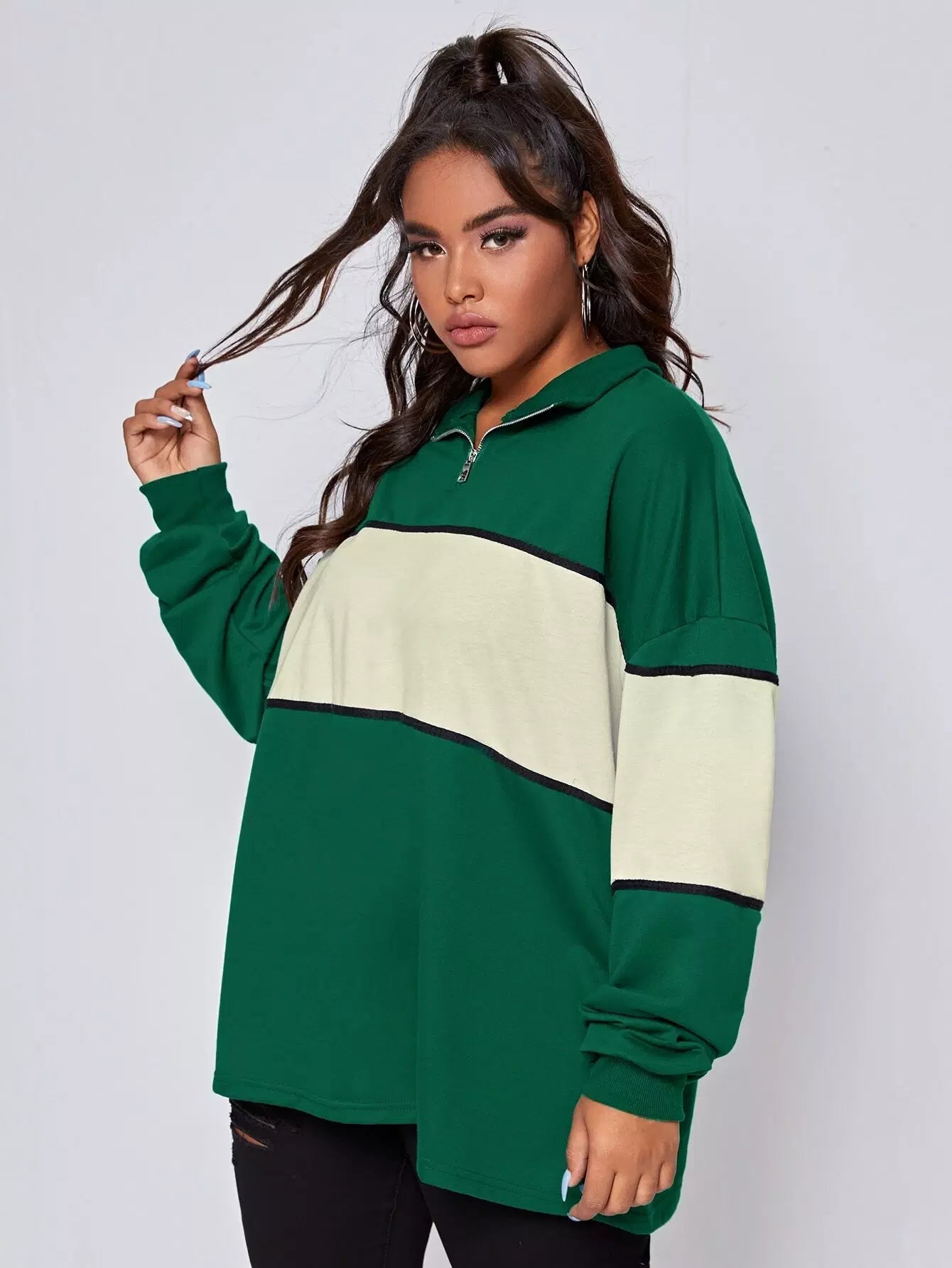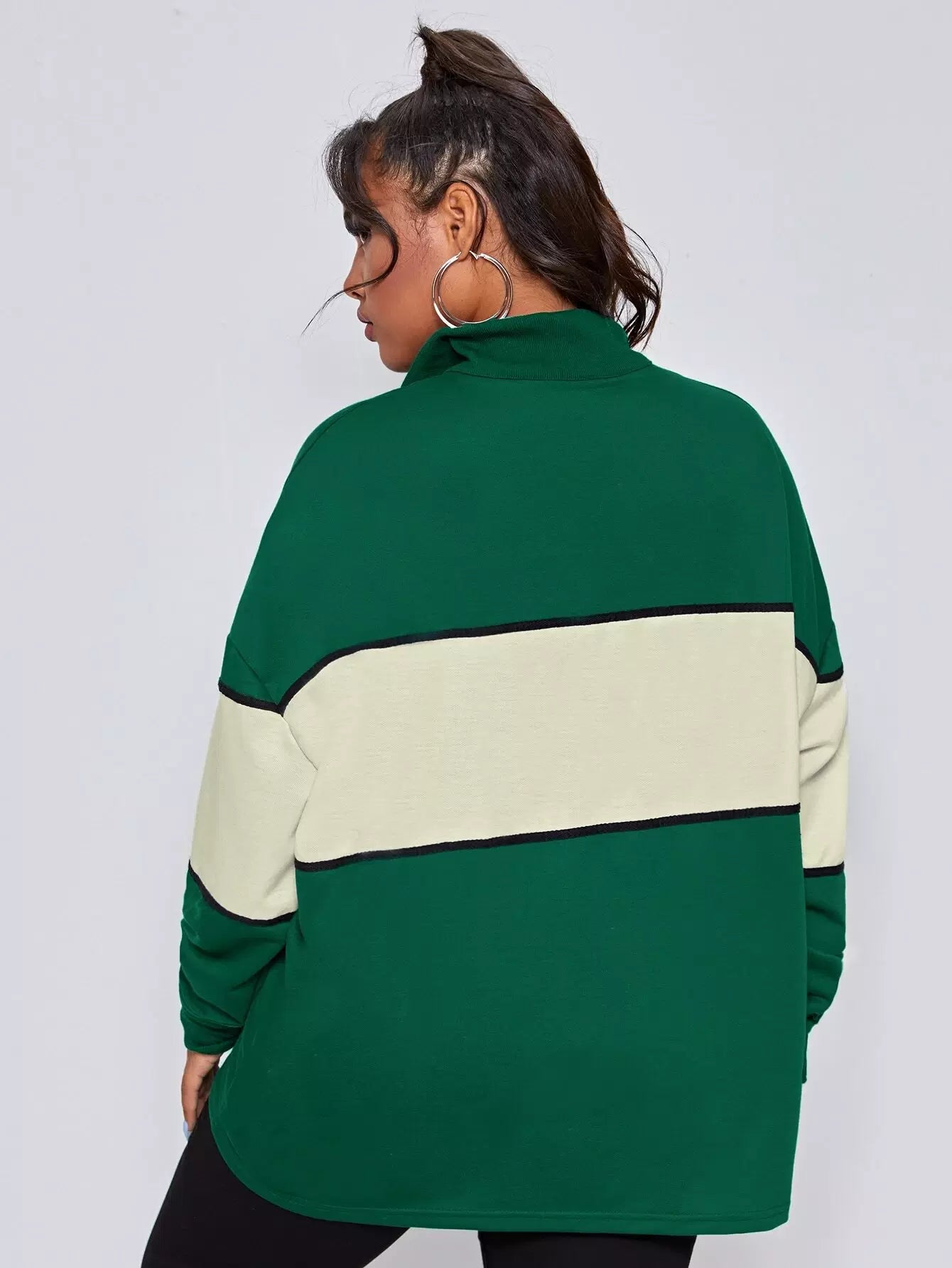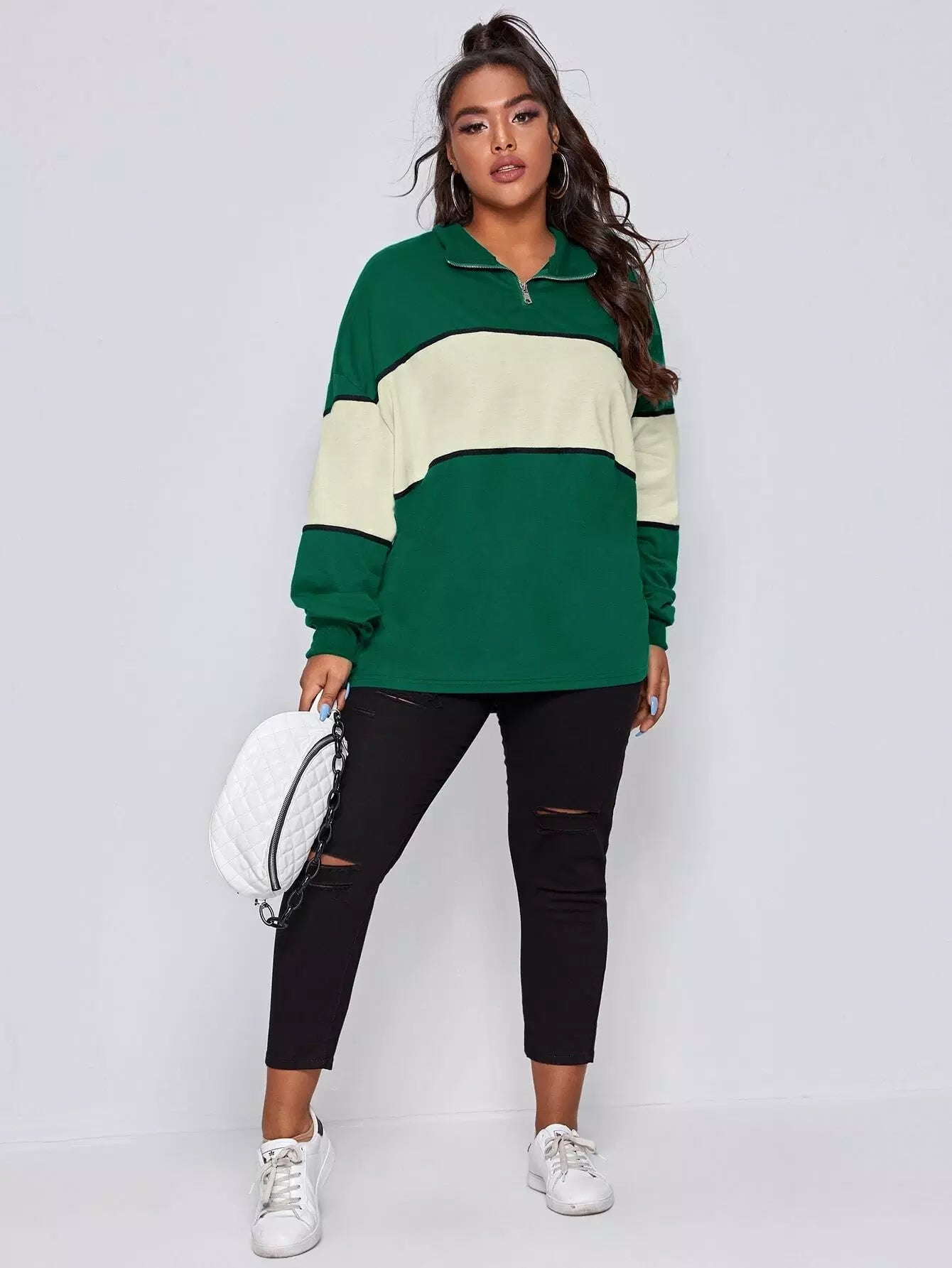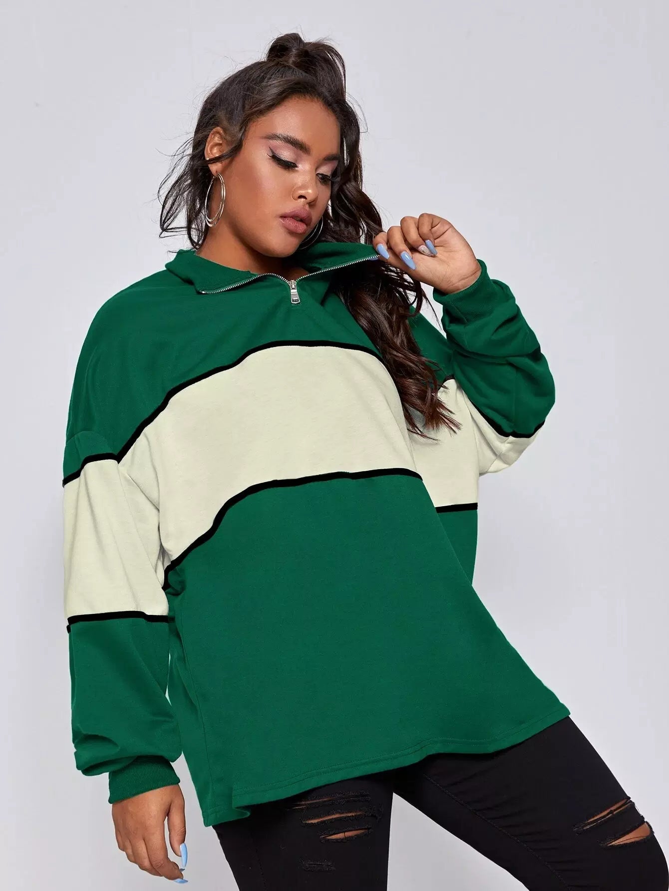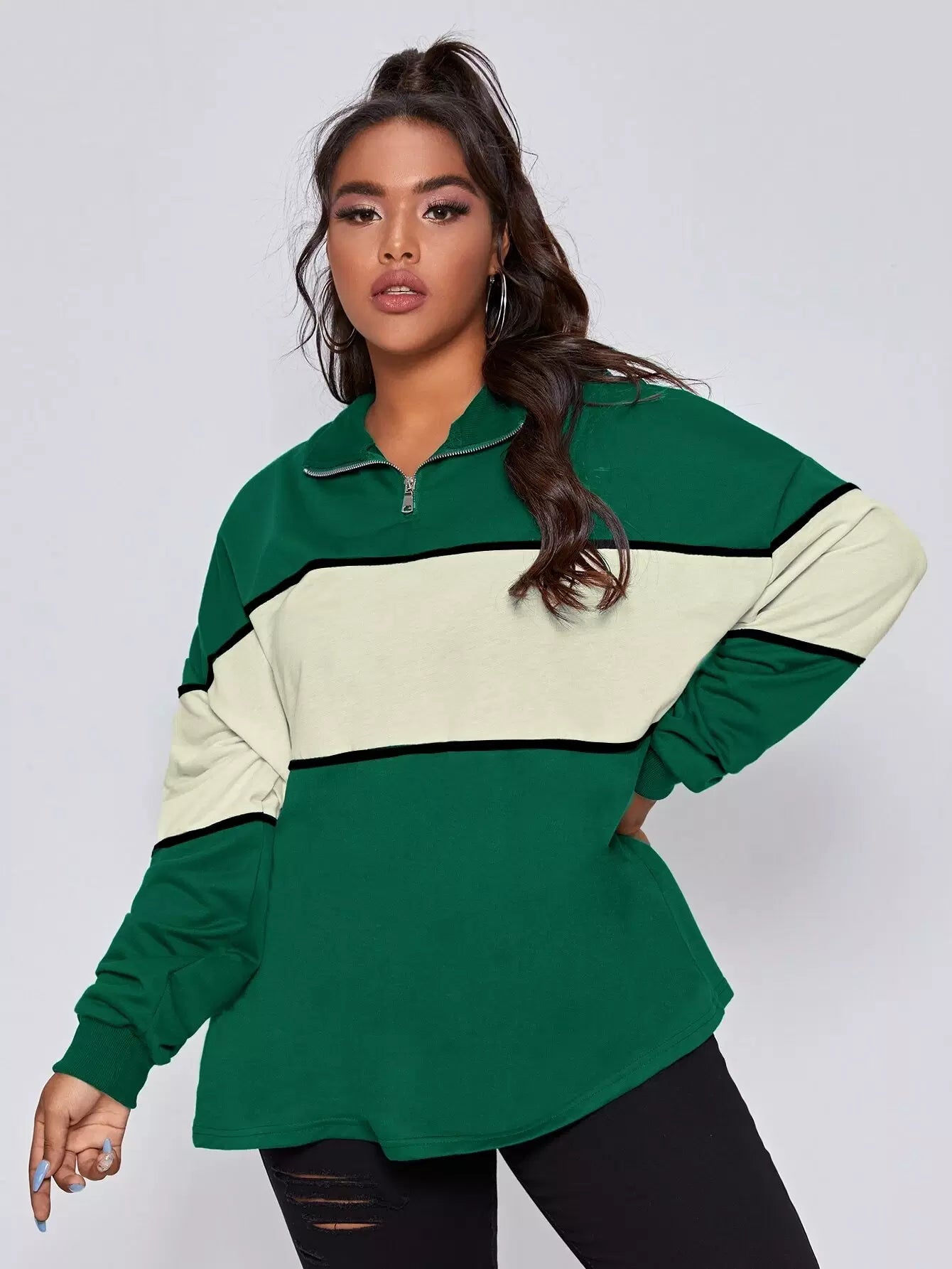 سويت شيرت بلس مخطط بنصف سحاب كبير الحجم