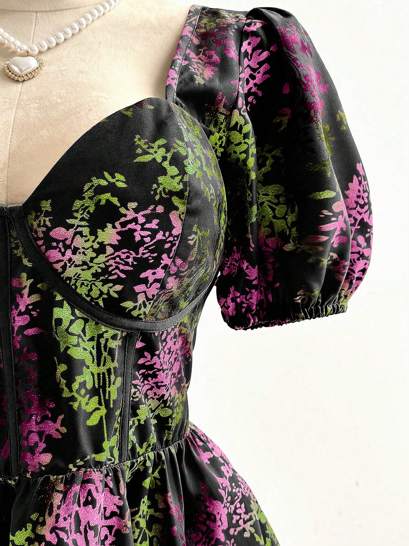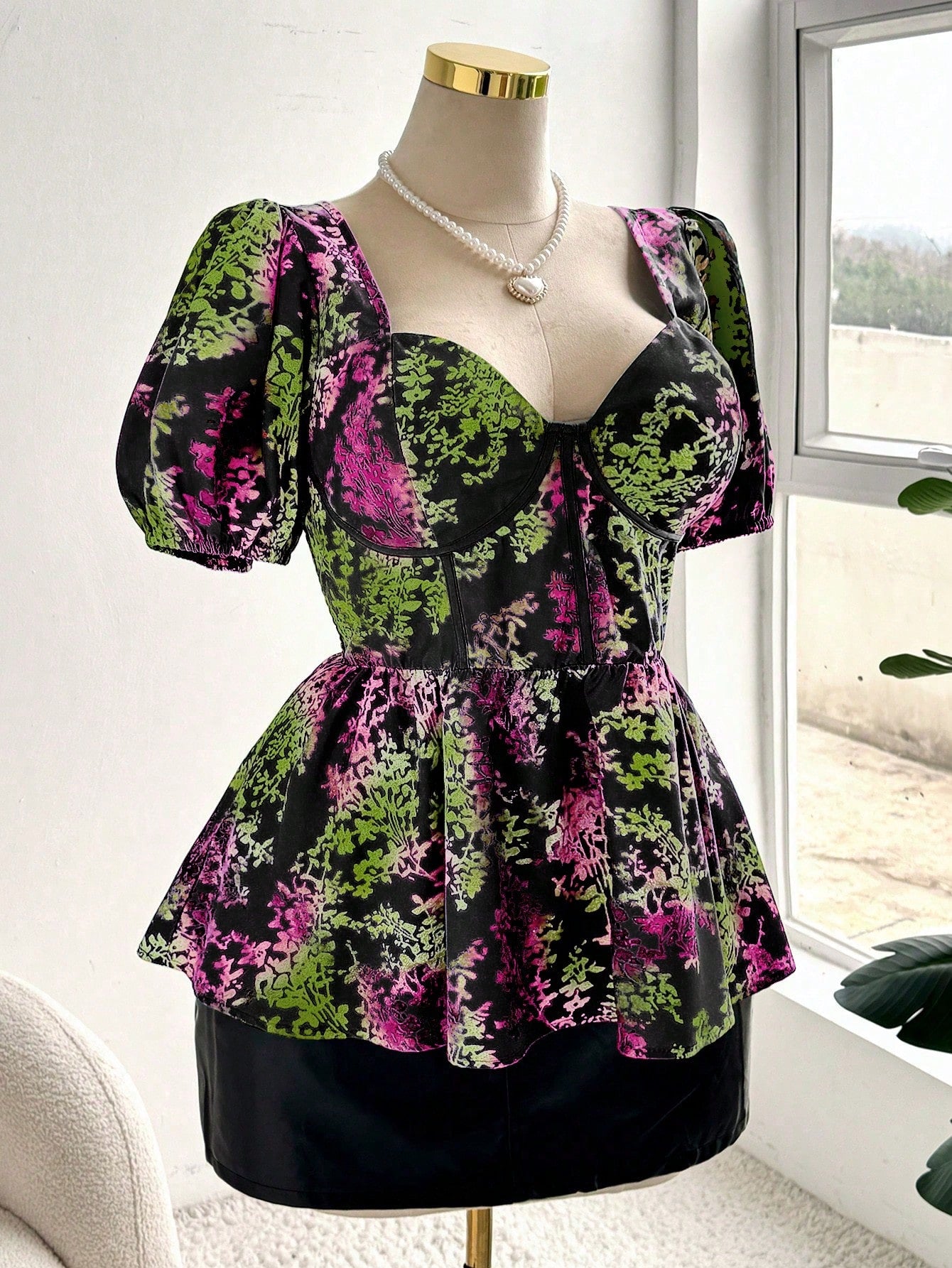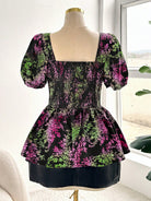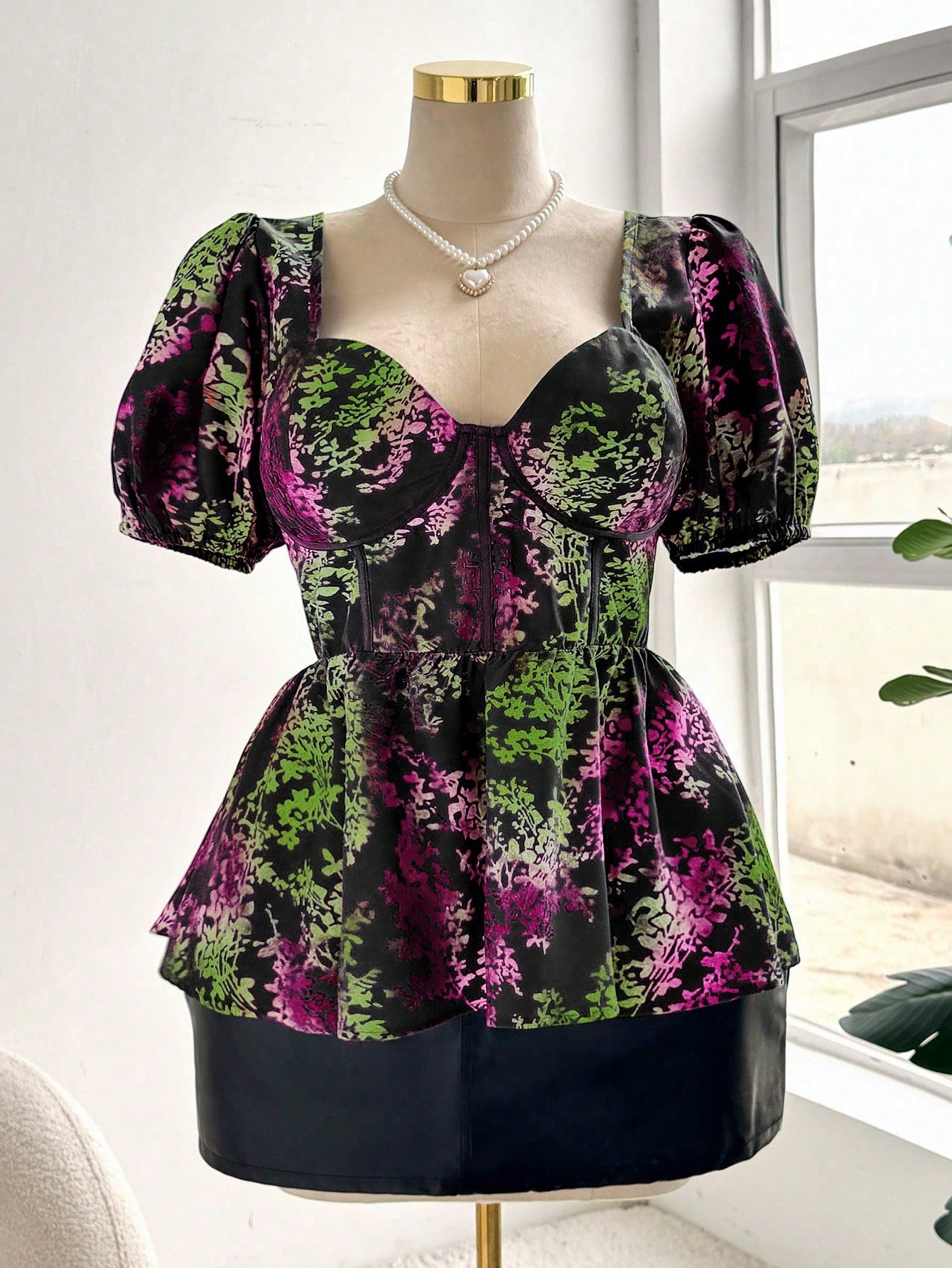 Celure Plus Size Summer Casual Allover Heart Print Puff Sleeve Shirt