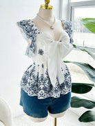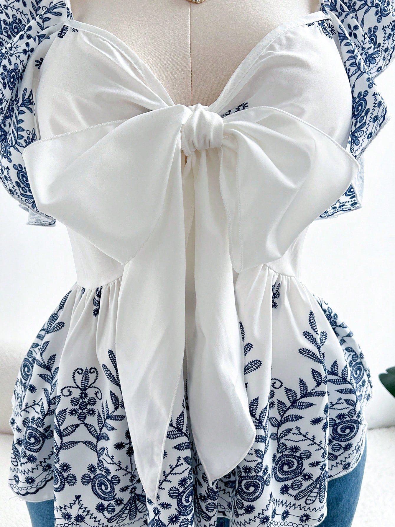 قميص Ceyna نسائي بمقاس كبير بعقدة أمامية على شكل حرف A وأكمام قصيرة