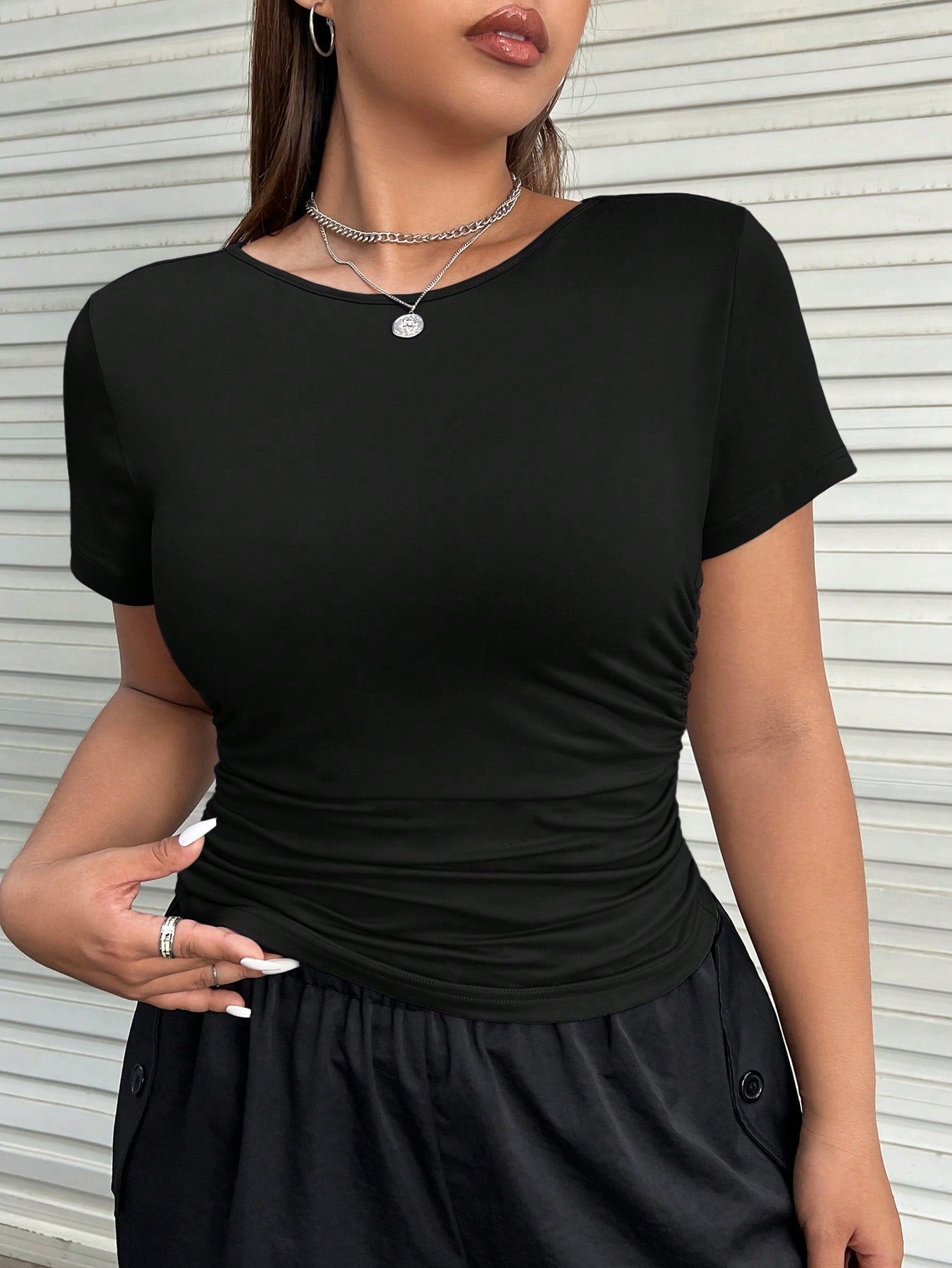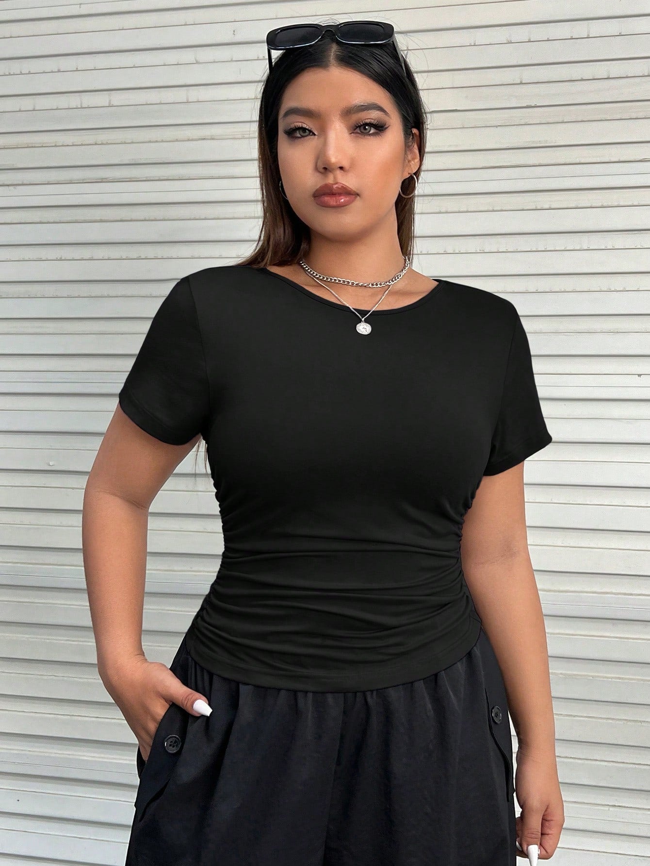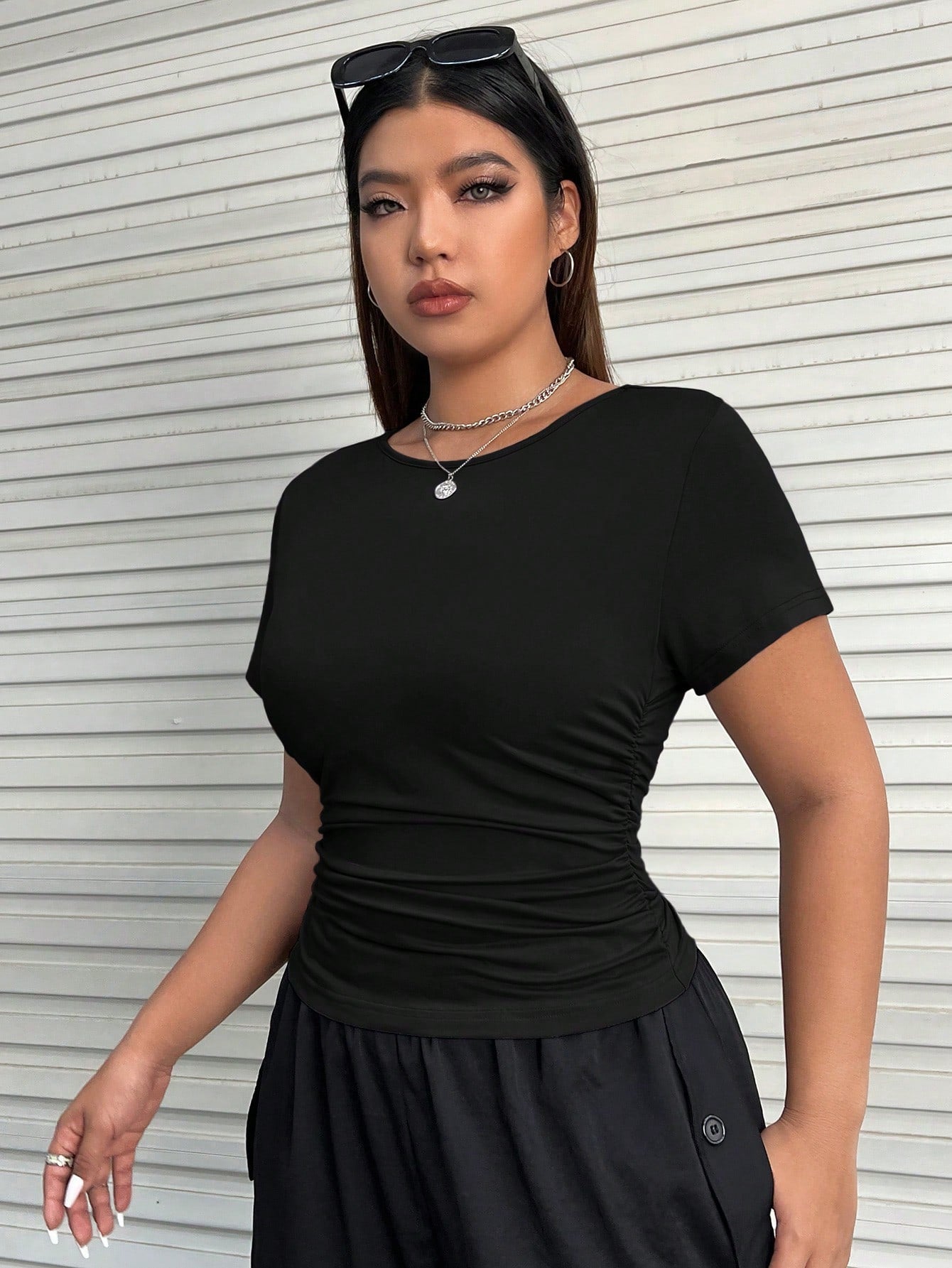 تيشيرت EZwear Plus سادة بتصميم جانبي مكشكش
