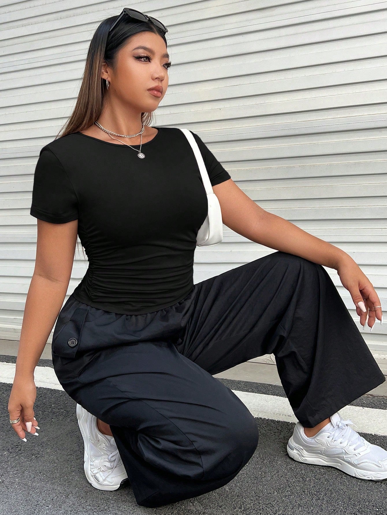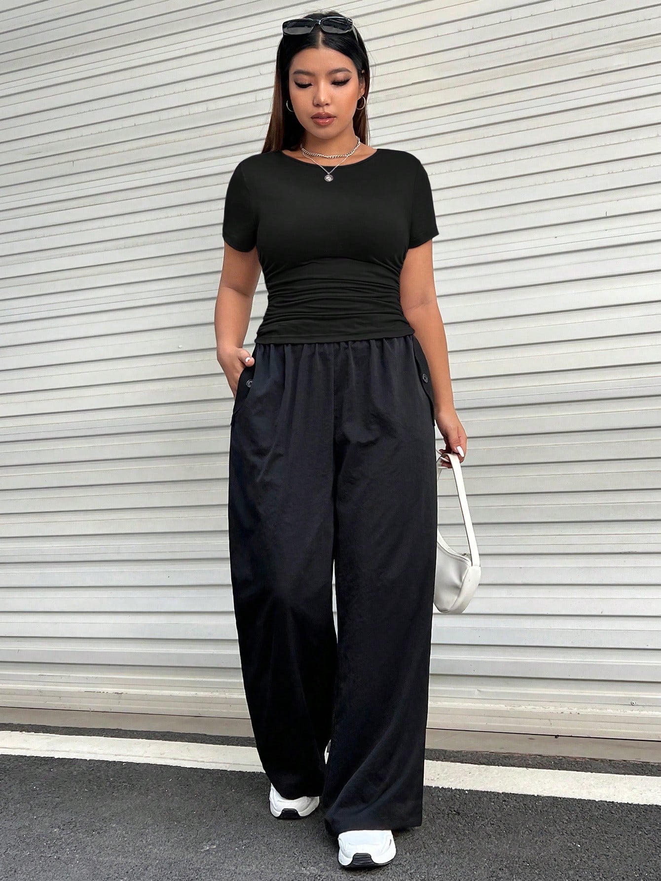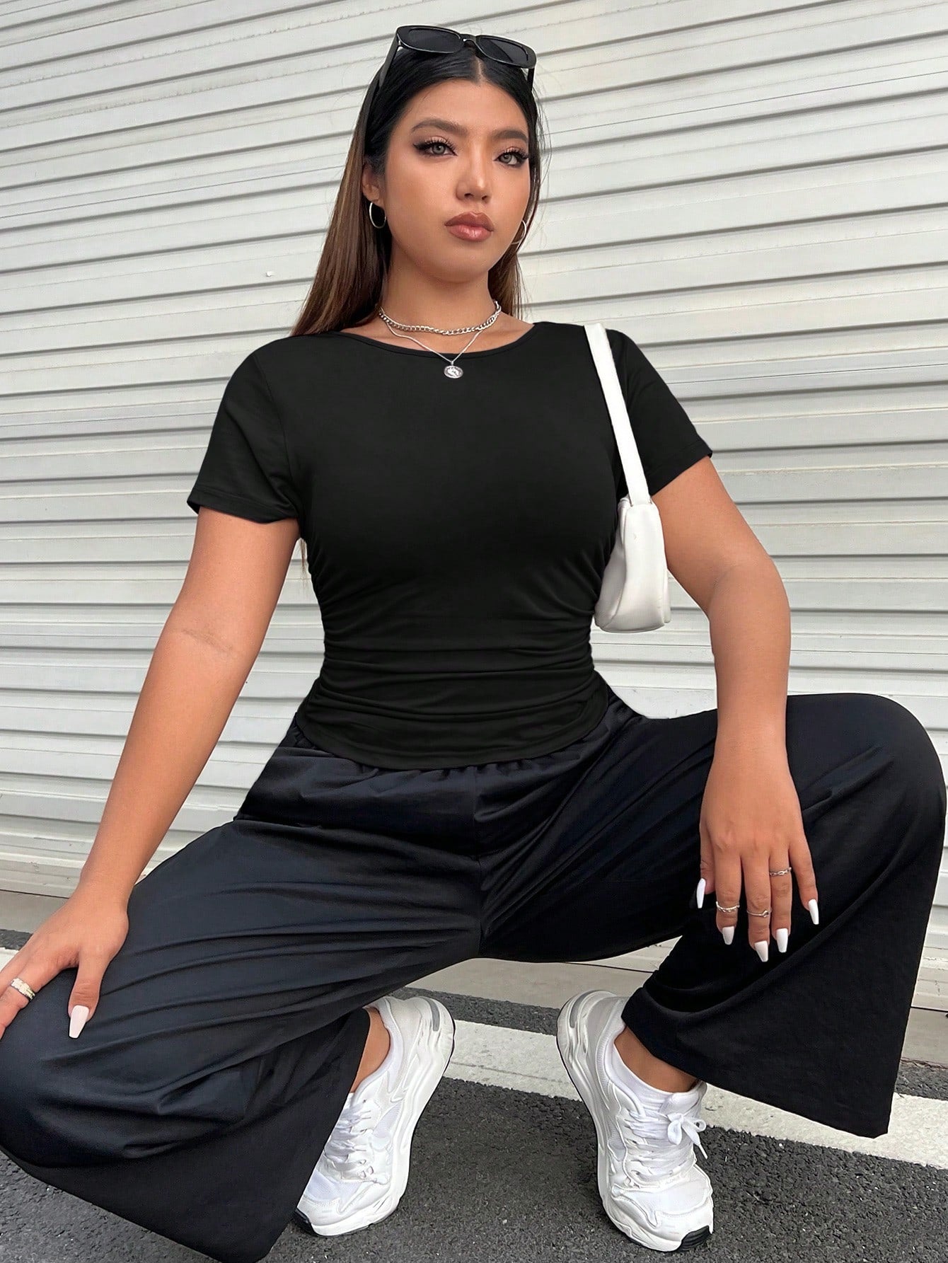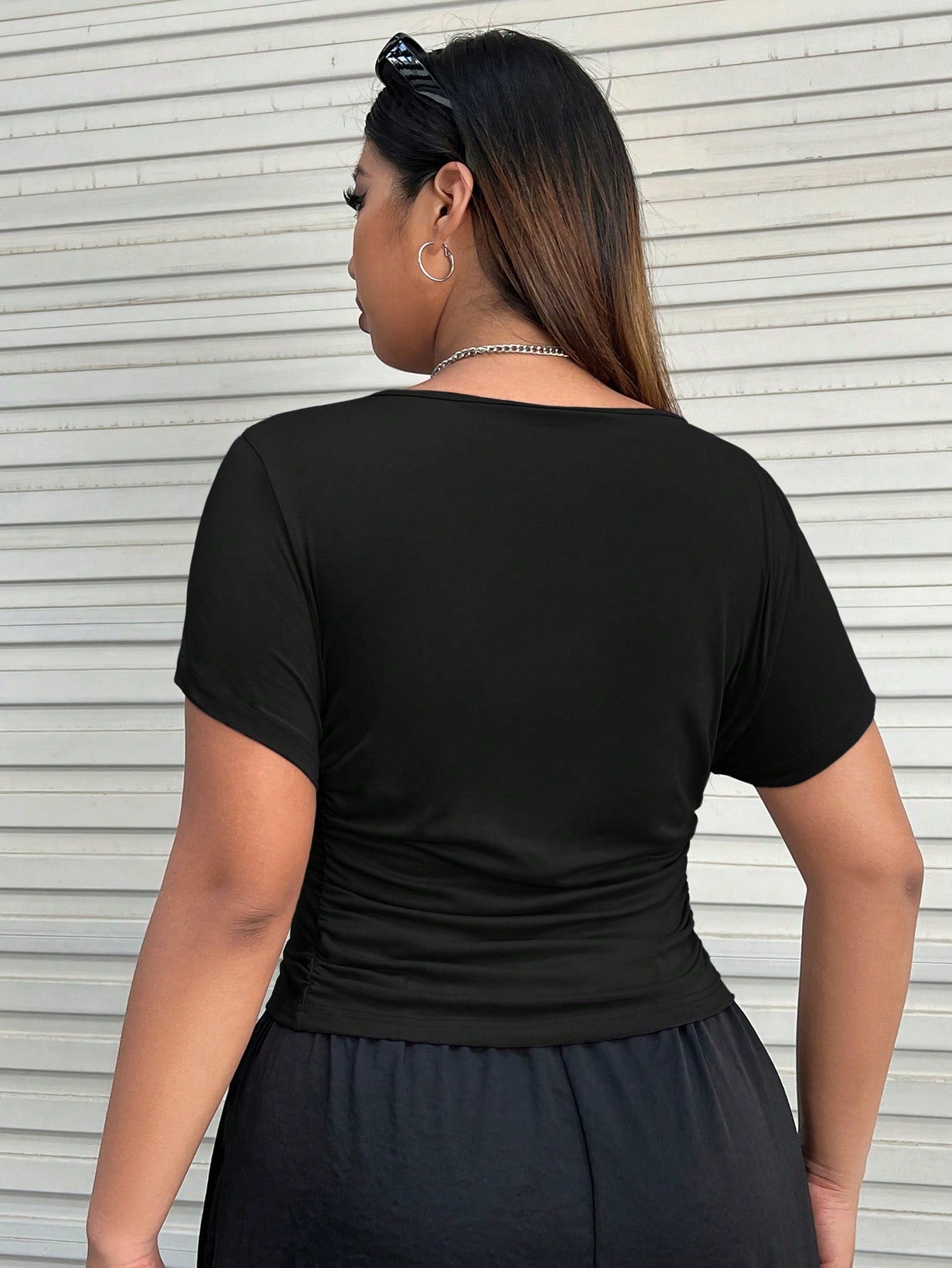 تيشيرت EZwear Plus سادة بتصميم جانبي مكشكش