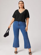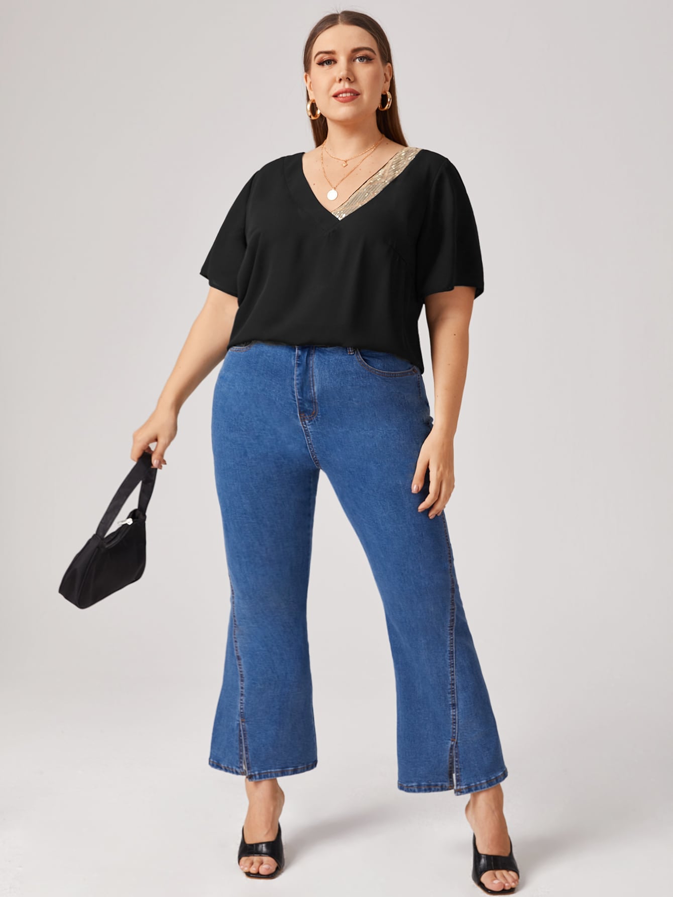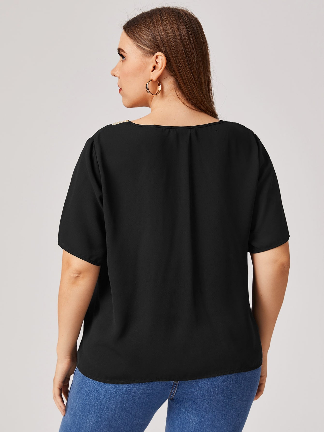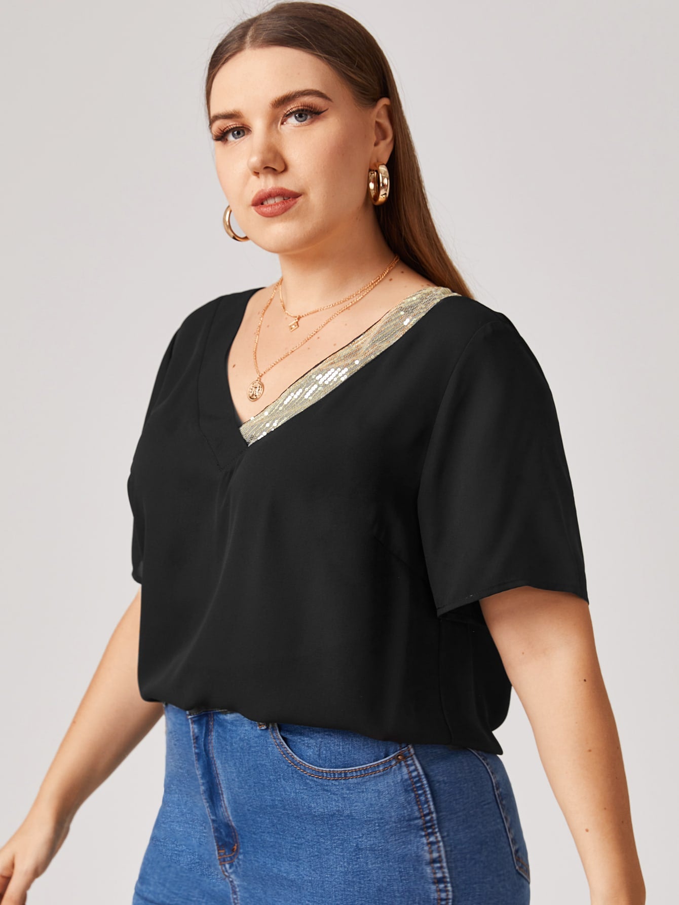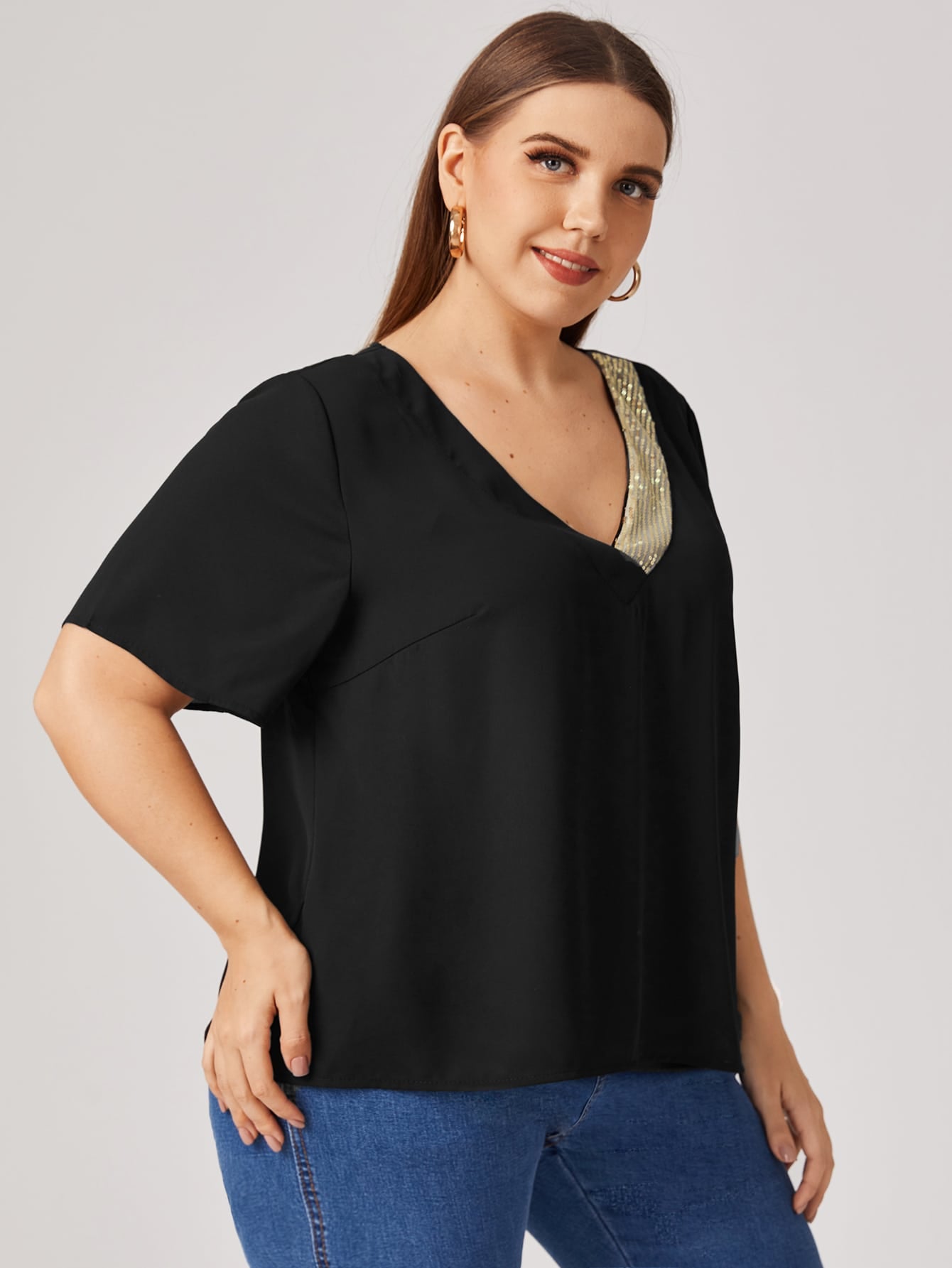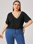 Plus V-neck Sequin Detail Top