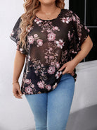 بلوزة LUNE الأنيقة للتنقل غير الرسمية بنقشة زهور من القماش برقبة دائرية وأكمام مكشكشة، أنيقة