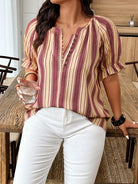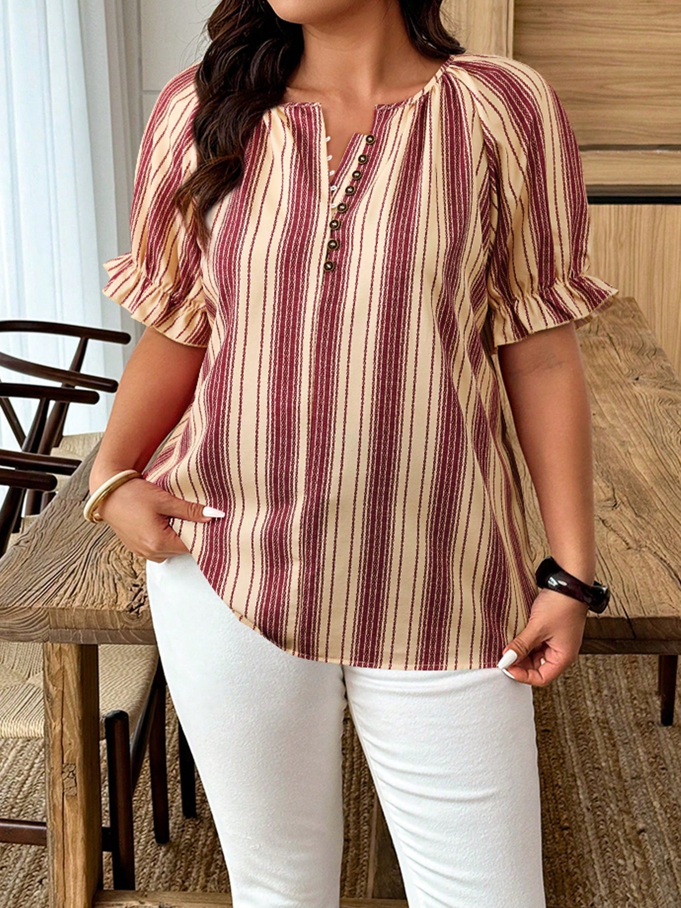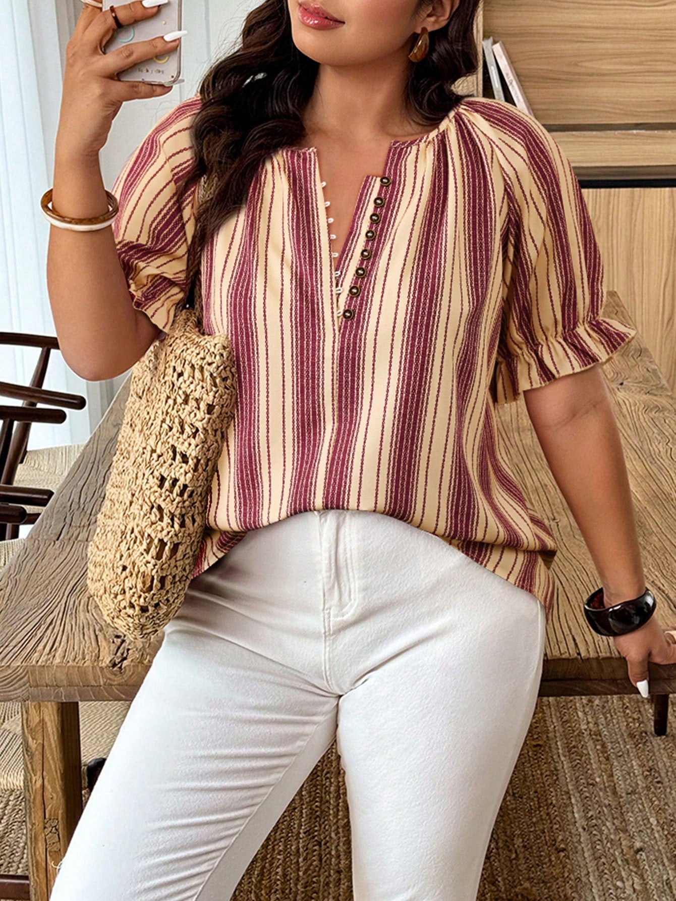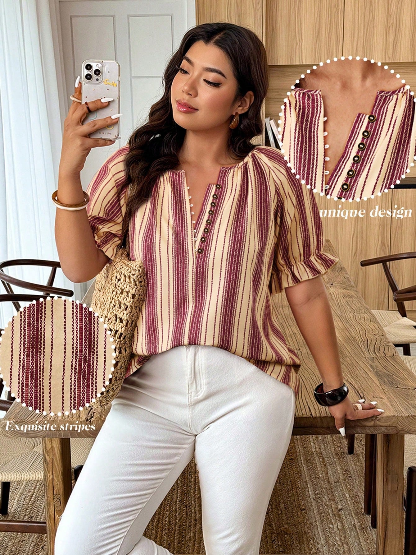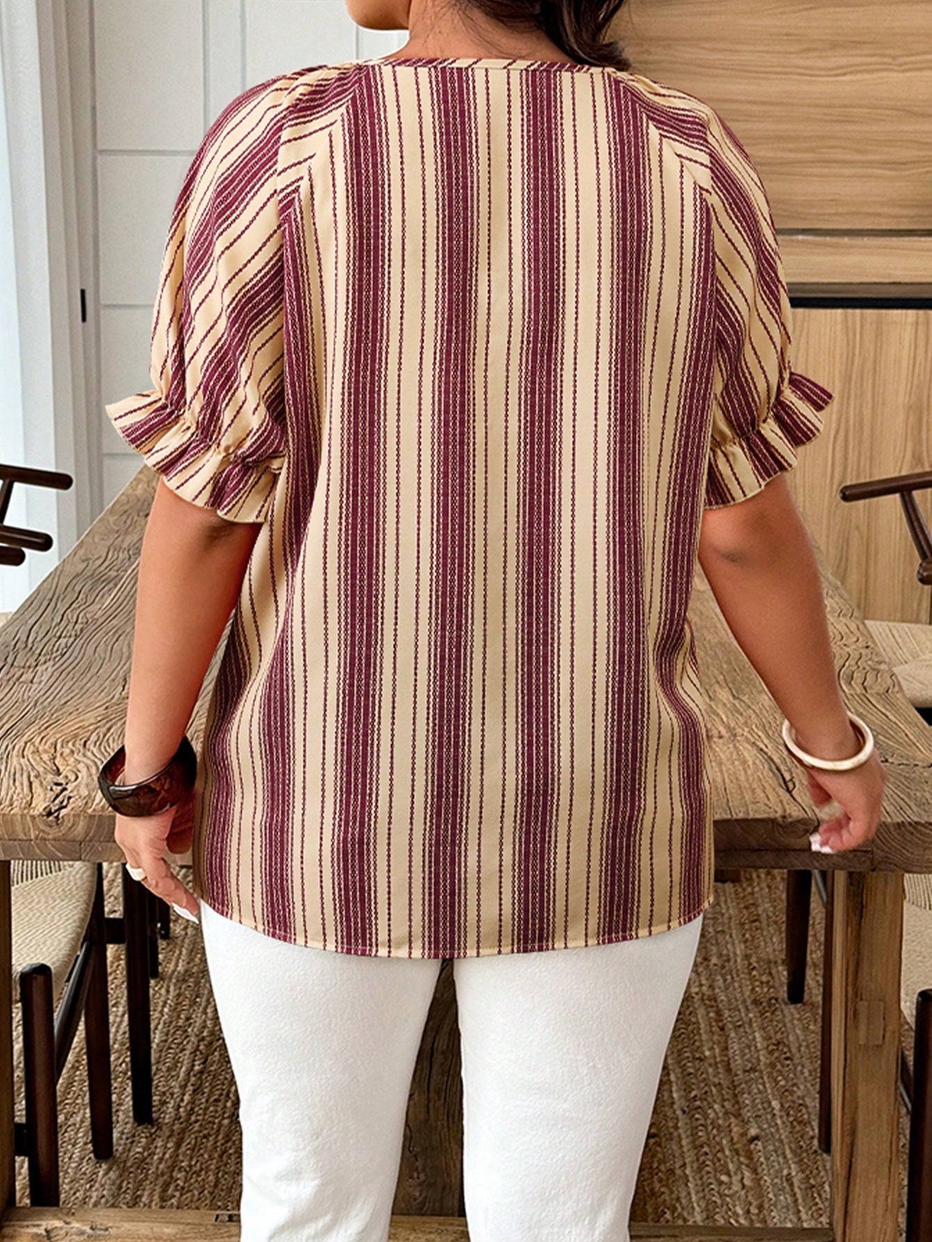 LUNE Plus Size Casual Striped Print Embellished Shirt