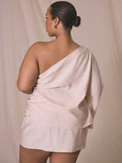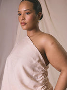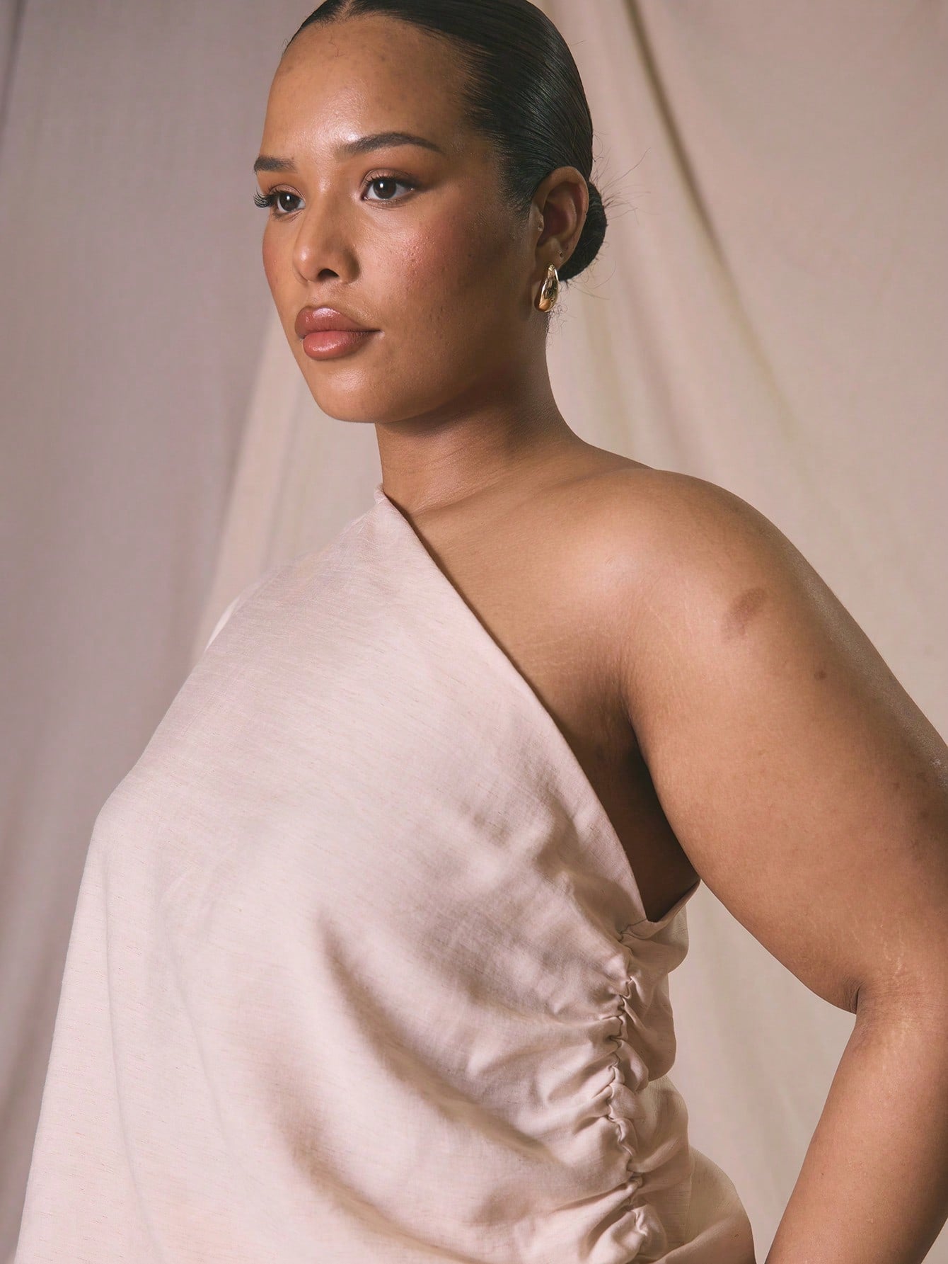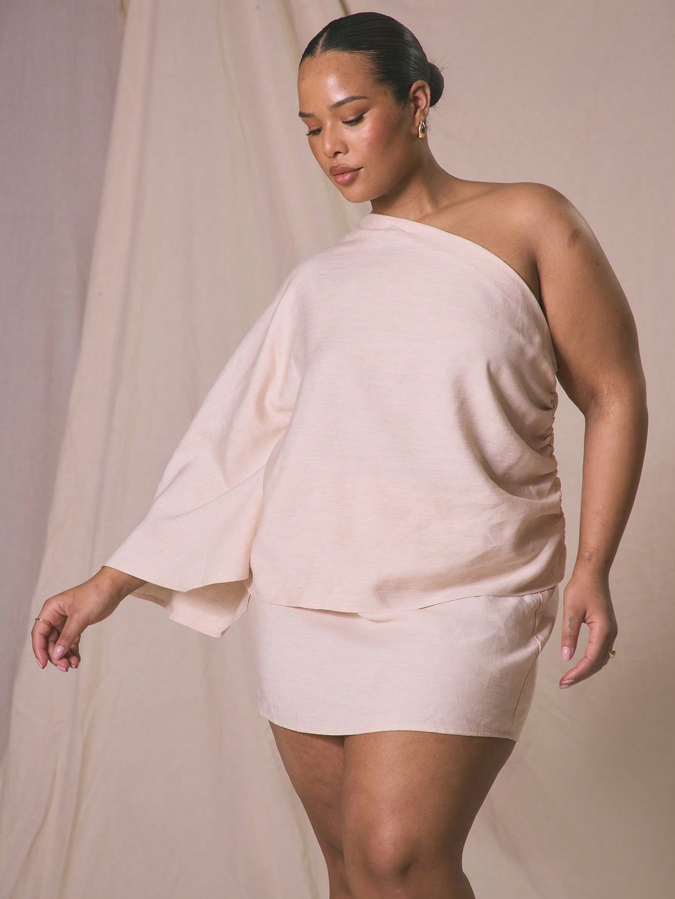 women MUSERA One Shoulder Slouchy Long Sleeve Longline Satin Top Spring Vacation Business Casual Summer Graduation Graceful Elegant Formal Brunch Linen