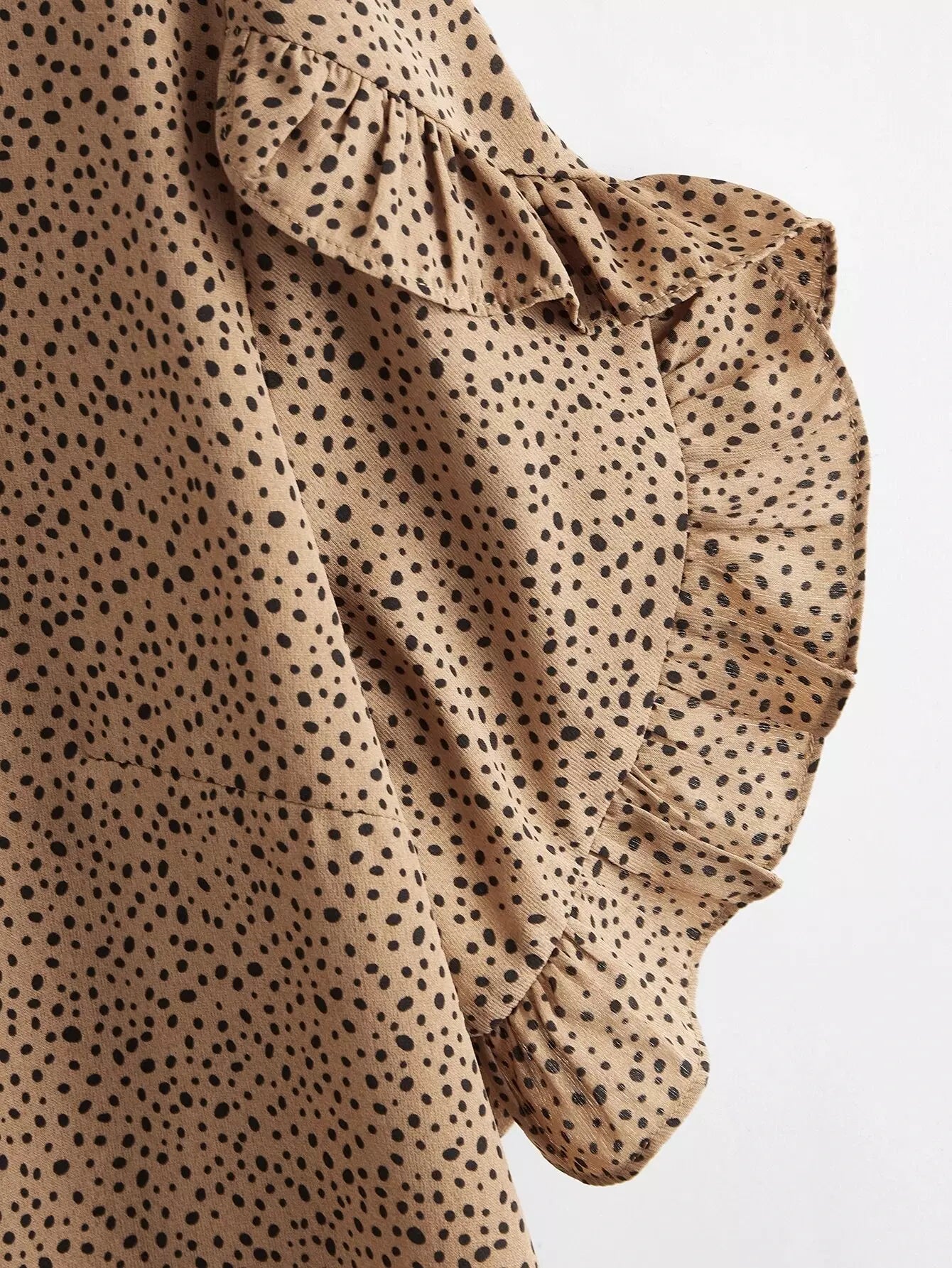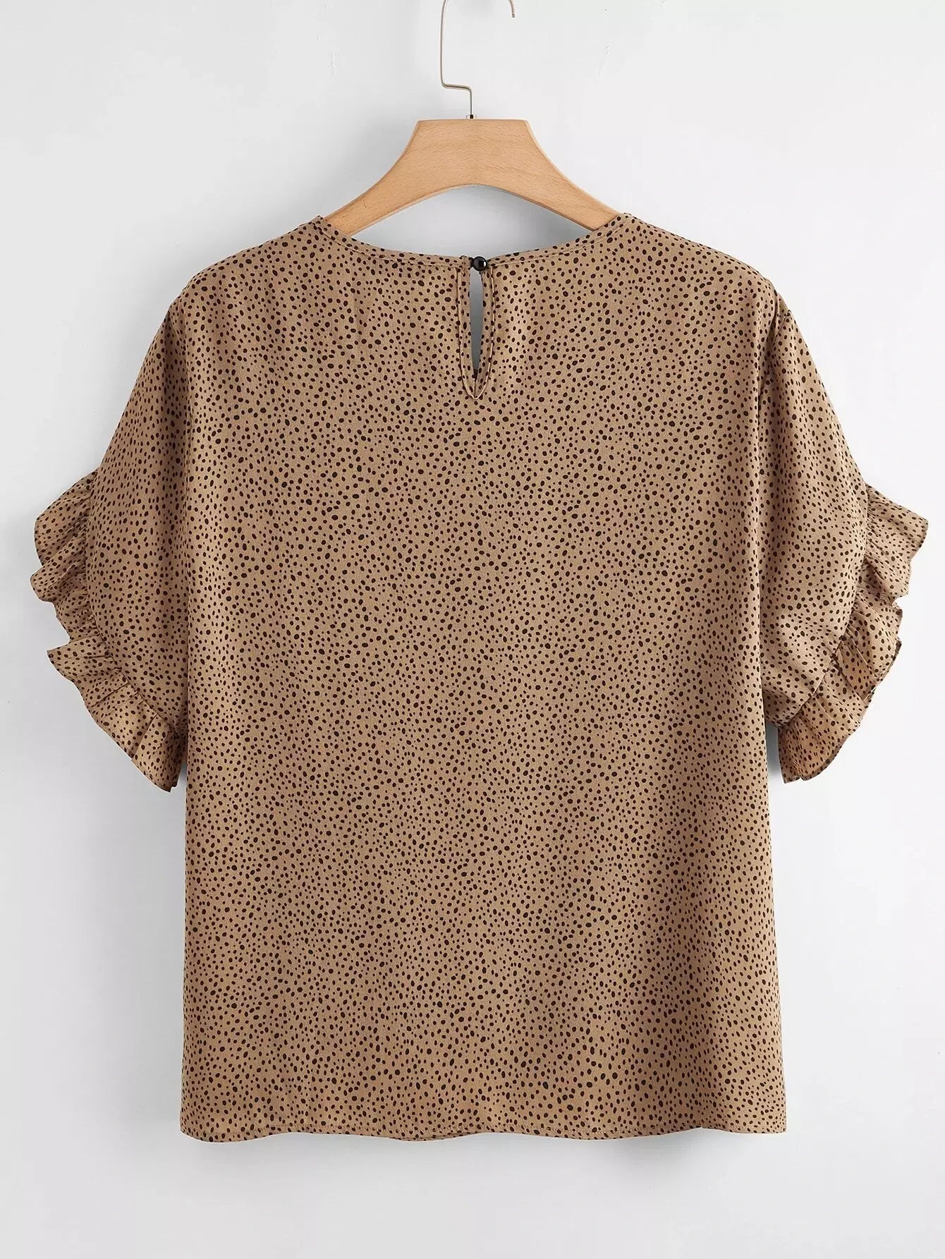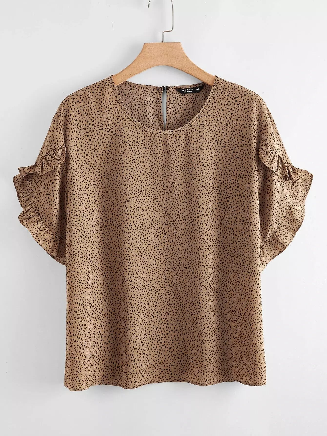 بلوزة بطبعة كشكش مطبوع عليها بالكامل