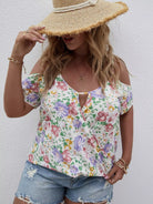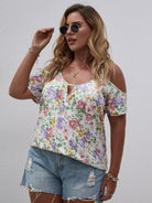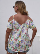 بلوزة بدون أكتاف باردة مطبوع عليها زهور مطبوع عليها أكتاف باردة