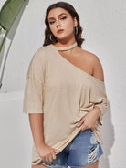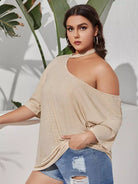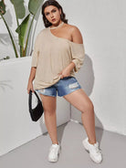 تي شيرت برقبة غير متناظرة منسدلة الكتفين بقصّة طويلة بلا أكتاف
