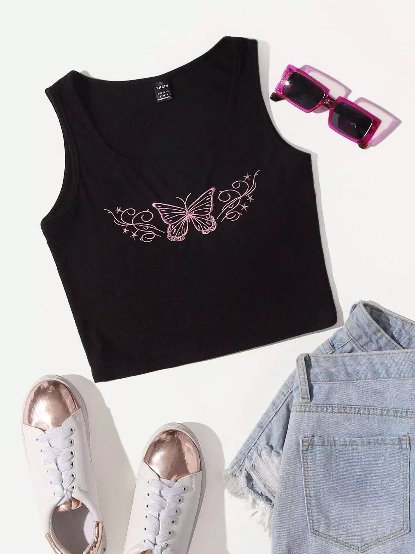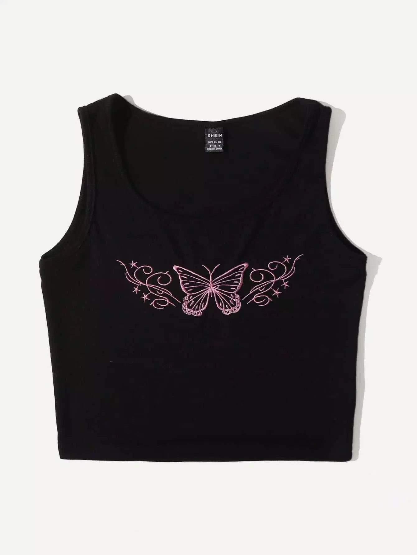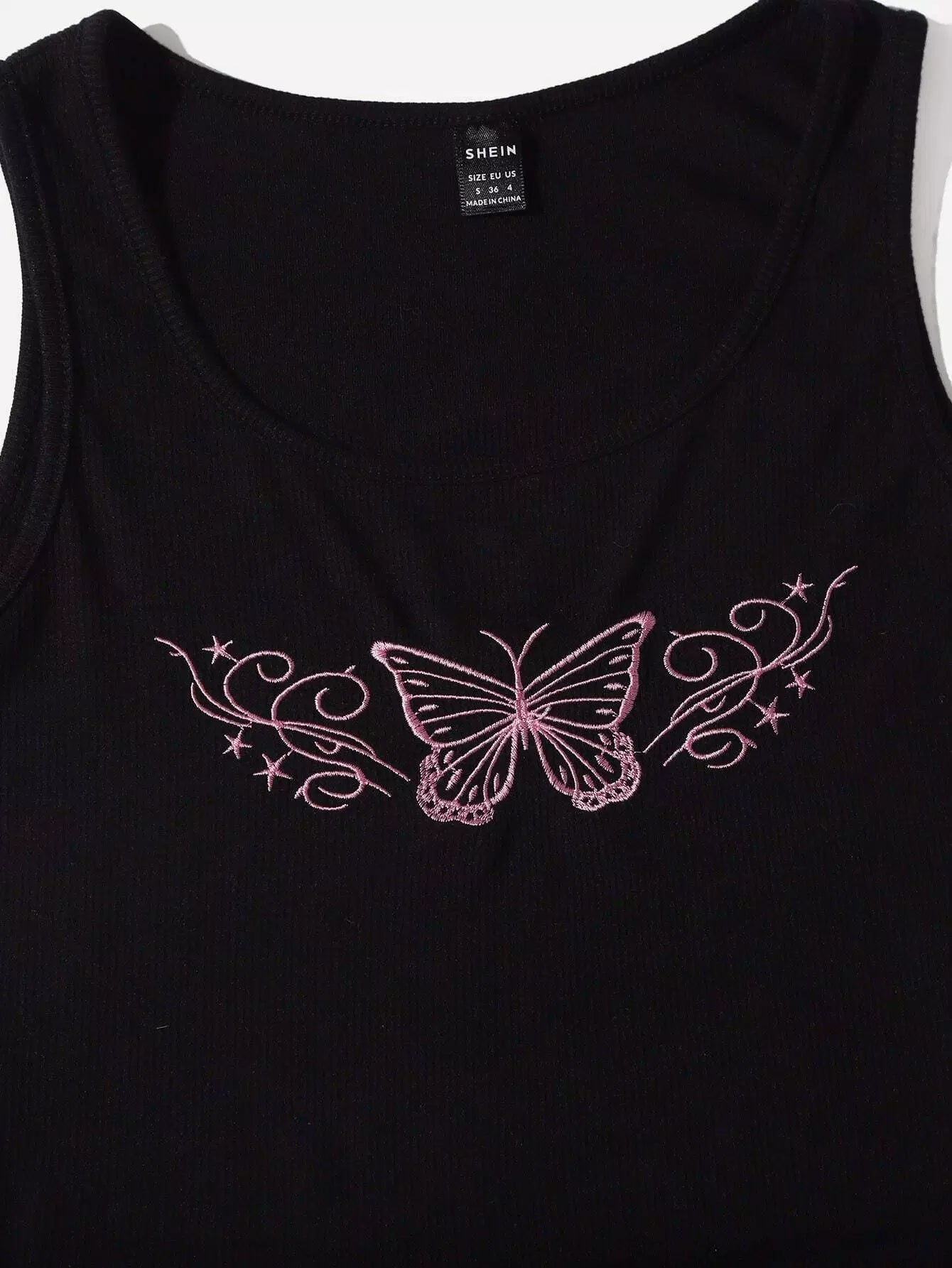 بلوزة بدون أكمام بتطريز فراشة زائد