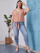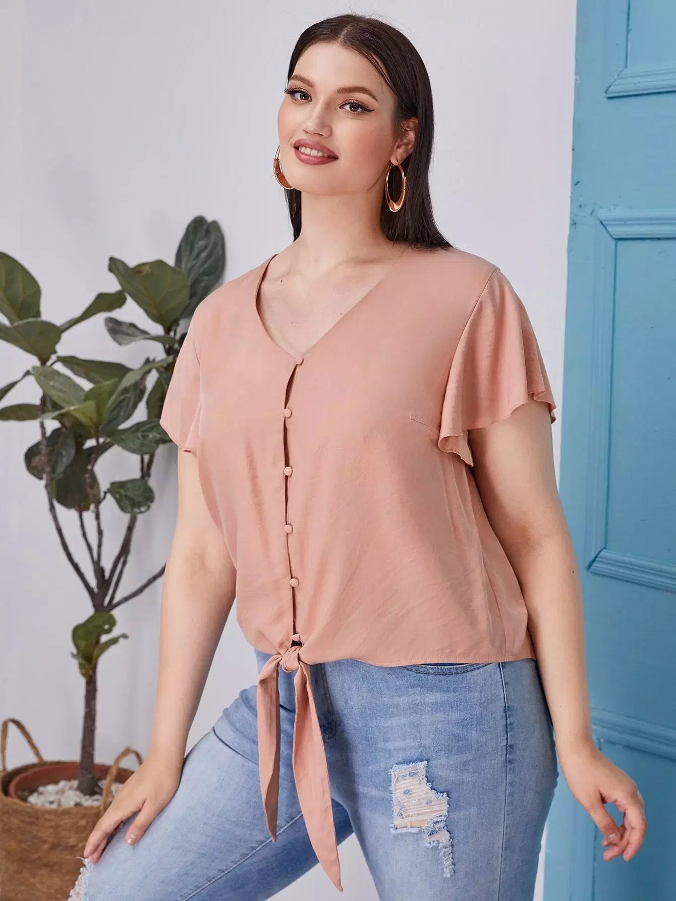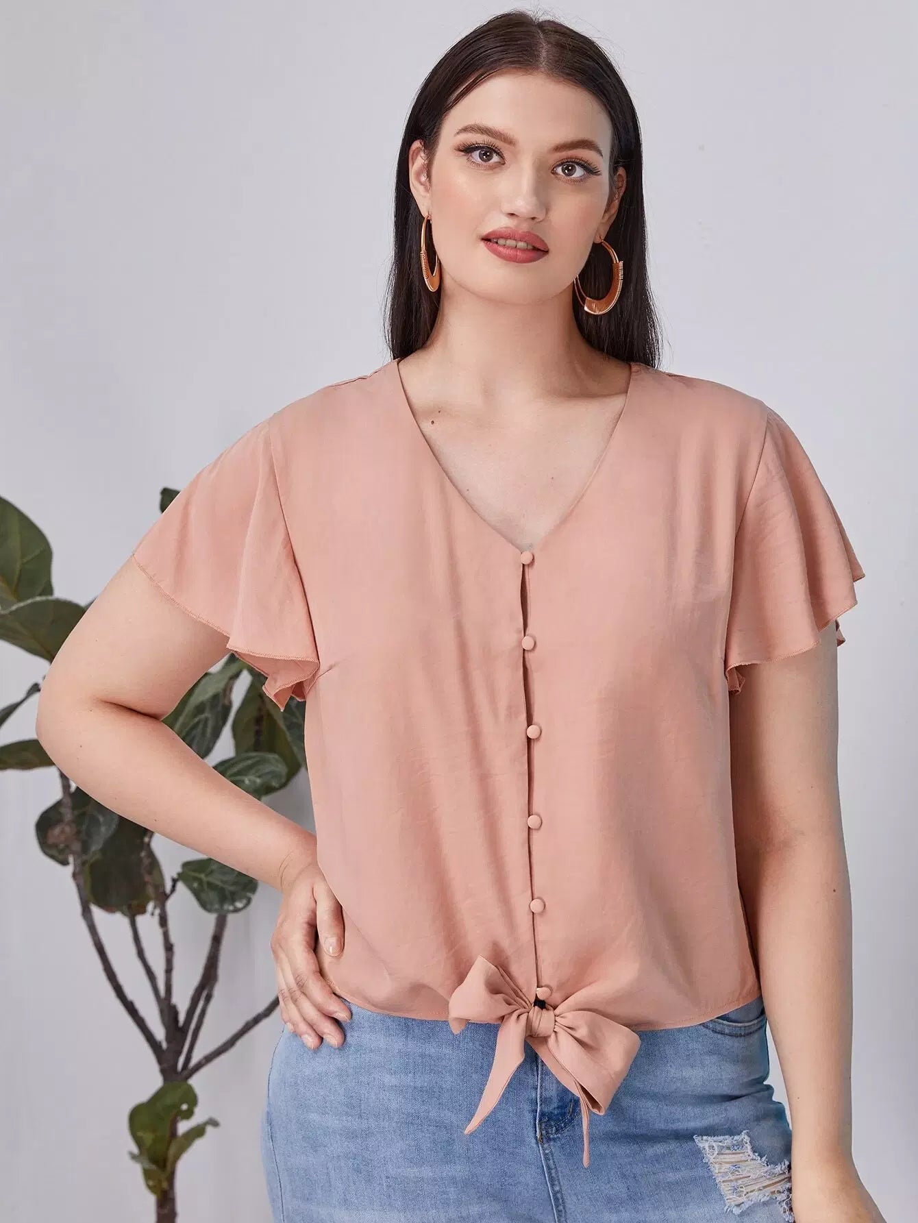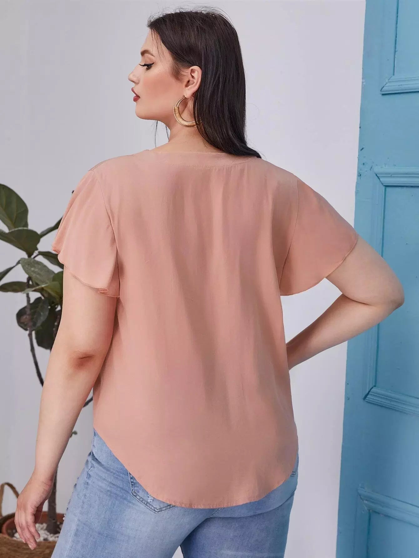 بلوزة بأكمام فراشة زائد بحاشية على شكل فراشة