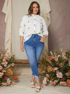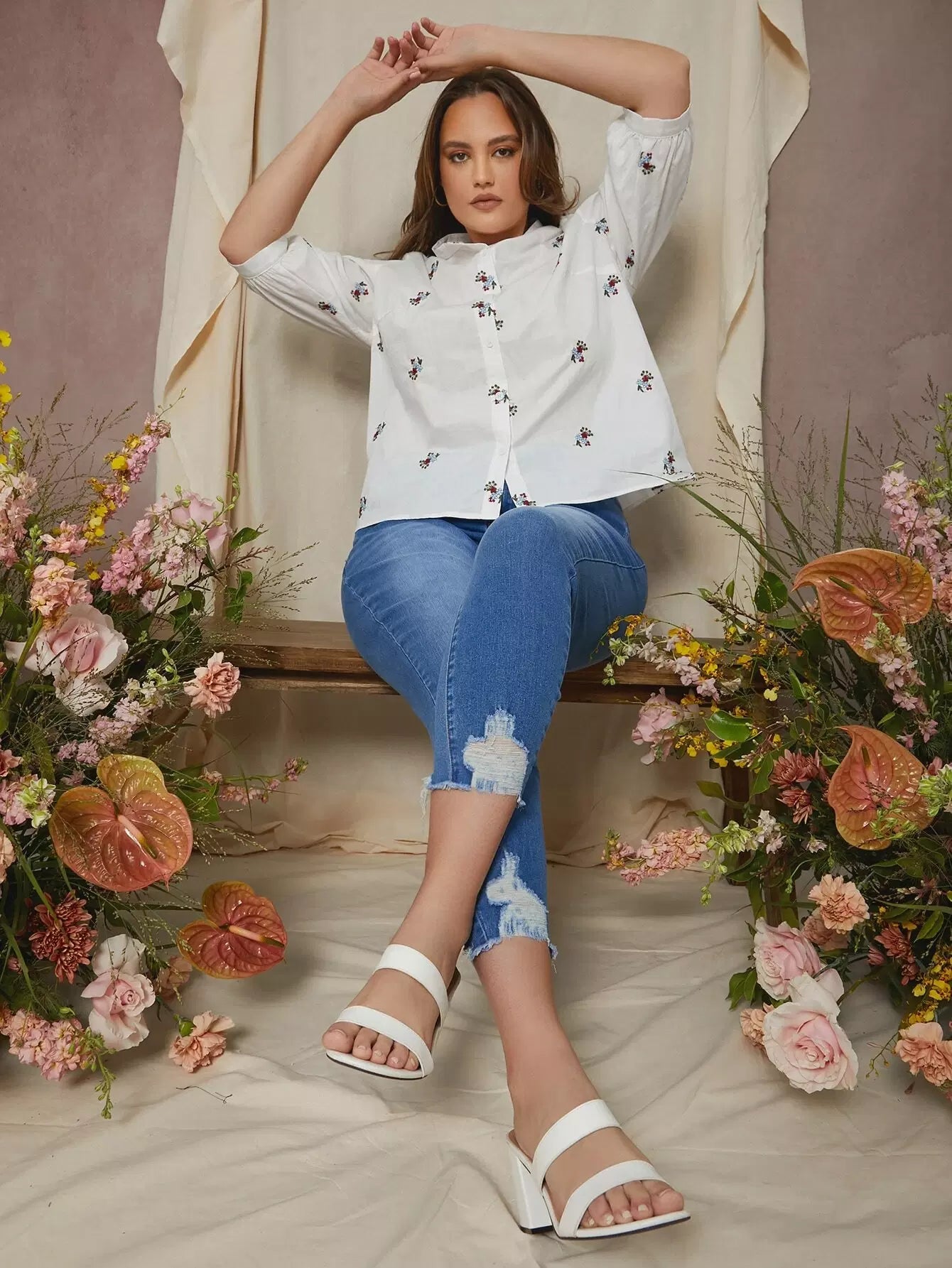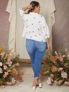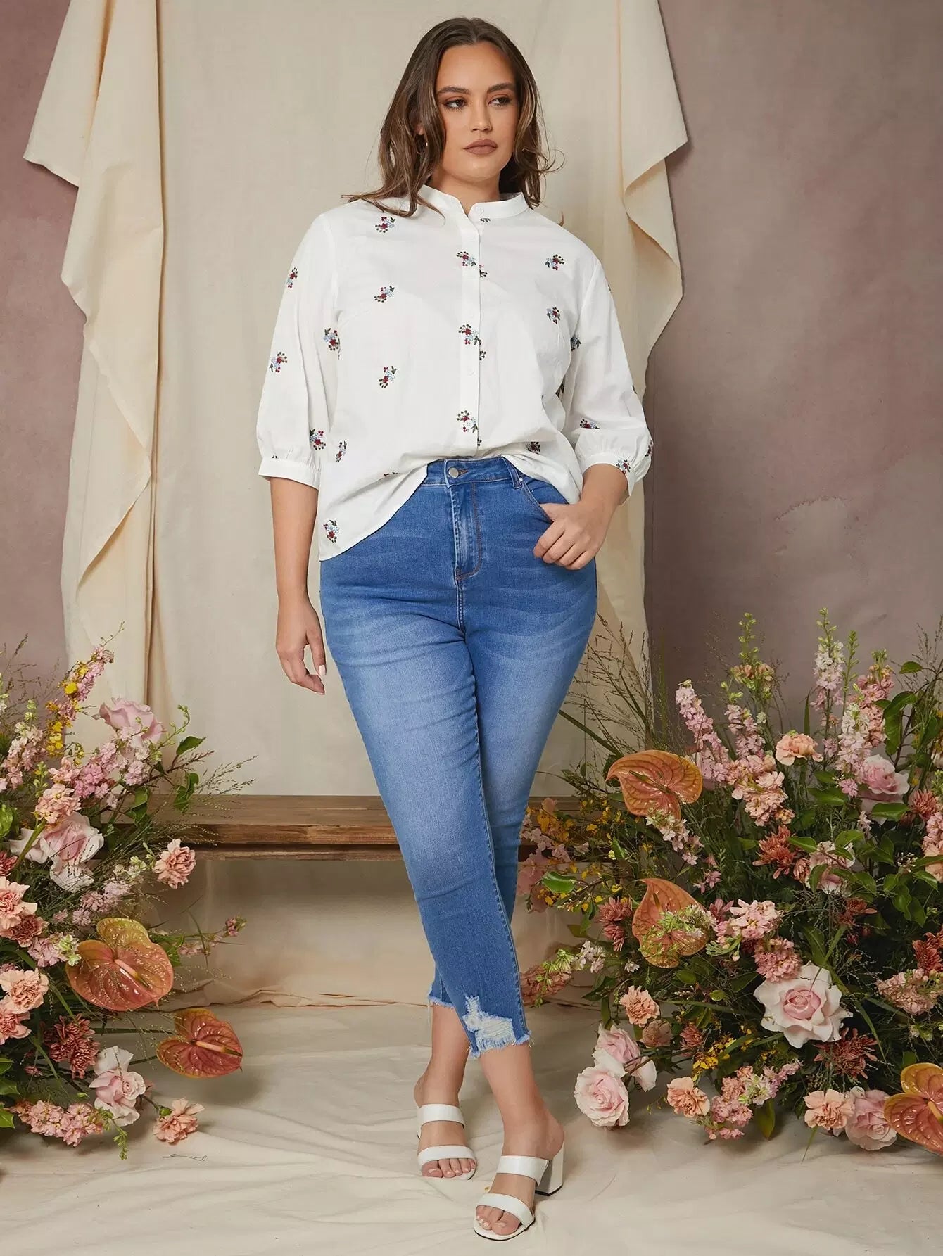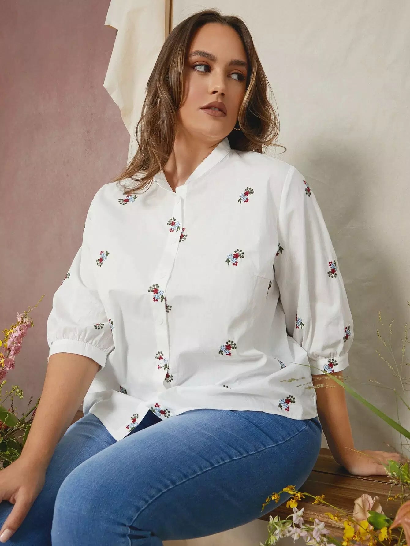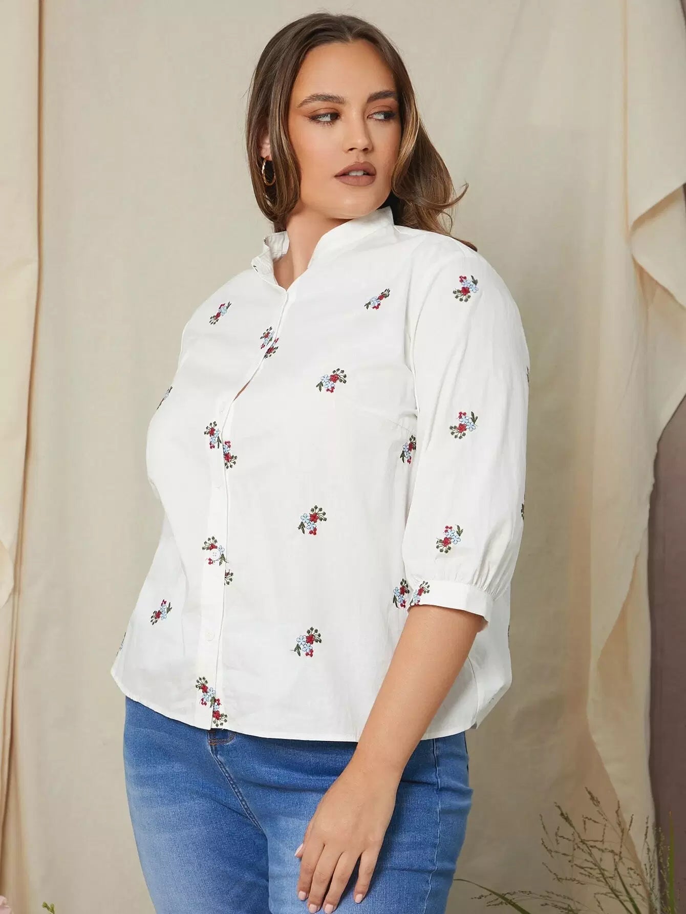بلوزة مطرزة بأزرار أمامية بأزرار زهرية زائد
