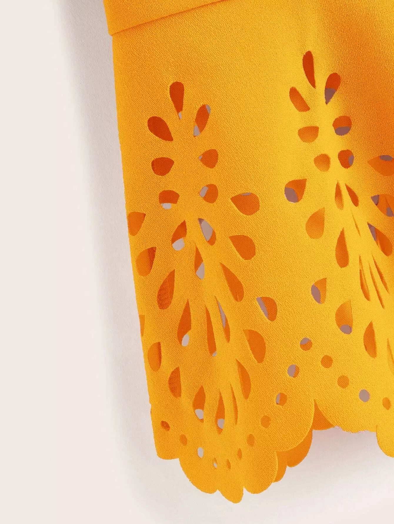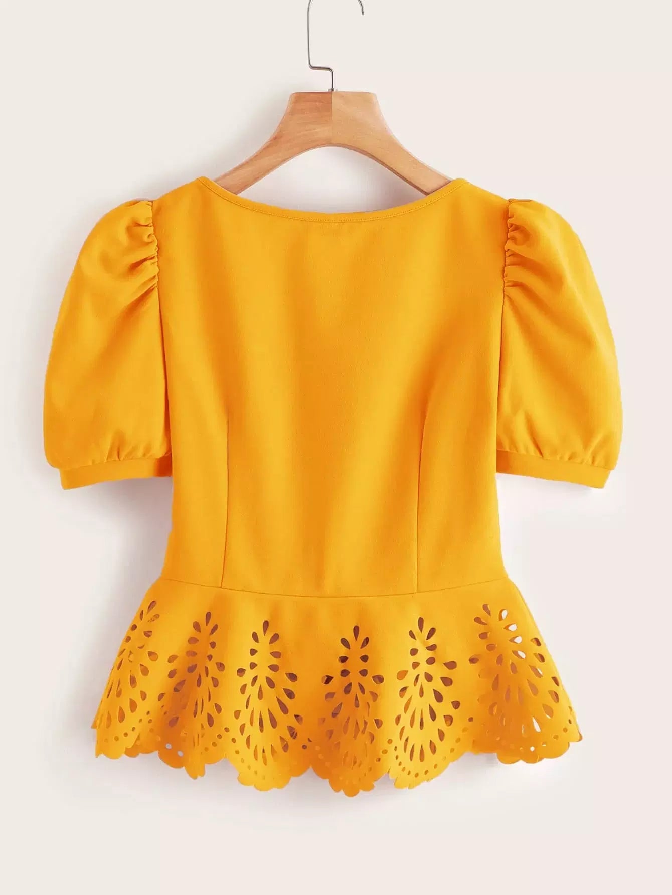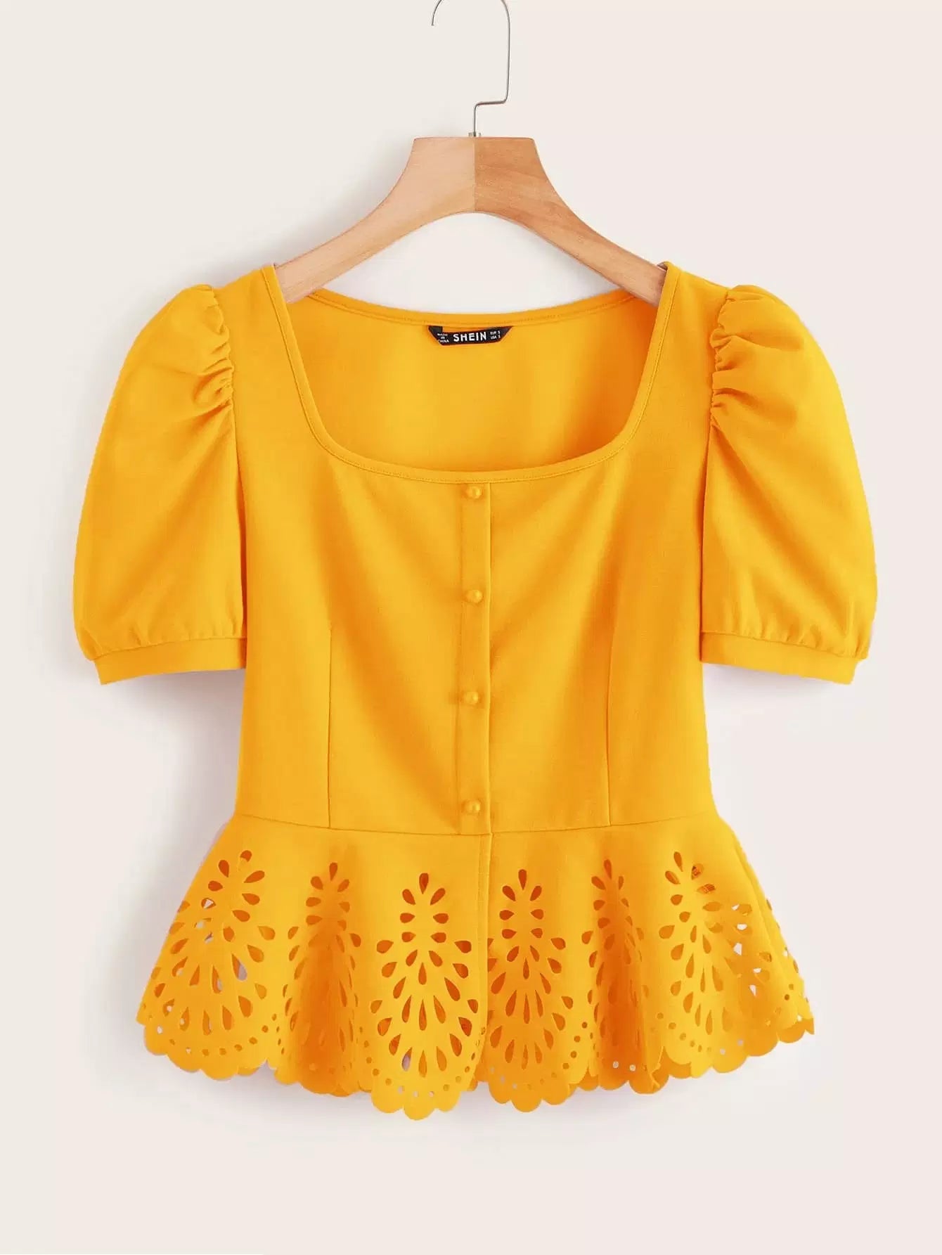 بلوزة بقصّة ليزر بأزرار أمامية بأزرار أمامية بحافة ليزر