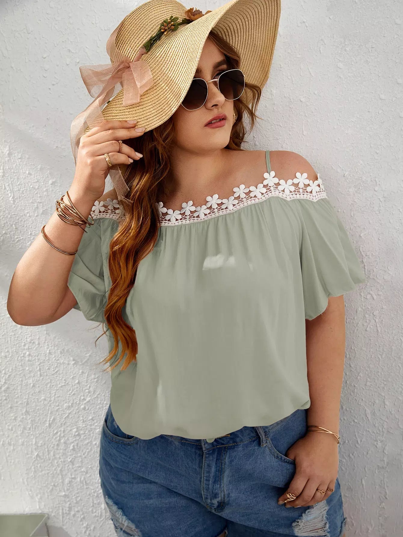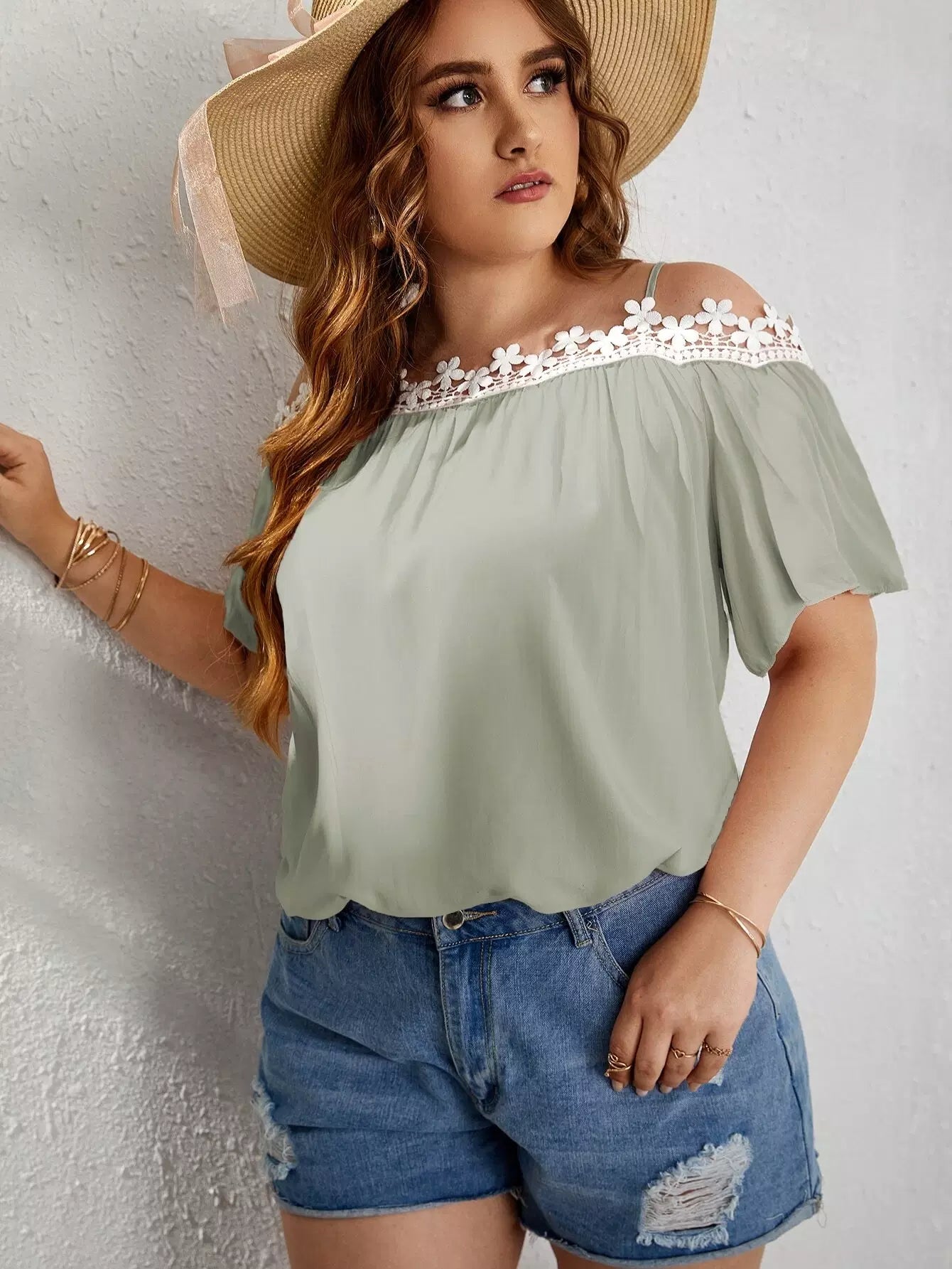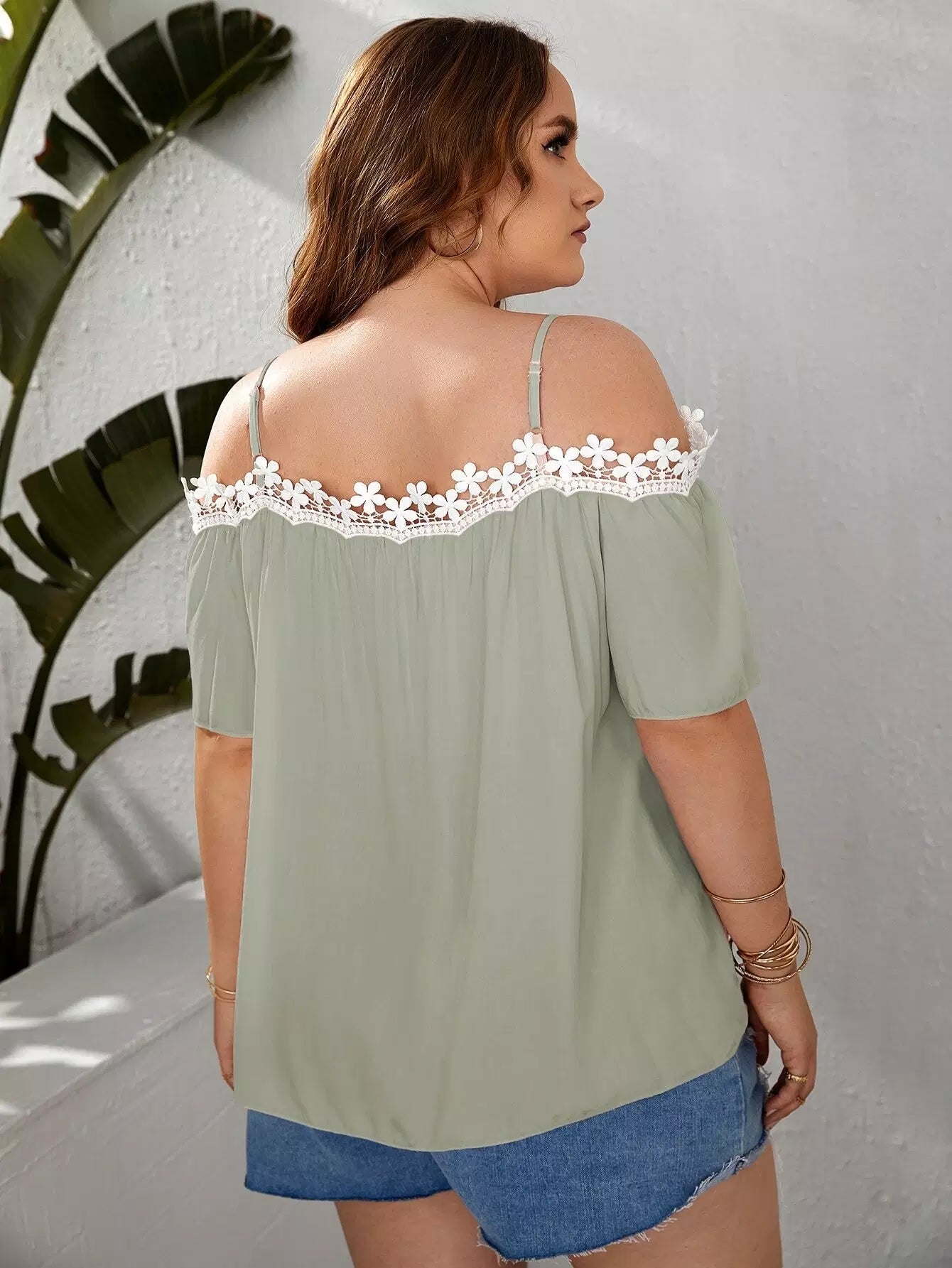 بلوزة بأكتاف باردة مزينة بالدانتيل
