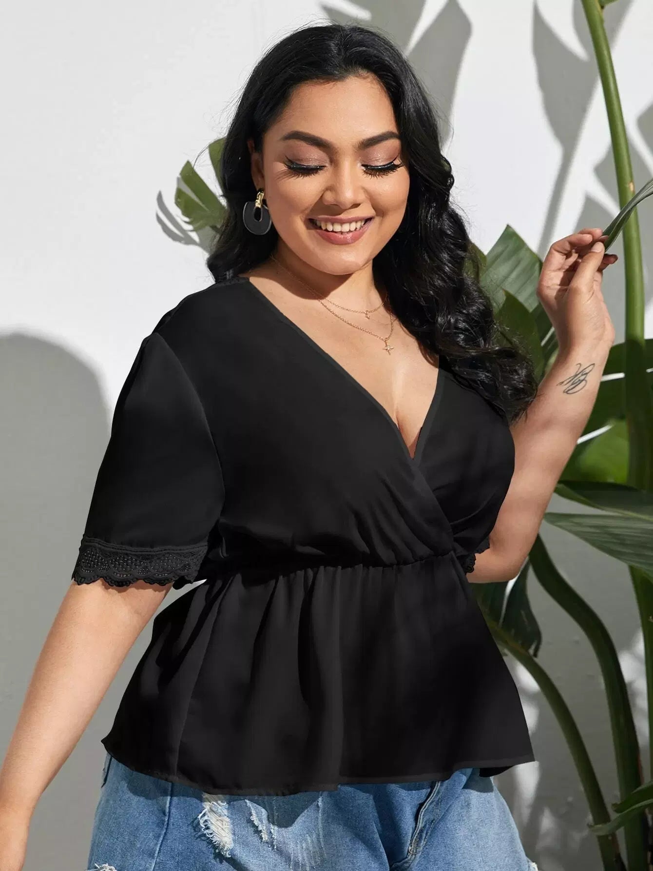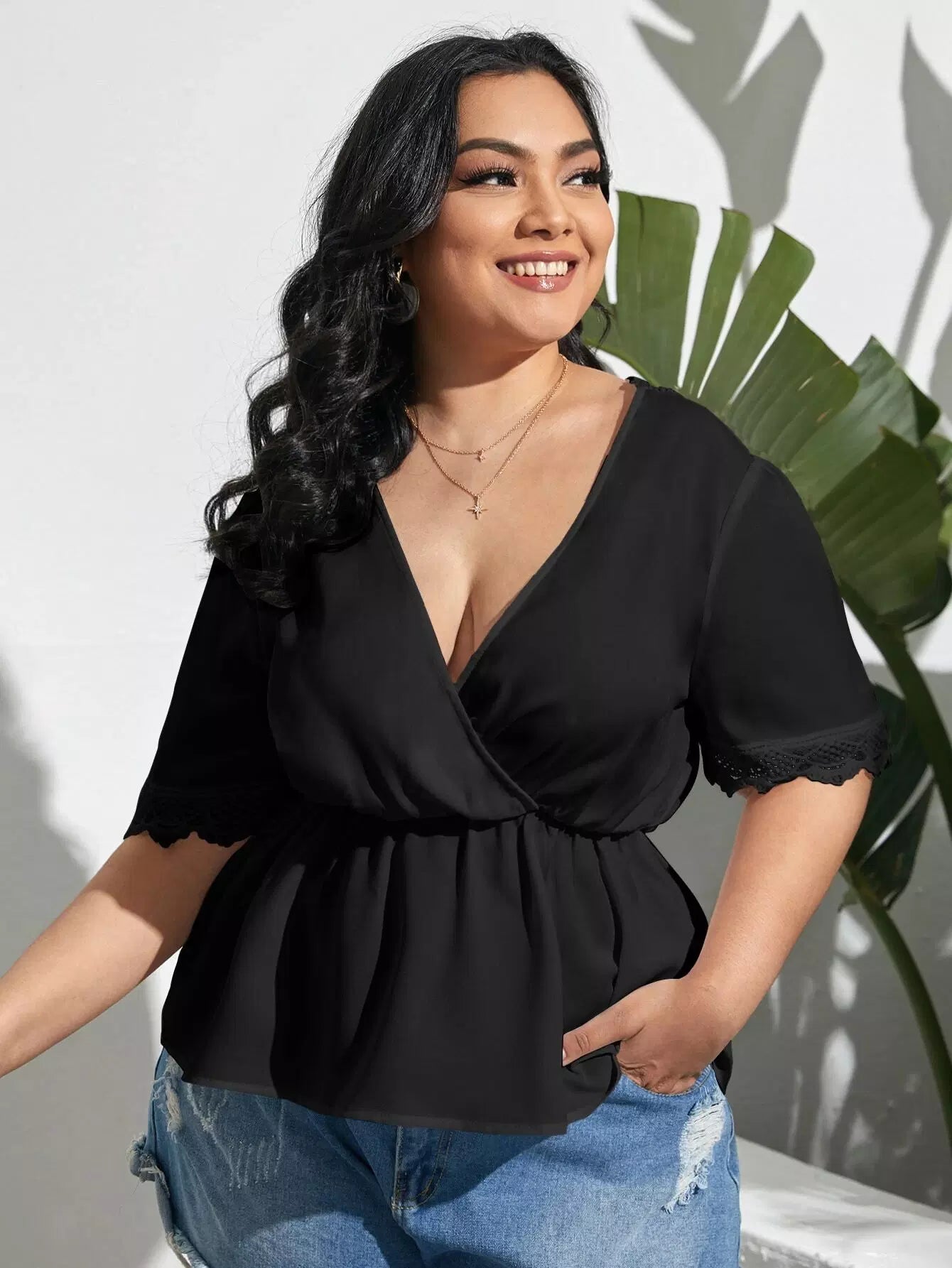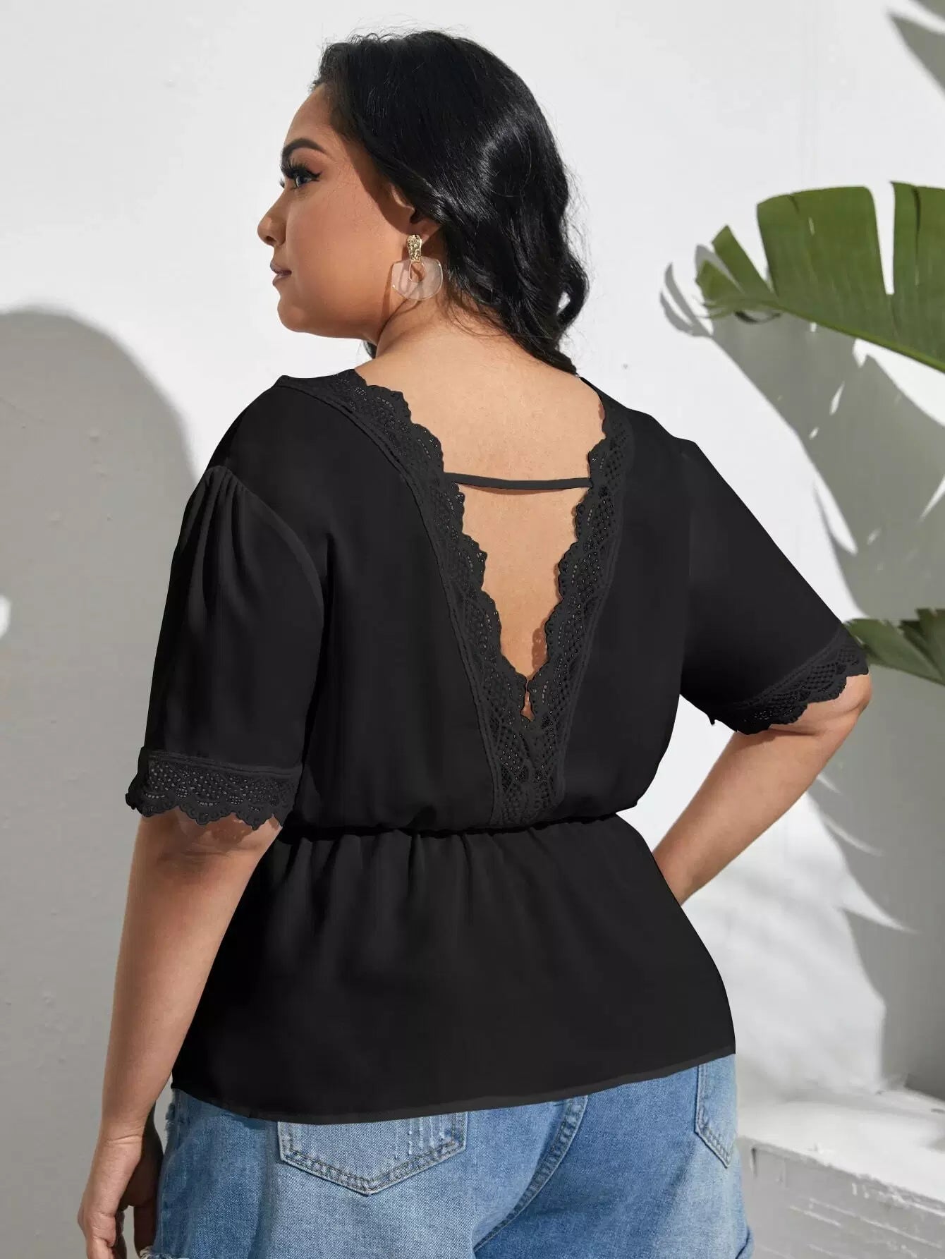 بلوزة من الدانتيل المخرّم بلون مغاير بلون مغاير بلون مغاير من الدانتيل المخرّم بقصّة من الخلف