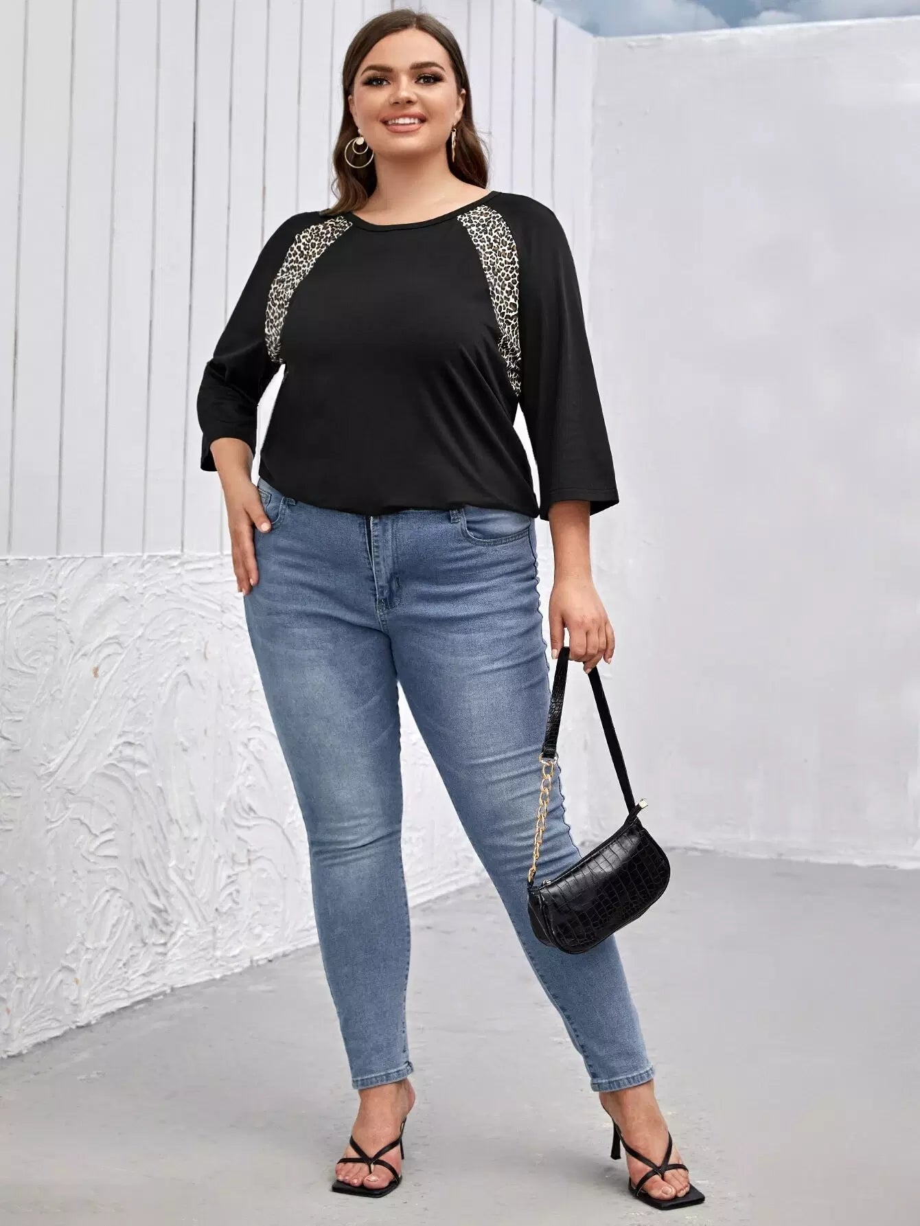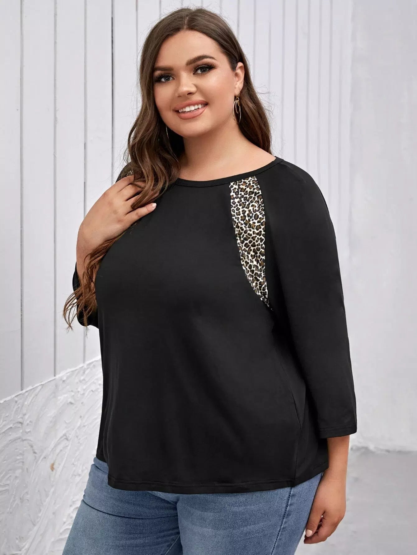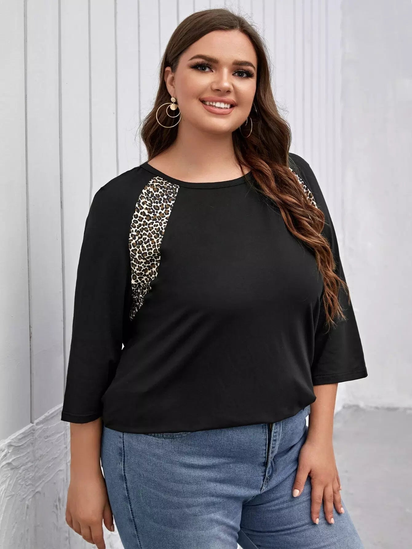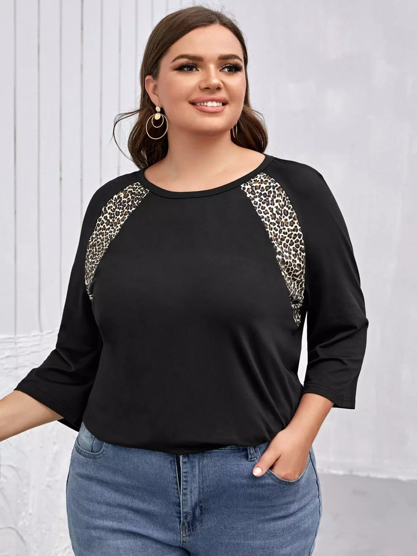 تي شيرت بأكمام راجلان بلون مغاير بلون النمر