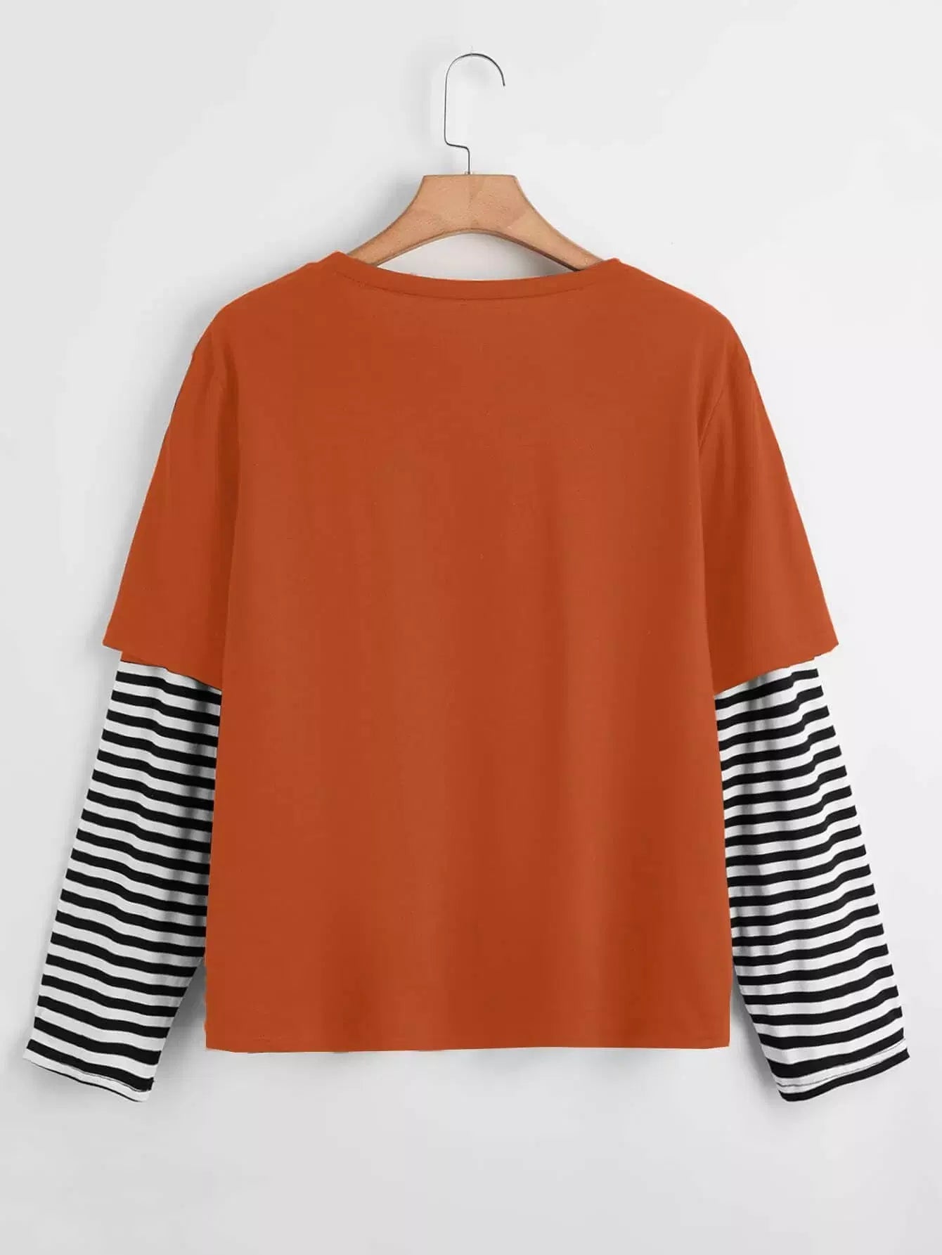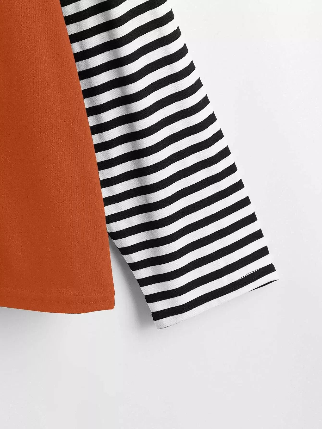 تي شيرت بأكمام مخططة بلون مغاير 2 في 1