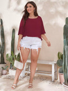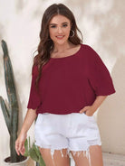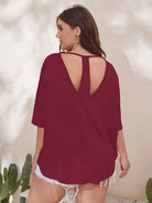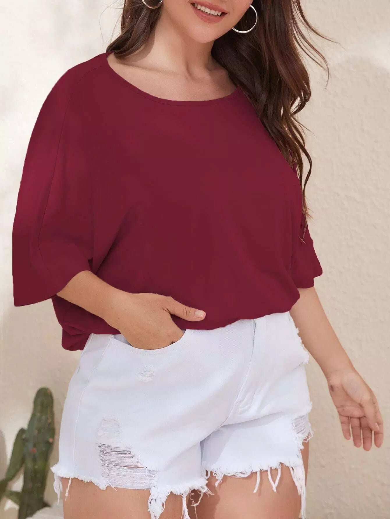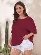 تي شيرت سادة بأكمام قصيرة من الخلف بقصّة بلاس باتوينغ سادة