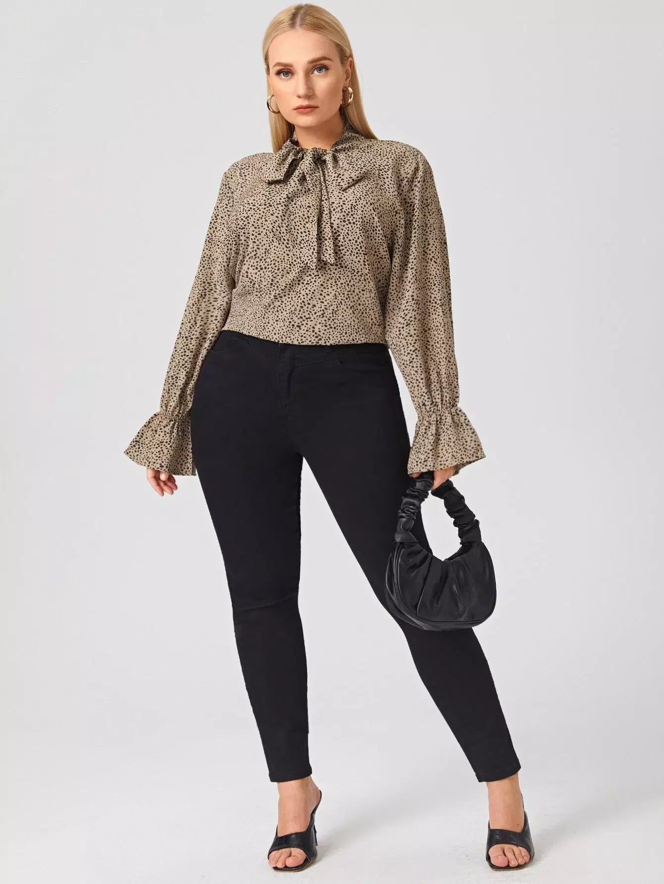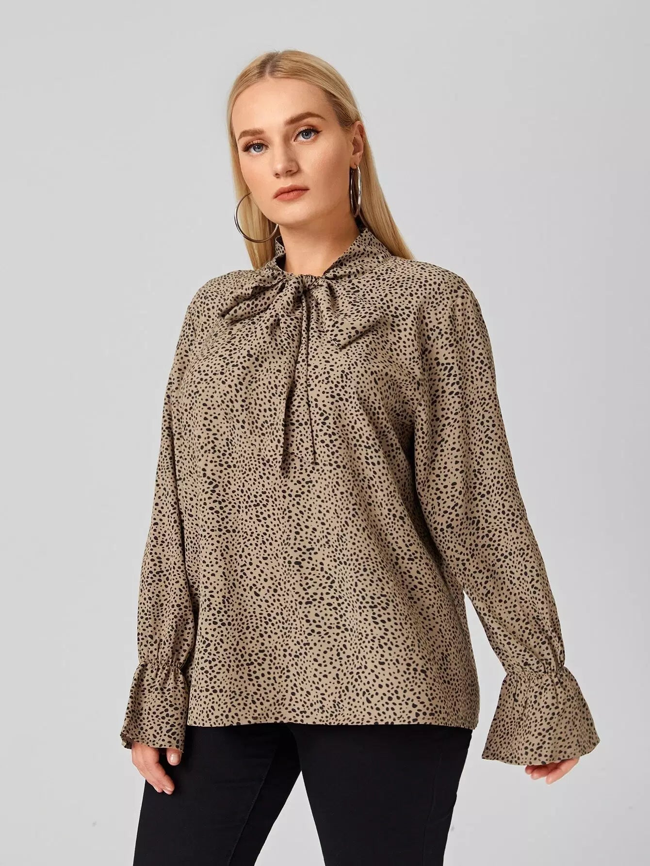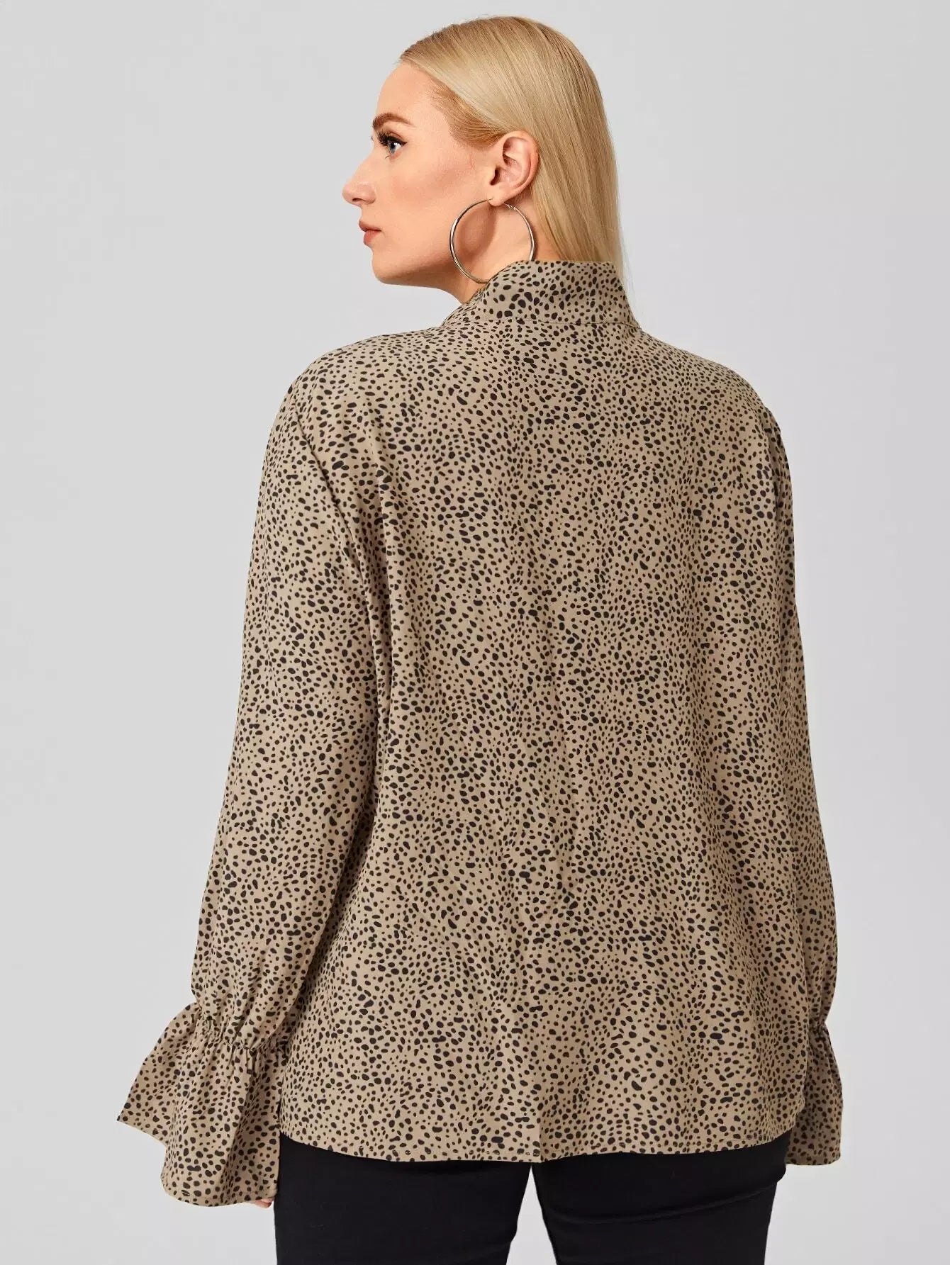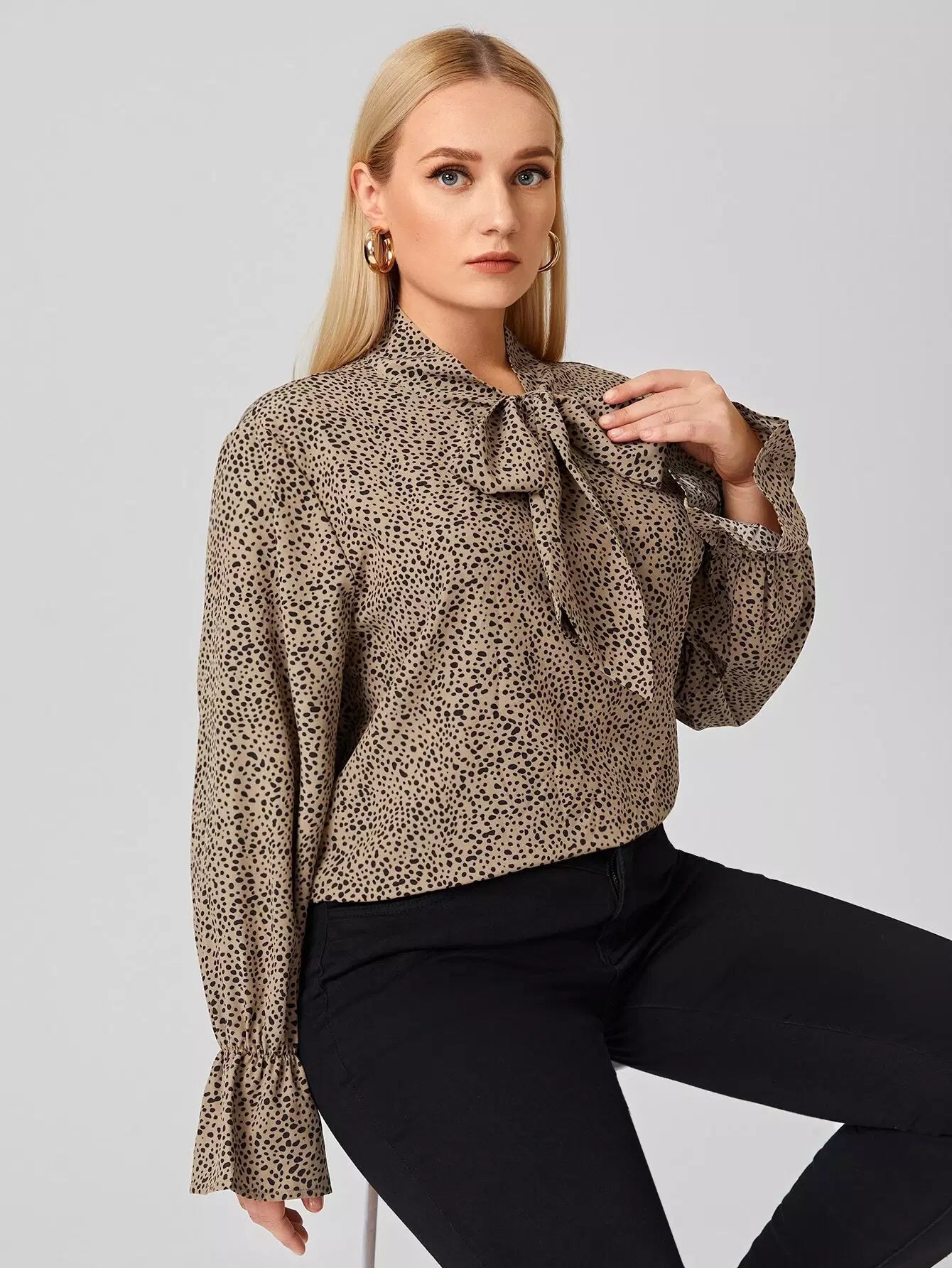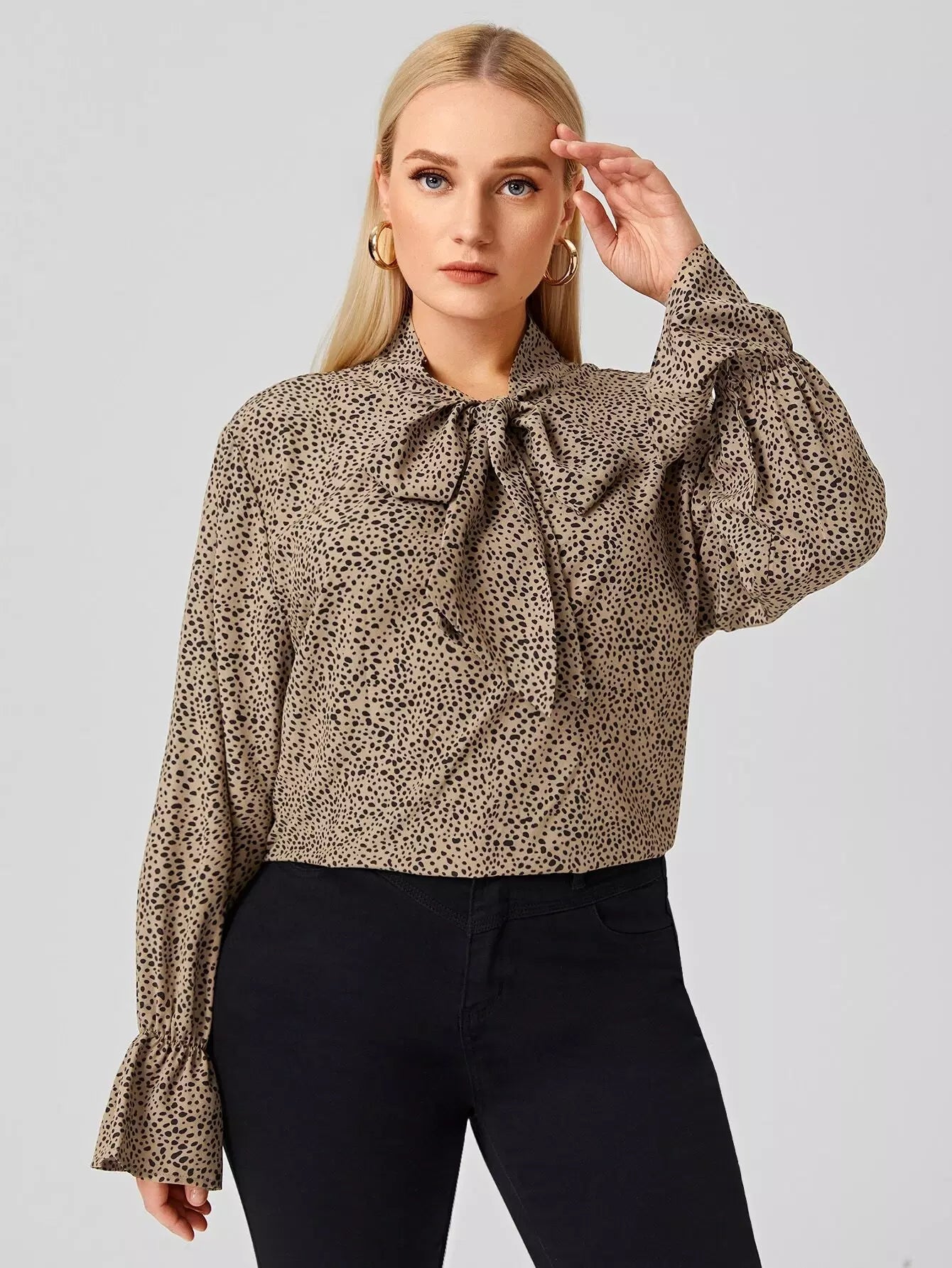 بلوزة بأكمام منفوشة بربطة عنق دالماسية زائد