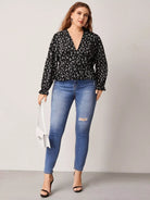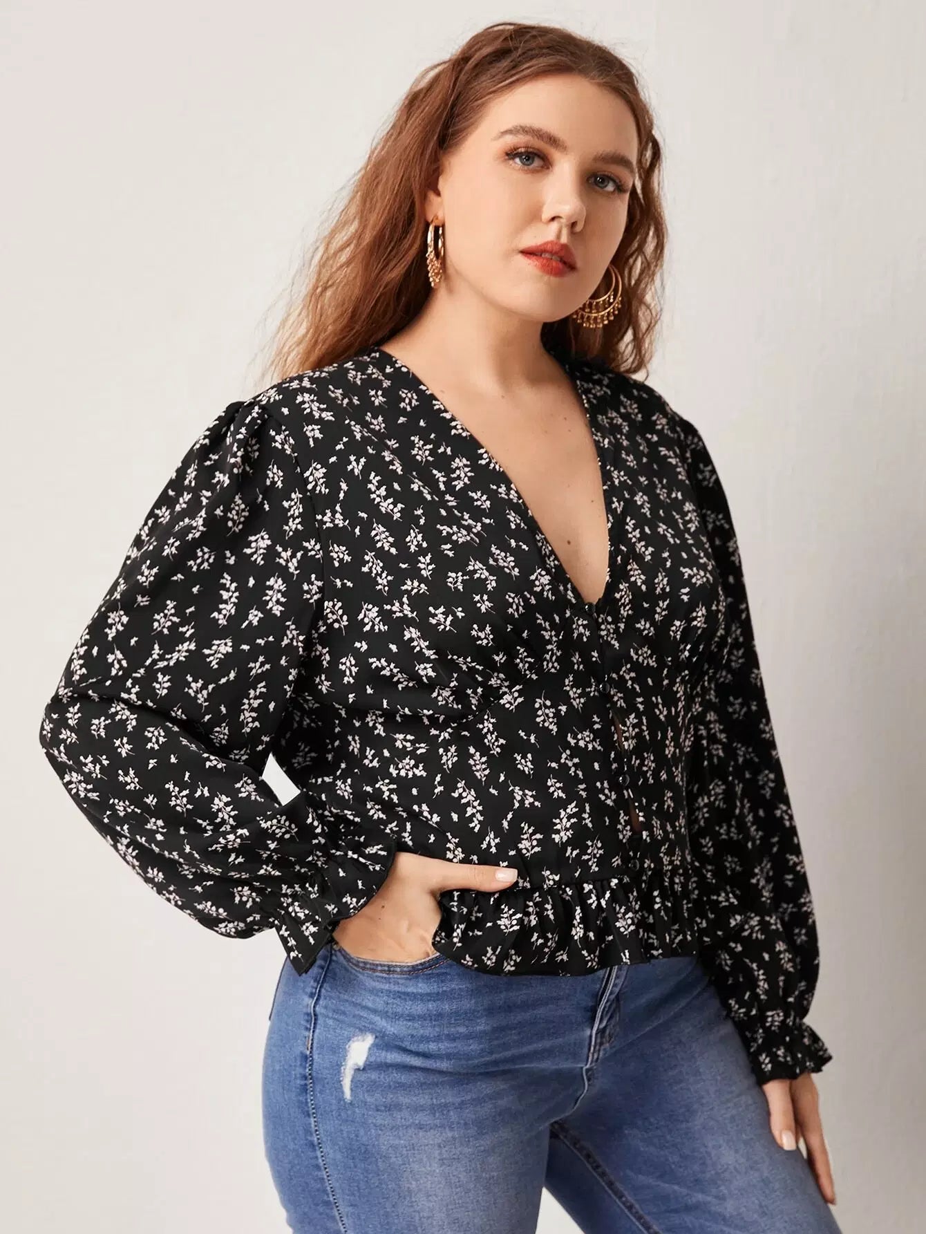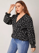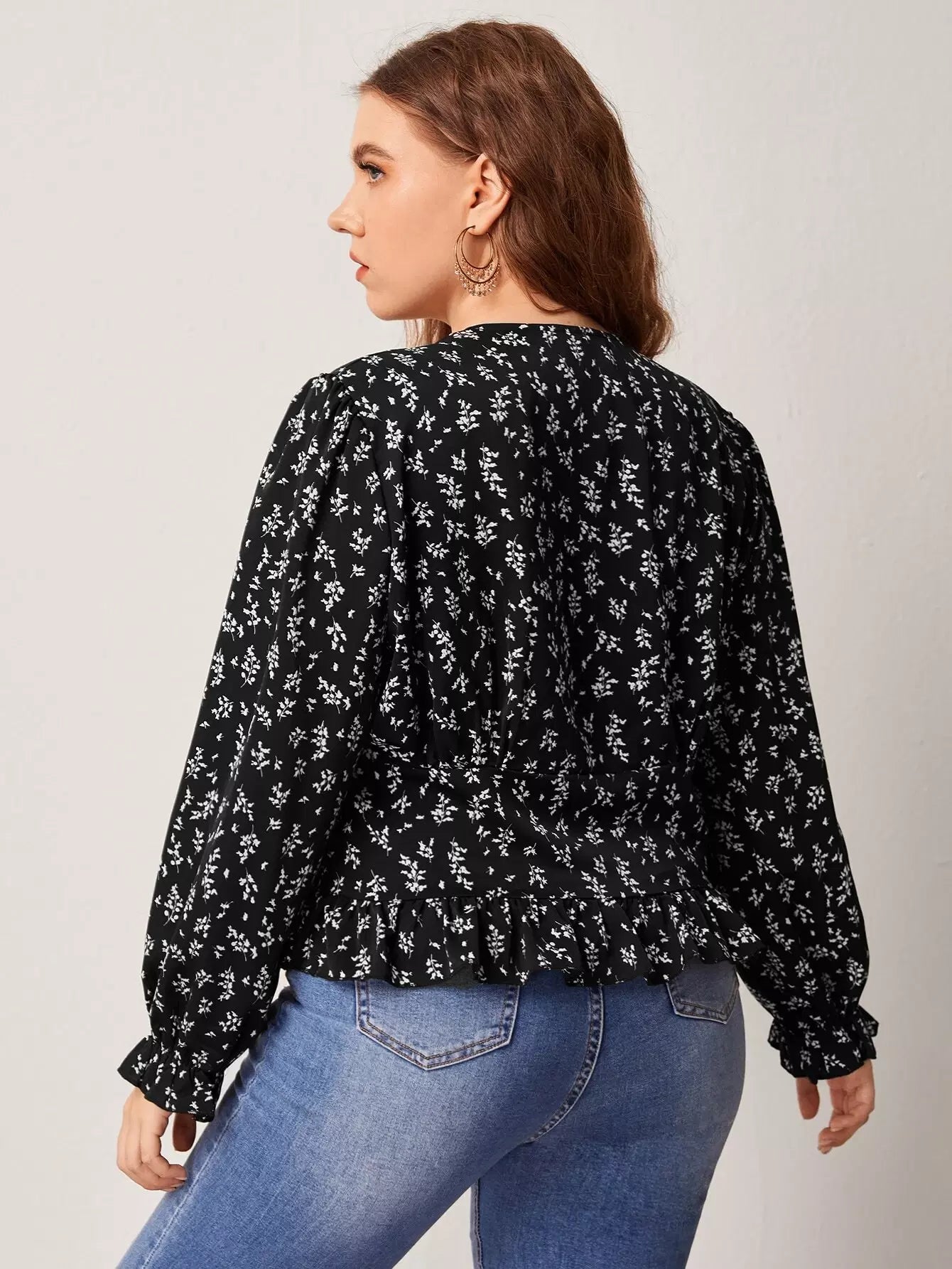 نحيف - مقاس كبير بلوزة بأزرار على شكل زهور من Ditsy