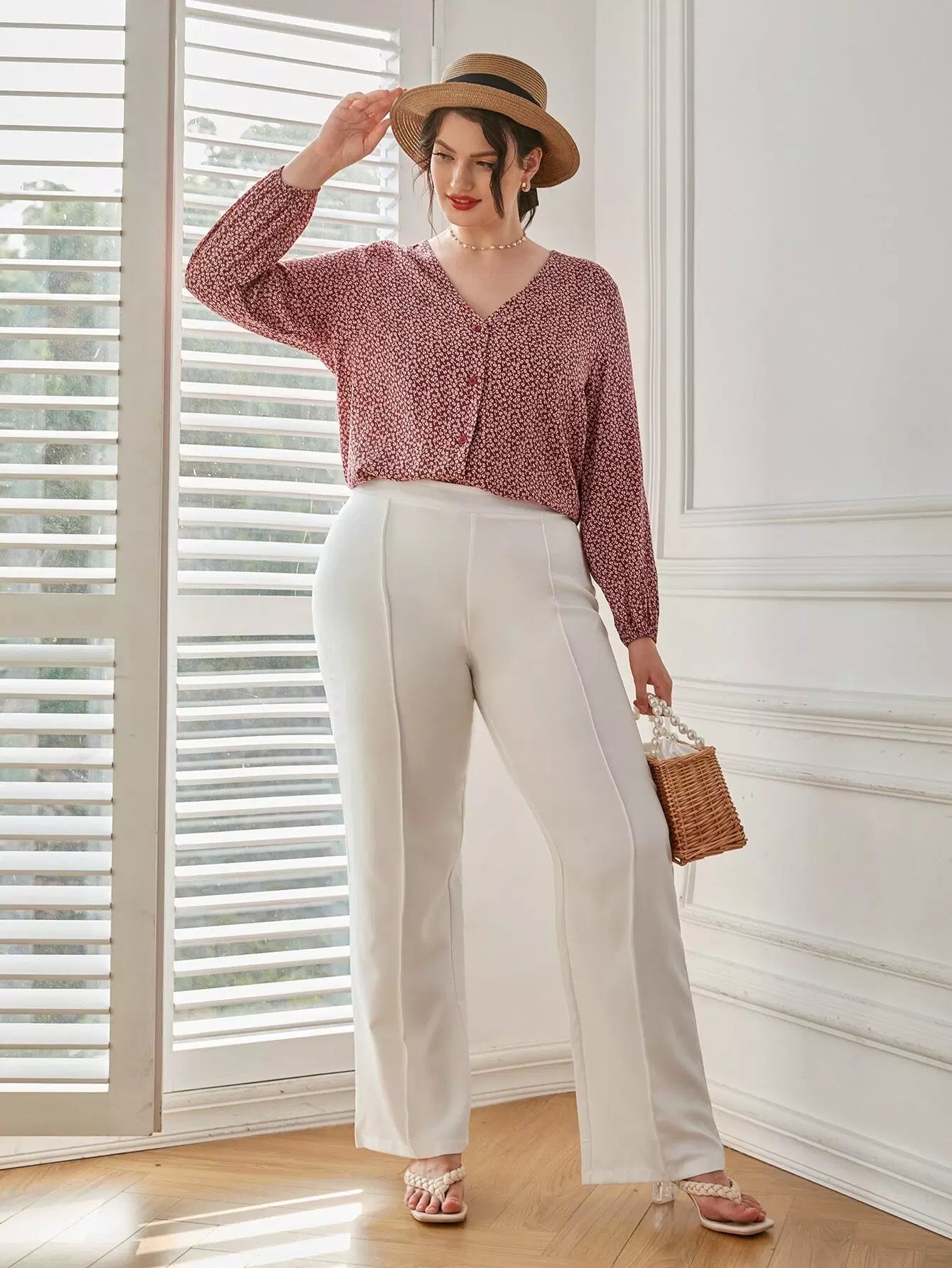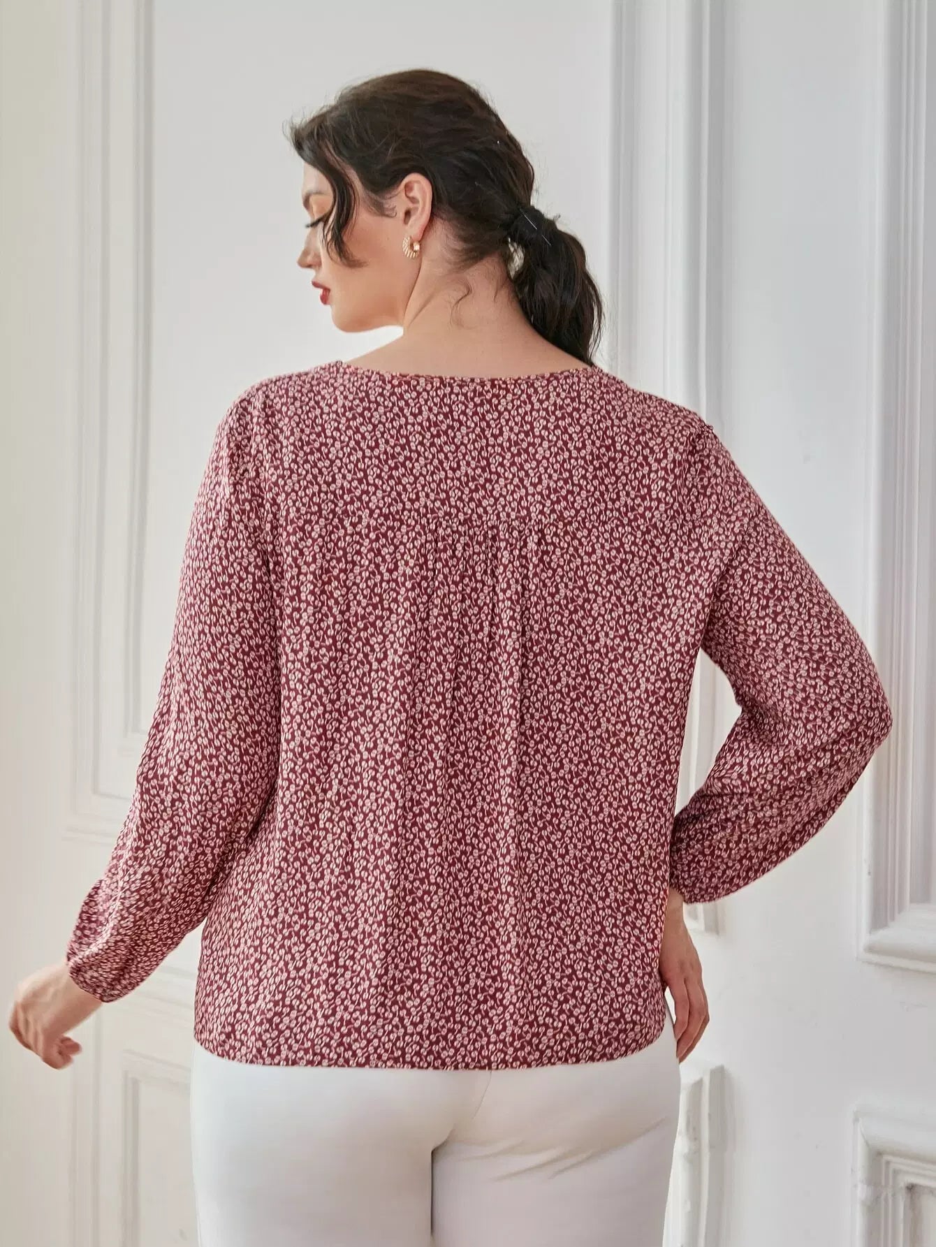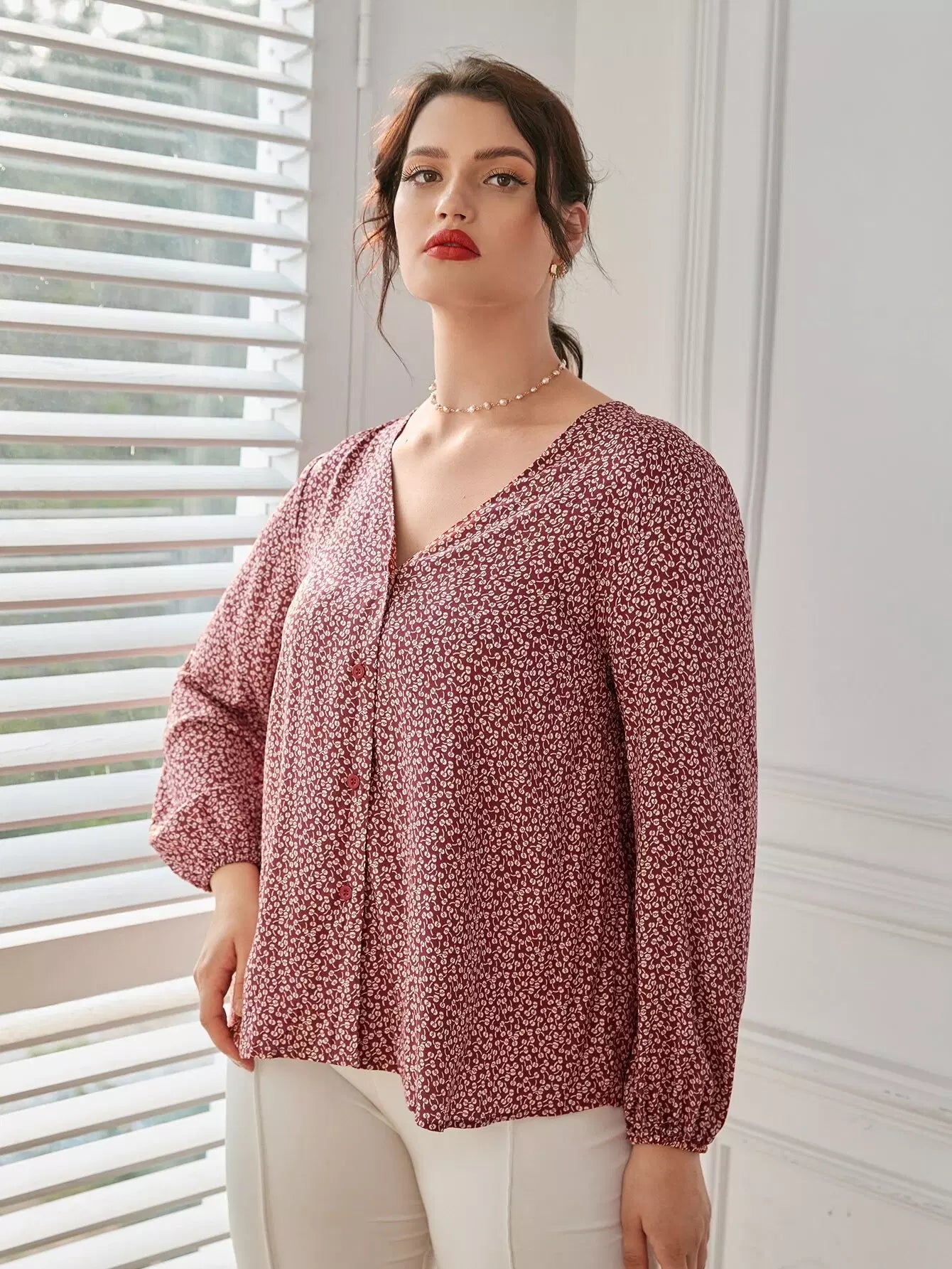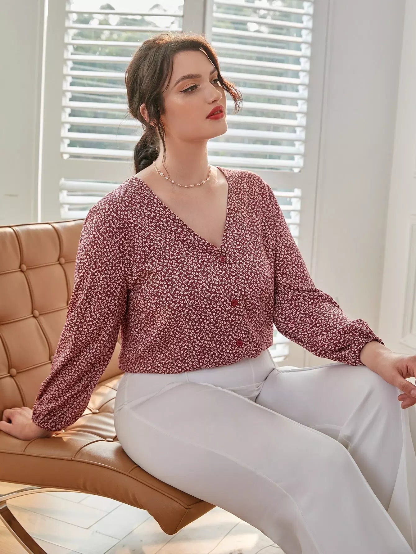 بلوزة ديتسي بطبعة أزهار مطبوعة بأزرار أمامية بلس
