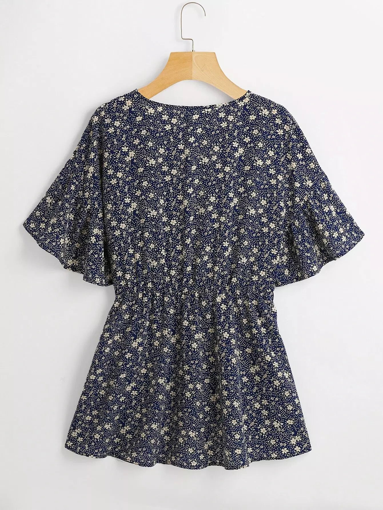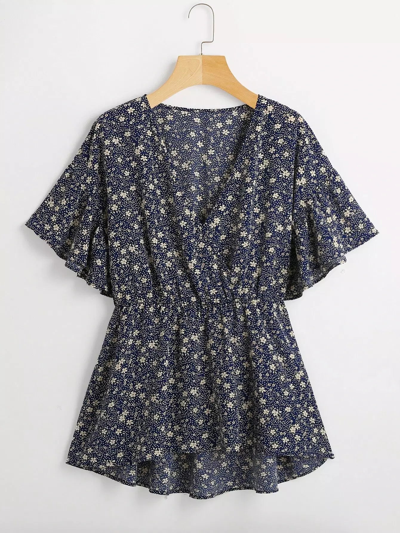 نحيف - مقاس كبير بلوزة ملفوفة بكشكشة على شكل زهور من Ditsy