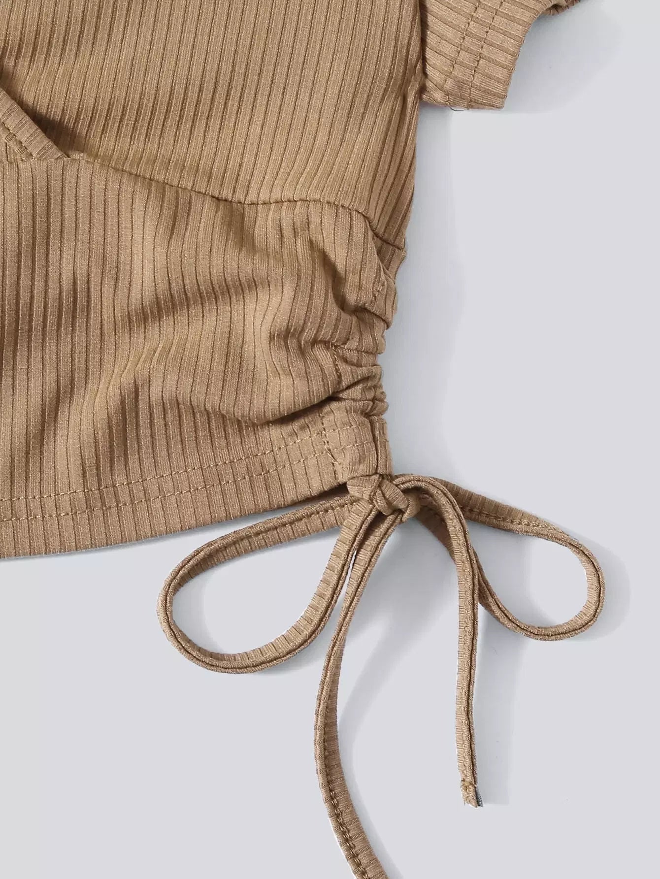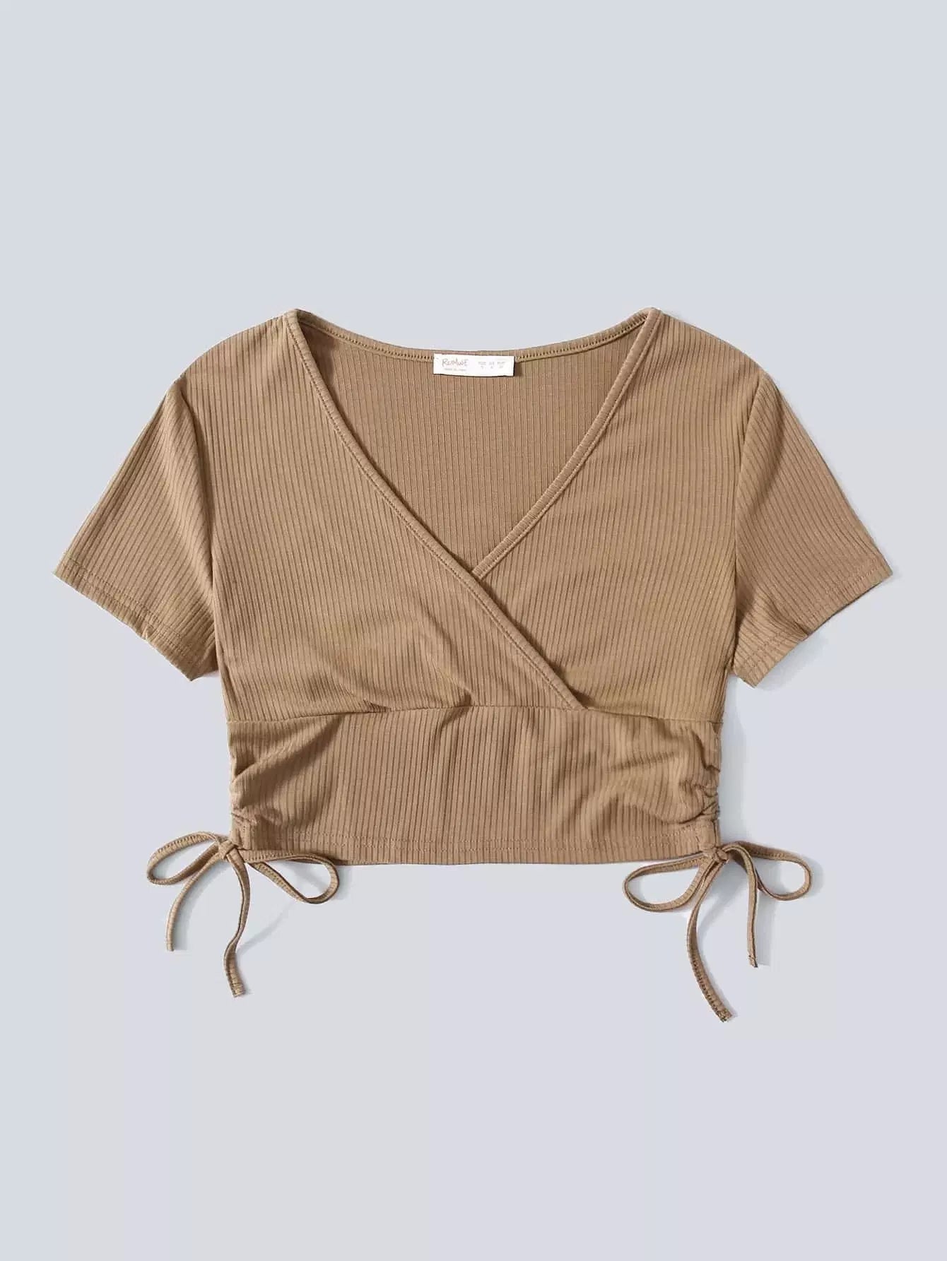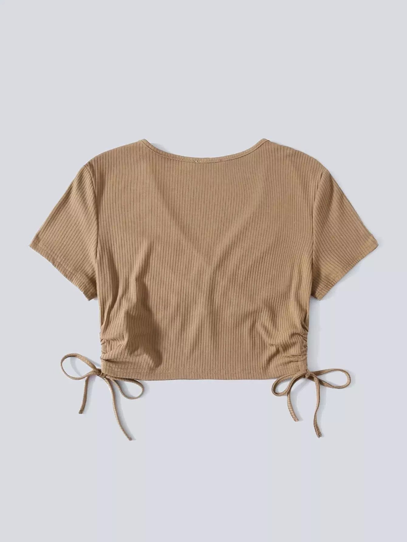 تي شيرت قصير قصير برباط جانبي برباط جانبي زائد من الأمام