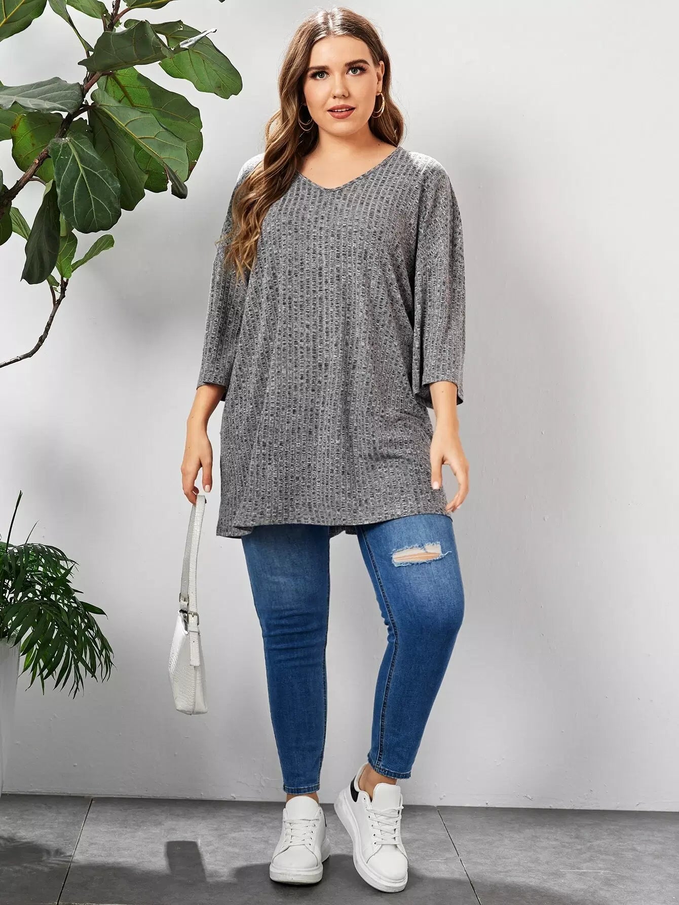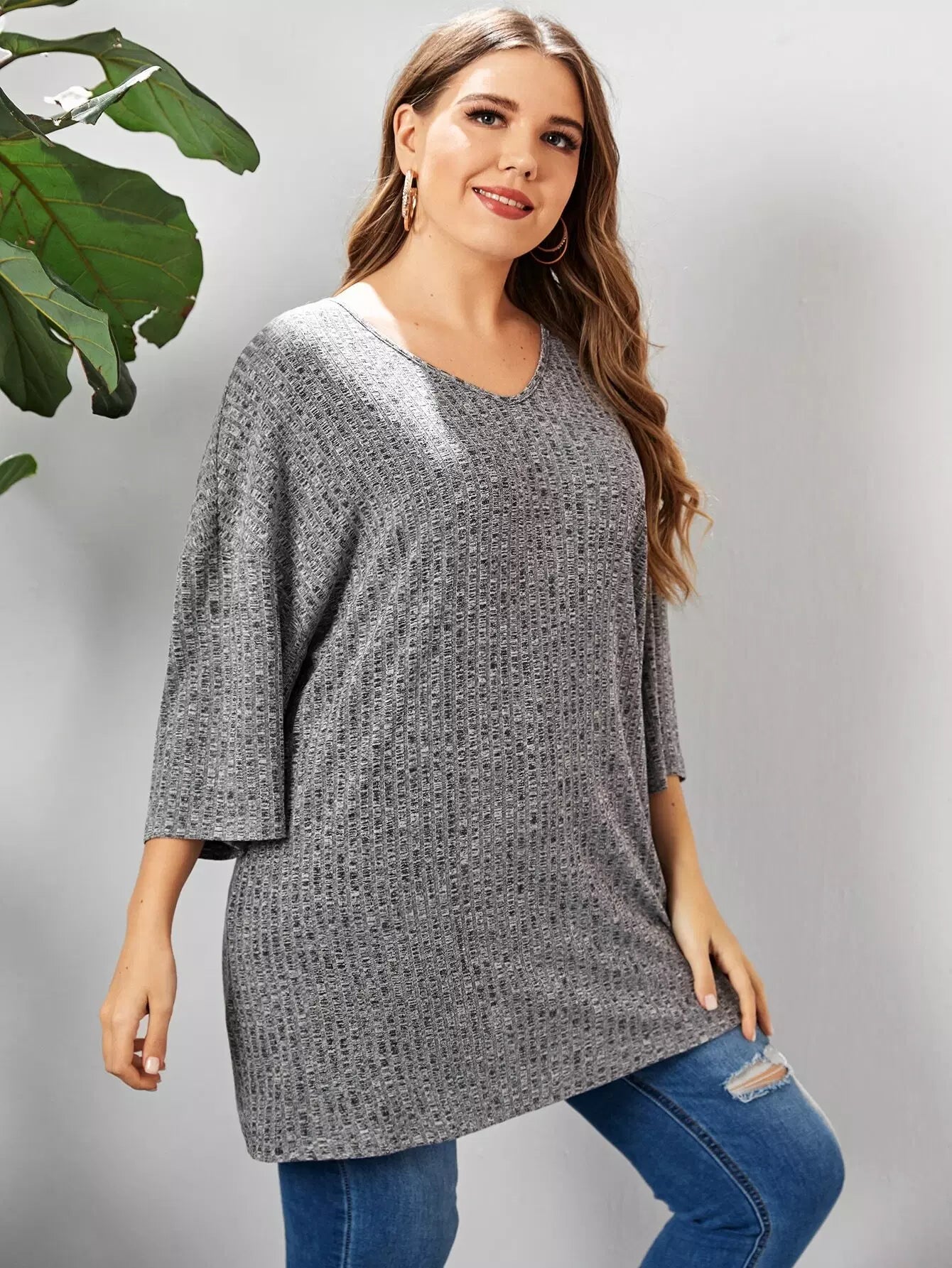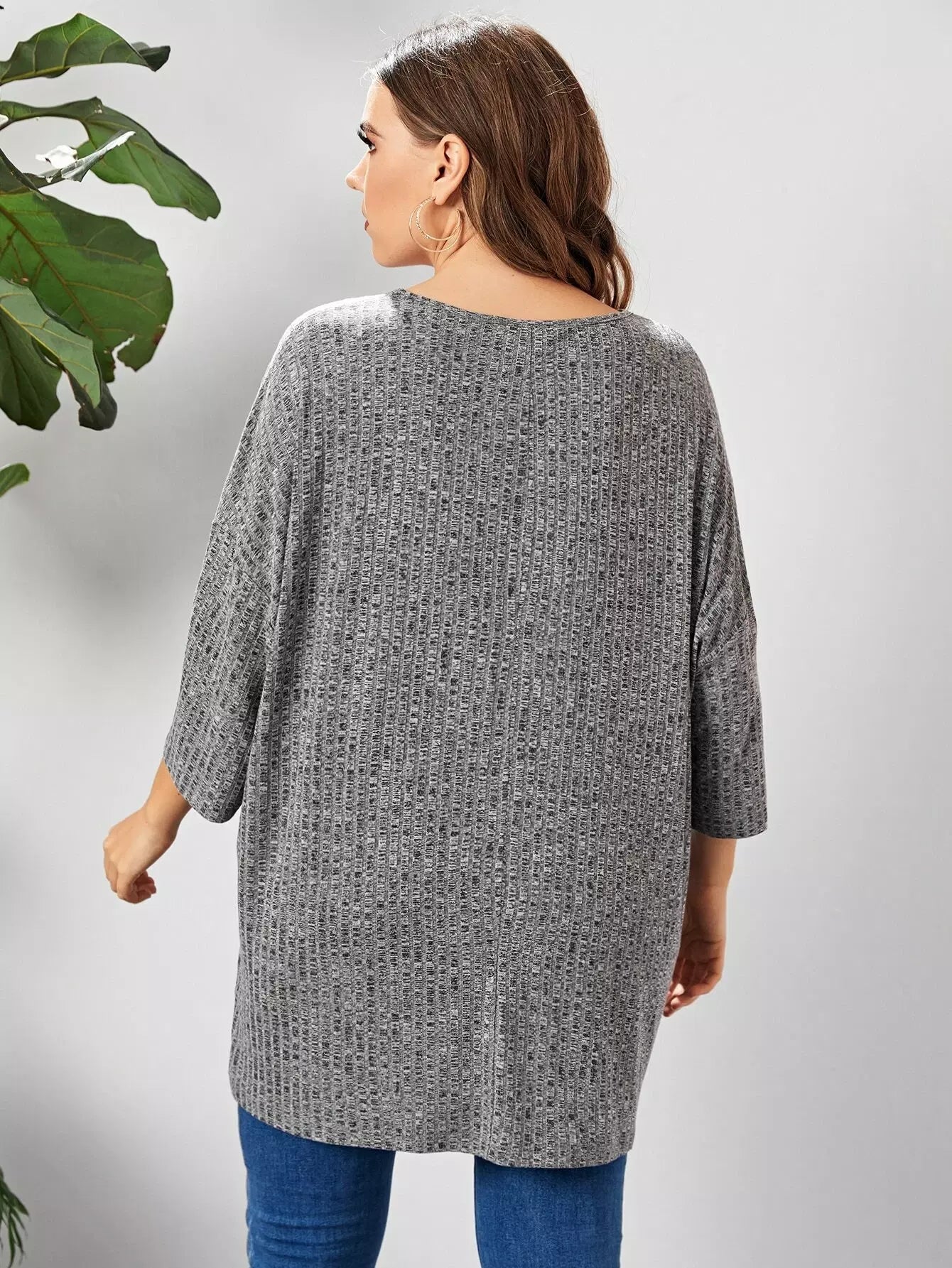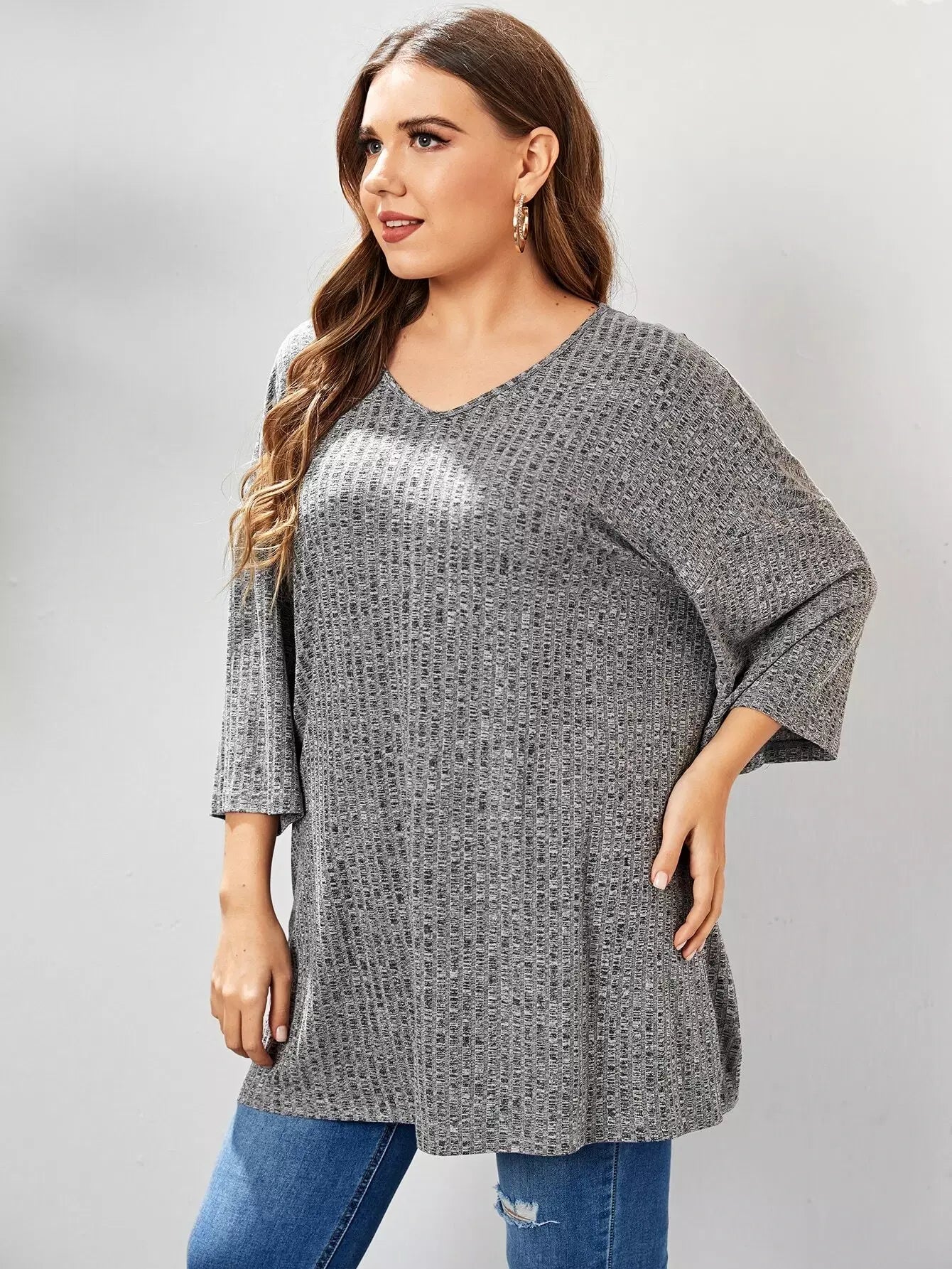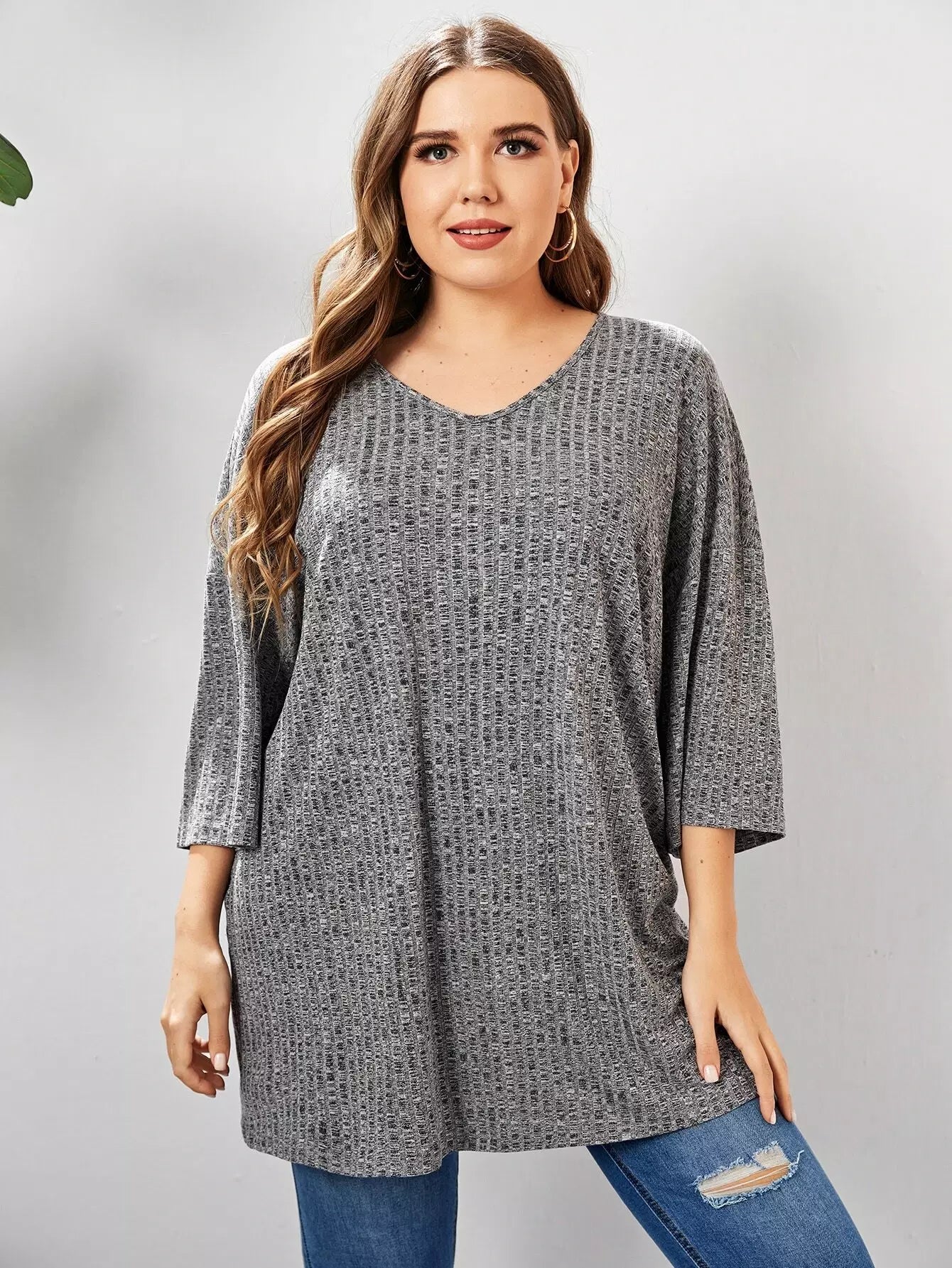 تي شيرت بدون أكتاف منسدل الأكتاف محبوك على شكل ضلع