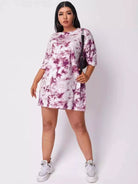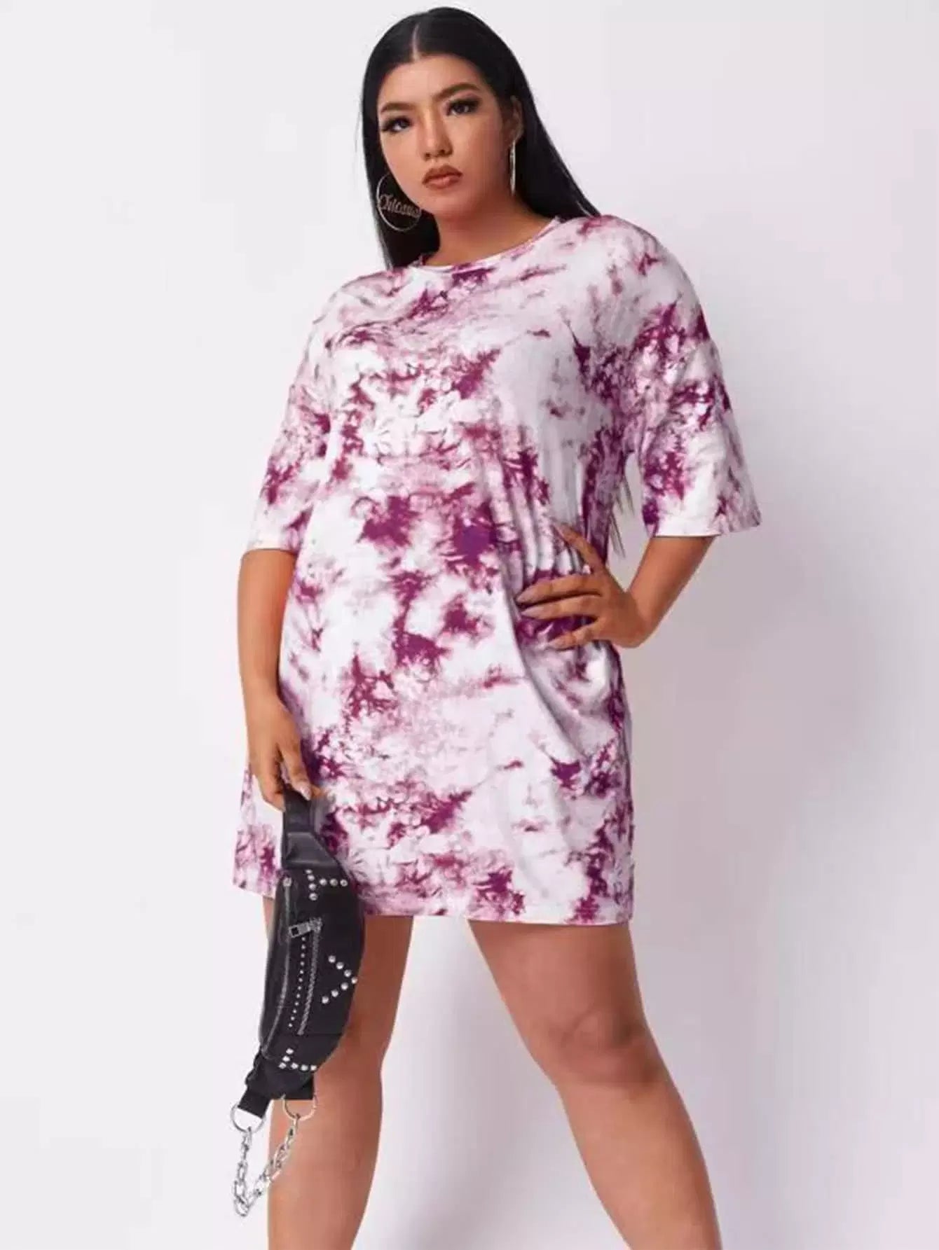 تي شيرت منسدل الأكتاف مصبوغ بصبغة منسدلة على الكتف زائد الحجم