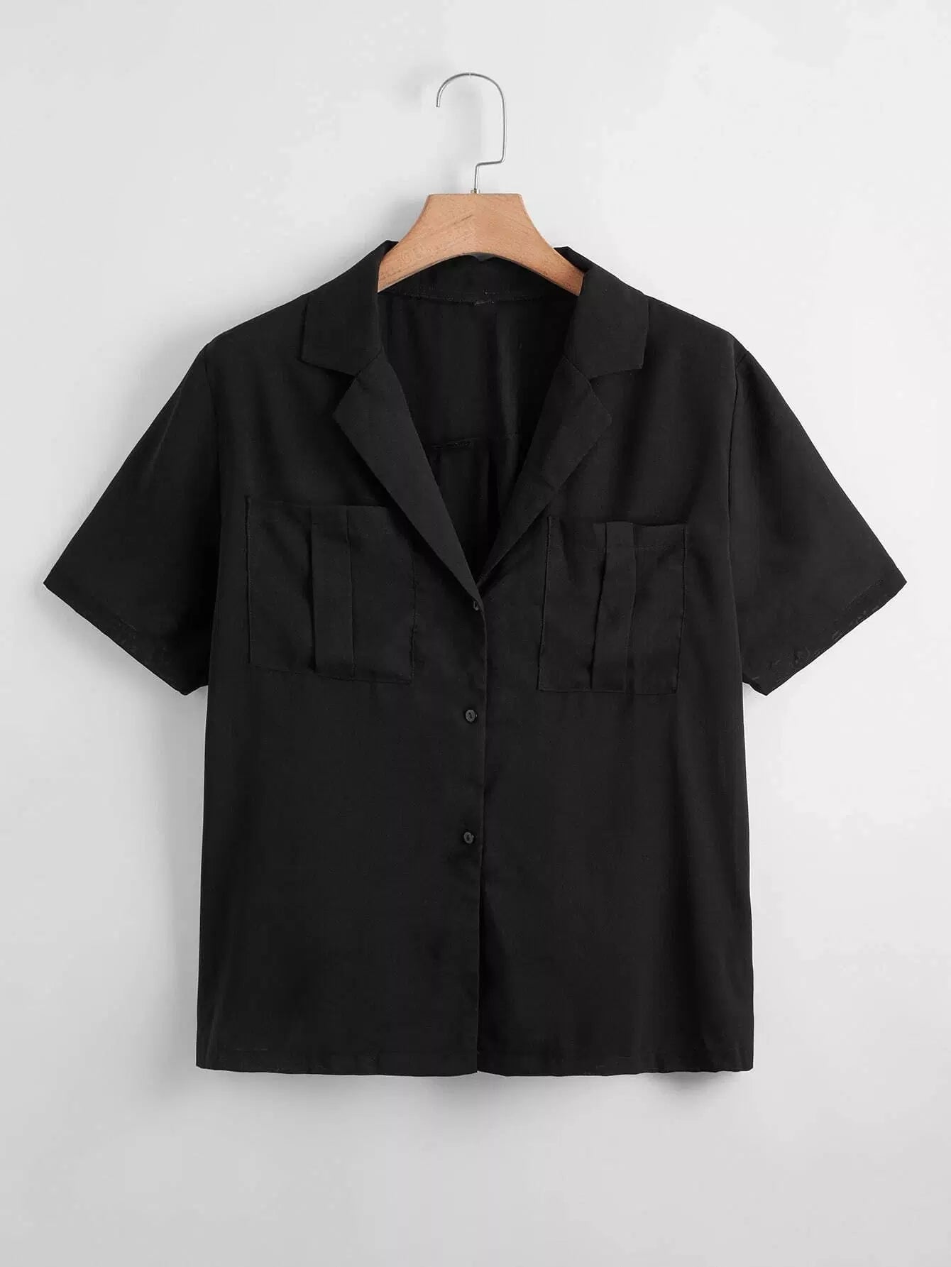 بلوزة بجيب مزدوج بياقة برقبة مزدوجة زائد