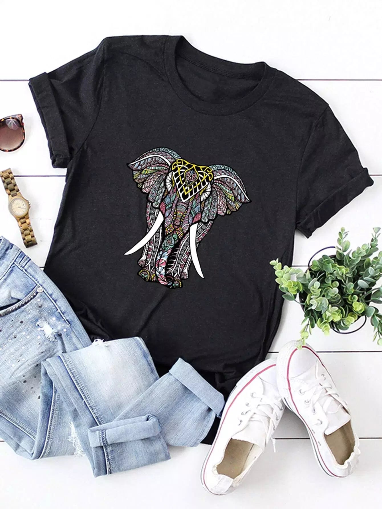 تي شيرت بطبعة فيل زائد