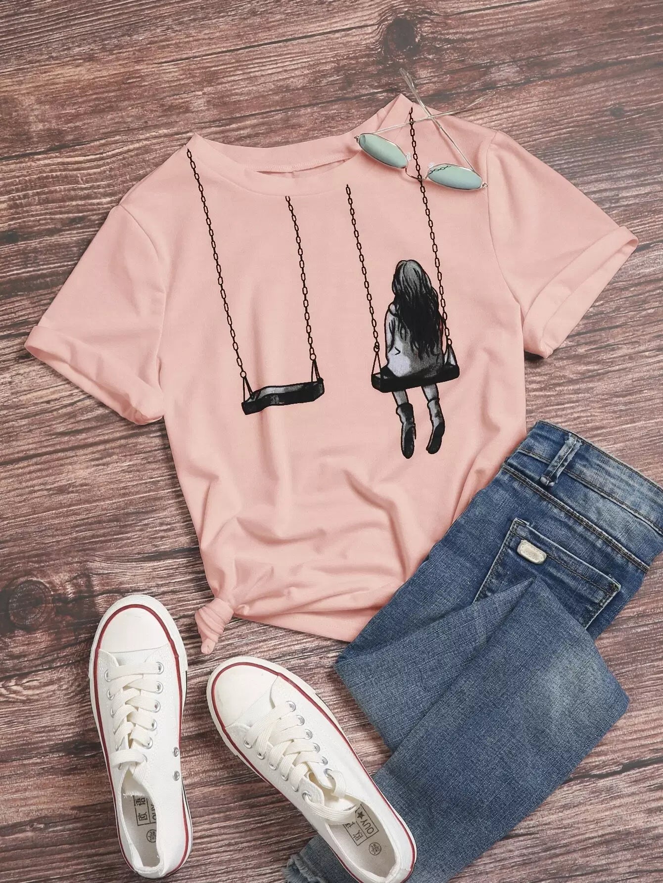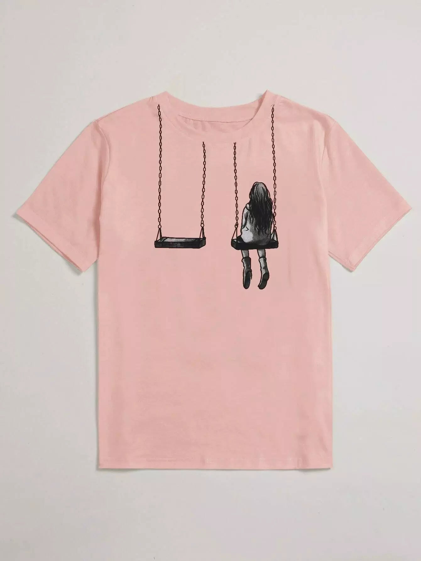 تي شيرت مطبوع عليه رسومات وشكل زائد