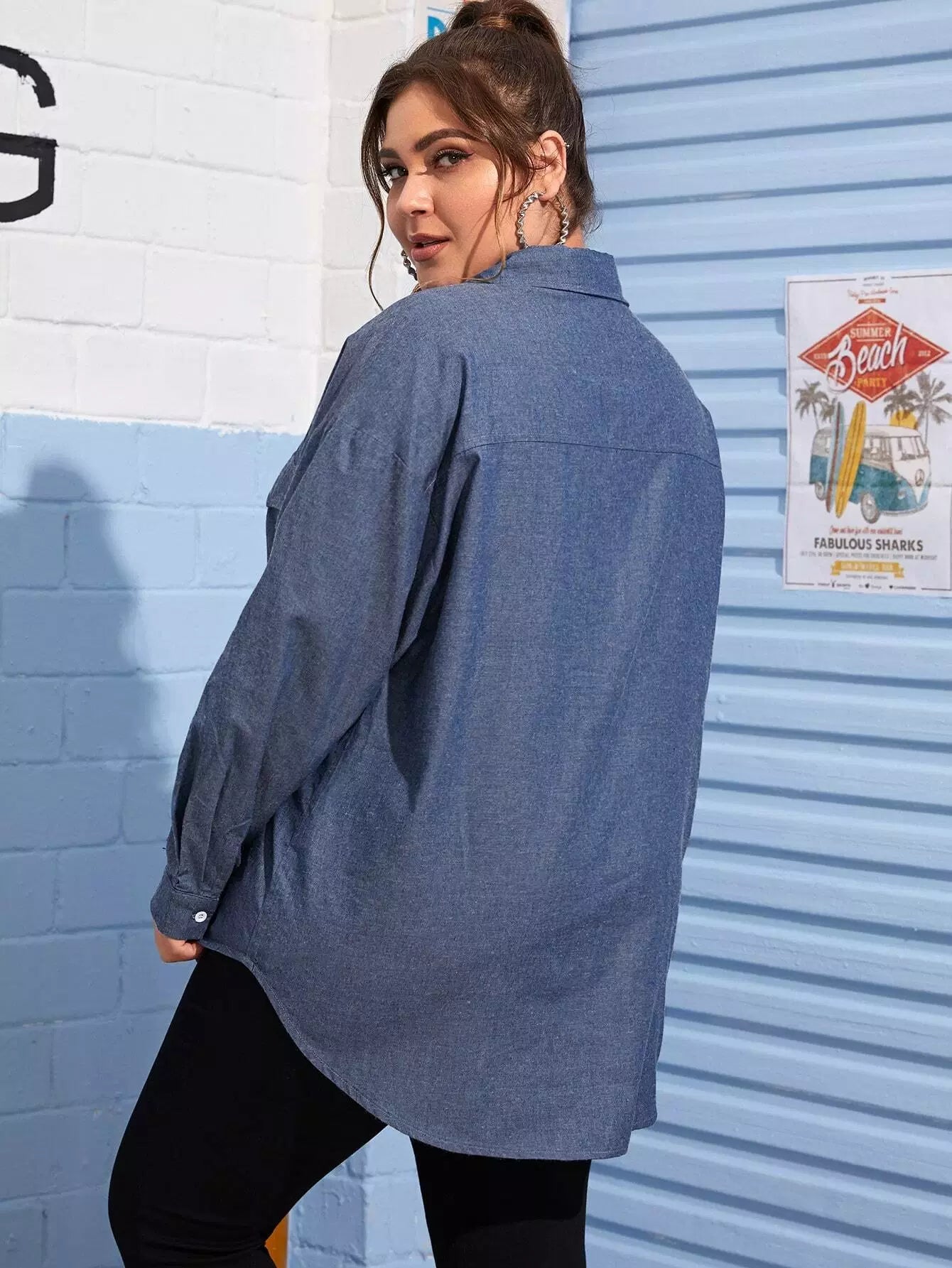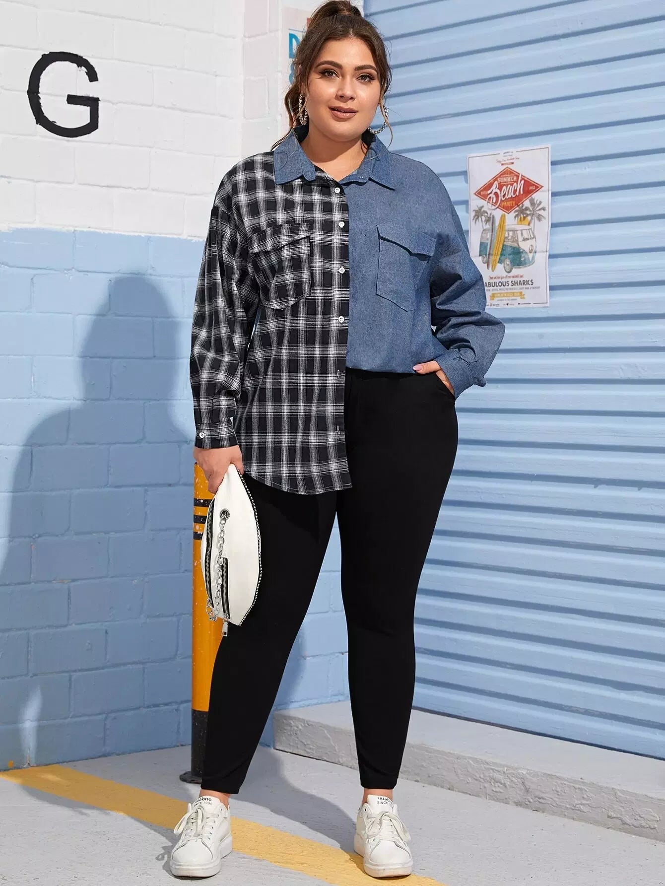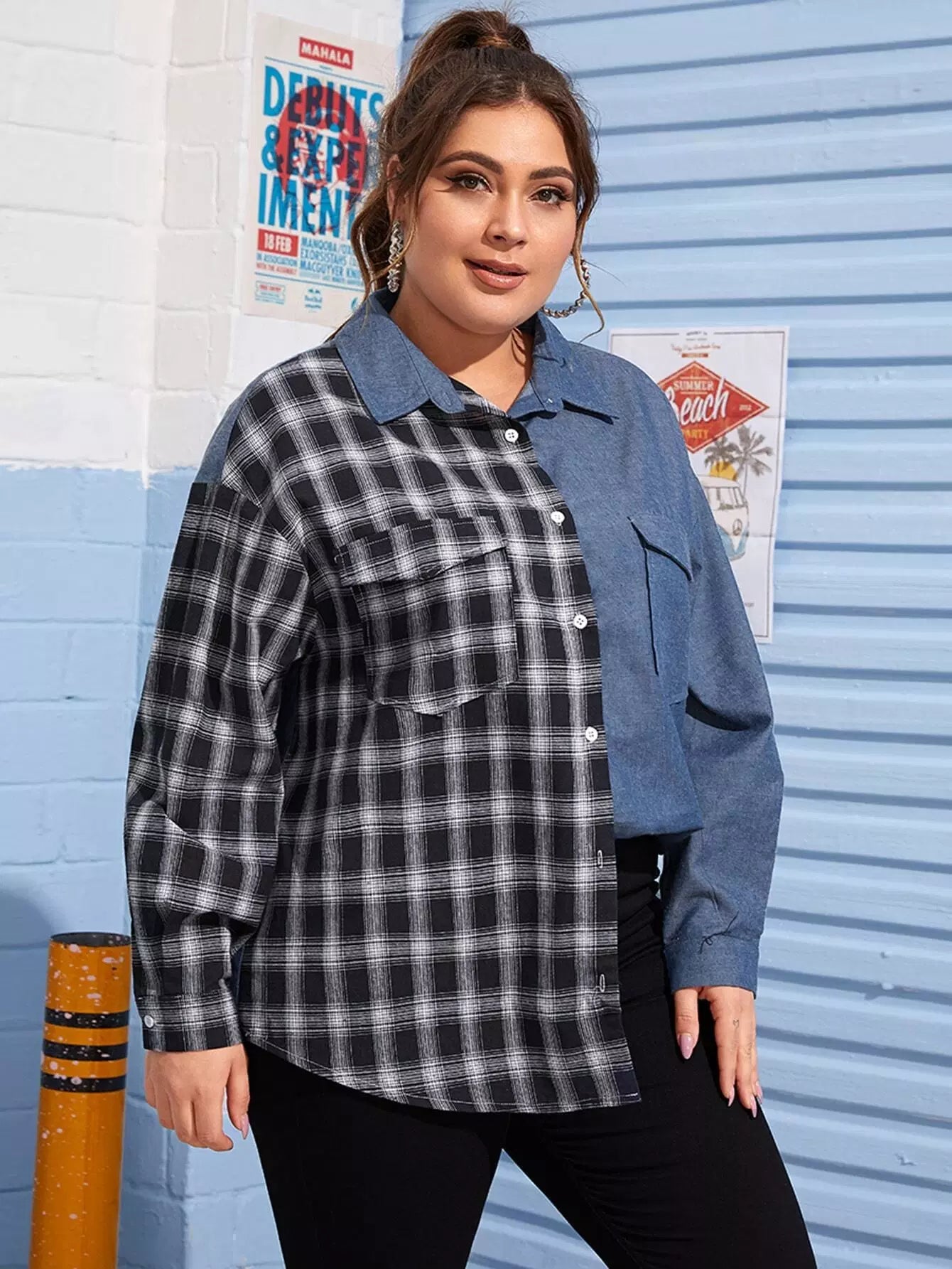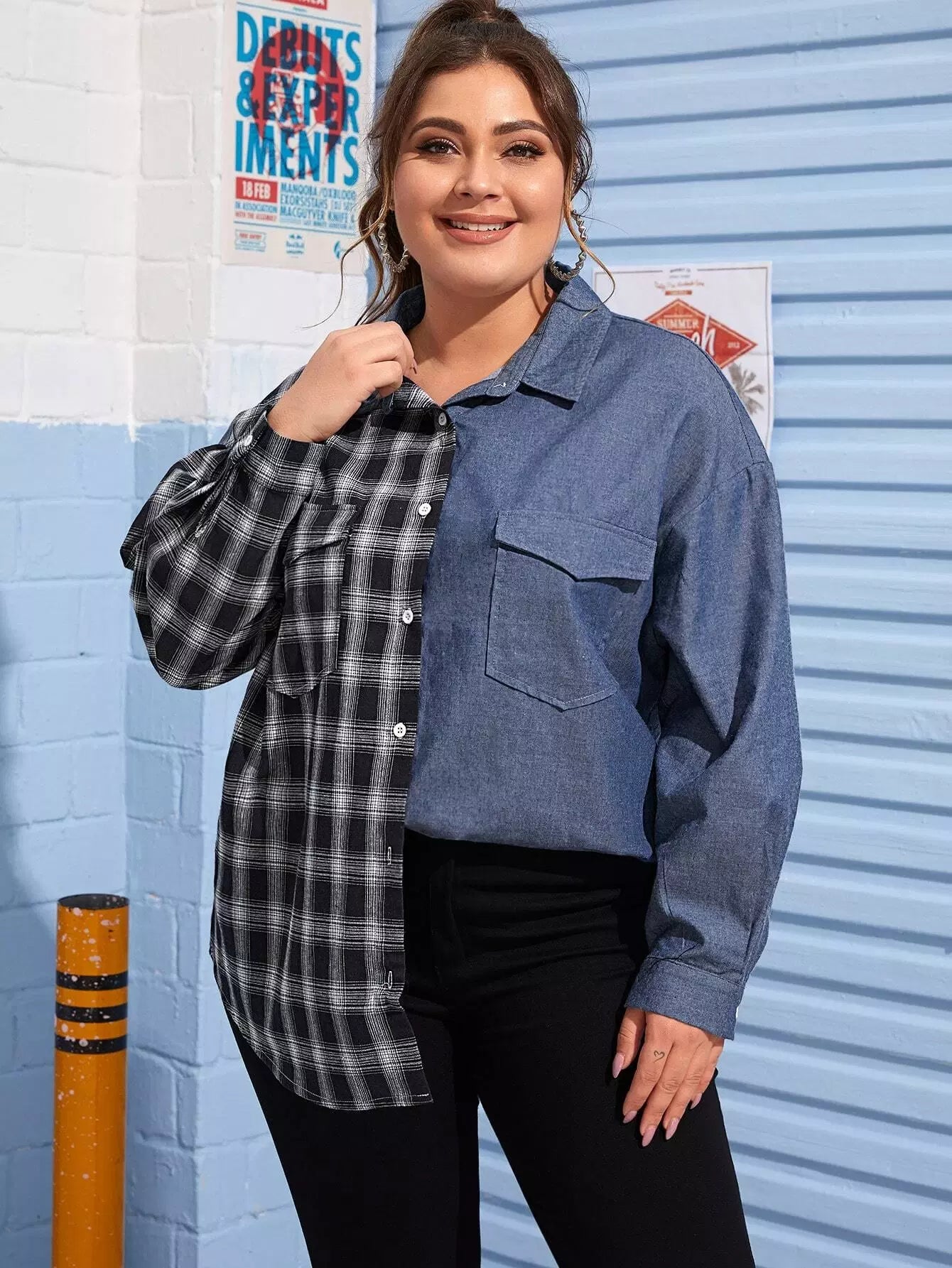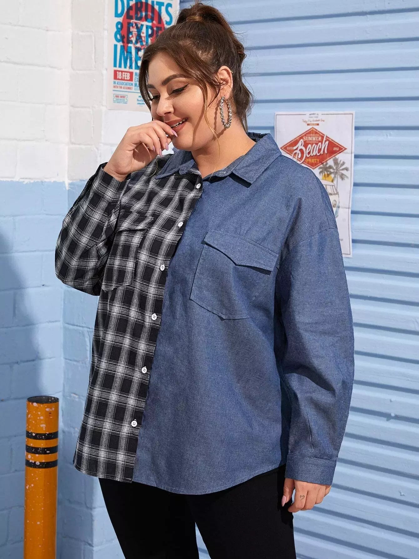 بلوزة منقوشة بجيب أمامي بفتحة أمامية منقوشة بفتحة أمامية بغطاء بلاس