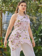 بلوزة كامي بحاشية غير متناسقة بطبعة زهور زائد