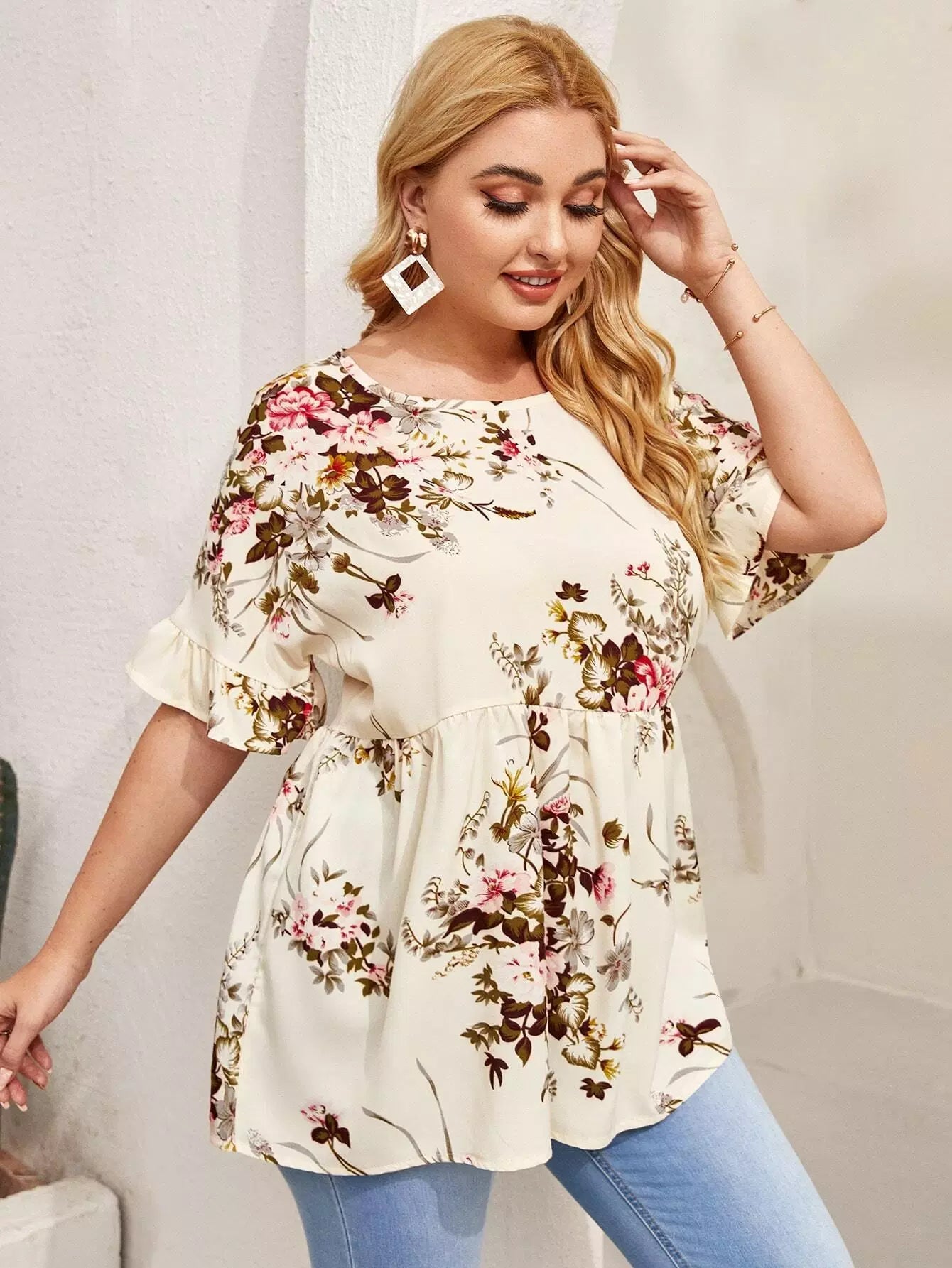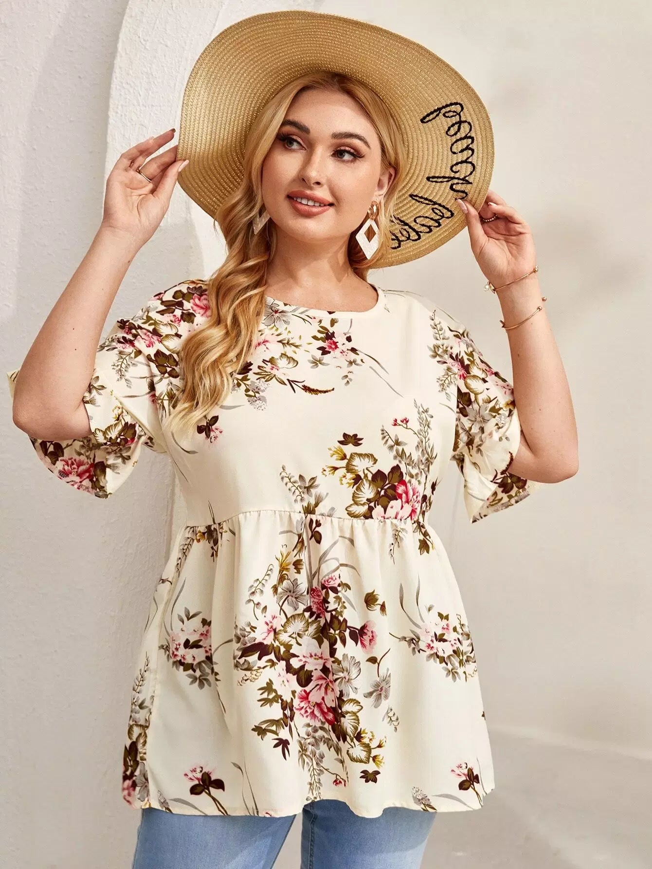 بلوزة بيبي دول مطبوع عليها زهور زائد