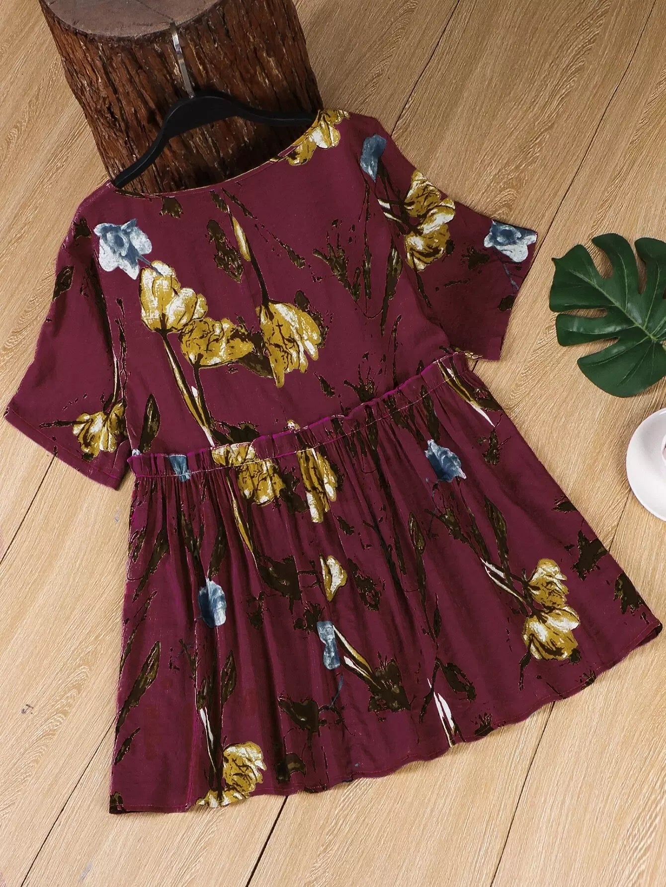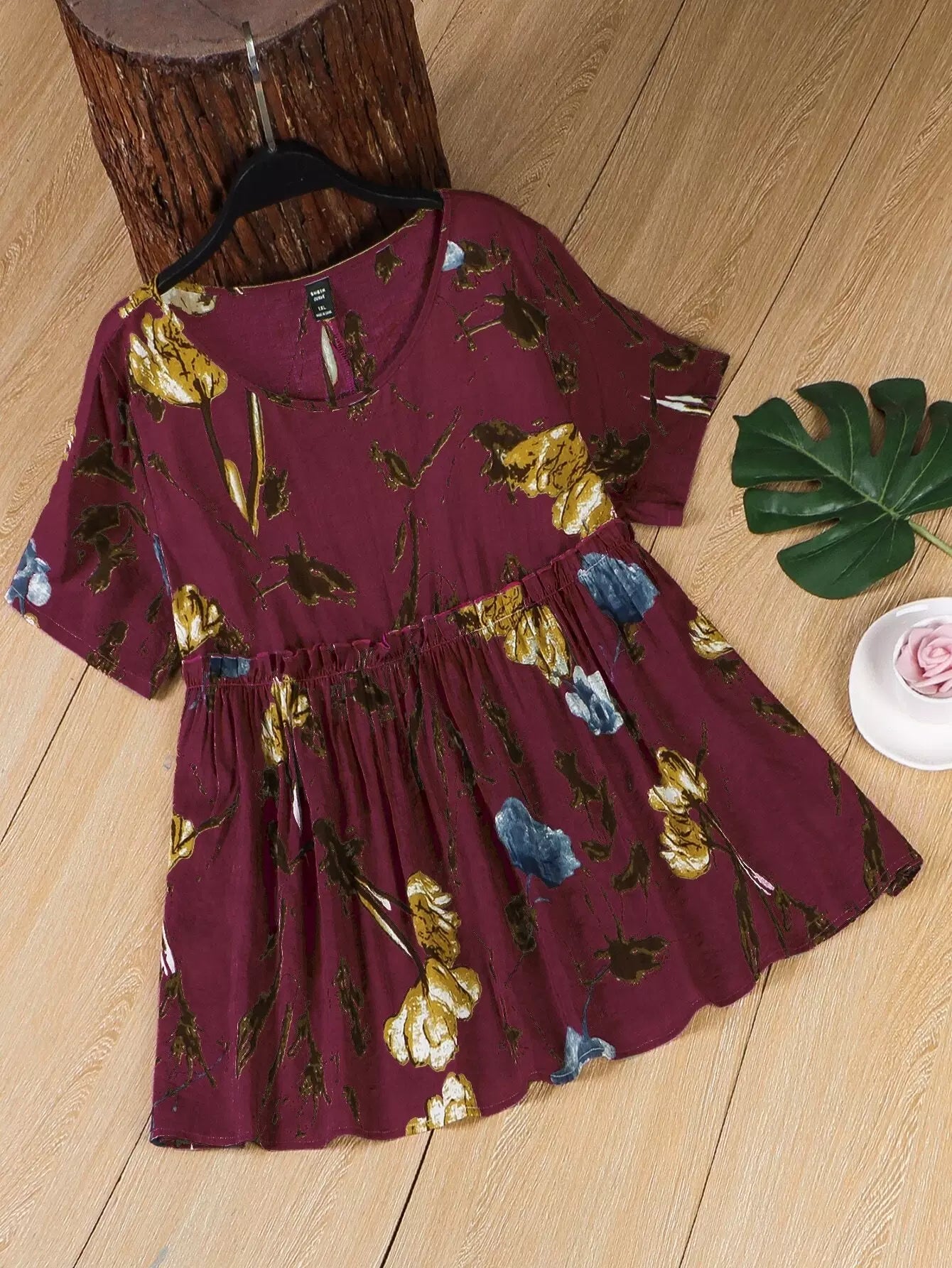 بلوزة سموك بحواف كشكش مطبوع عليها زهور زائد