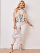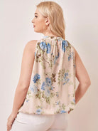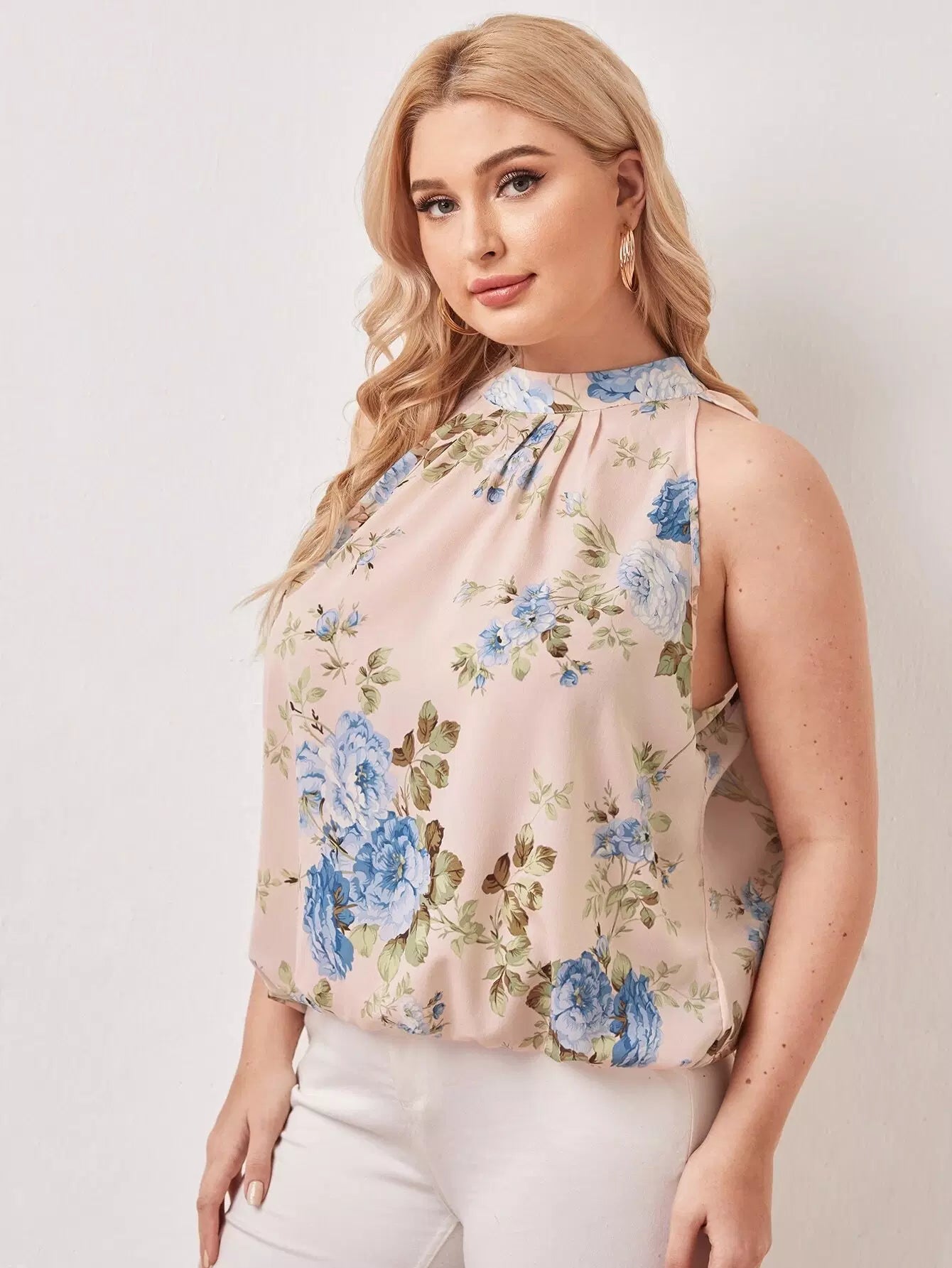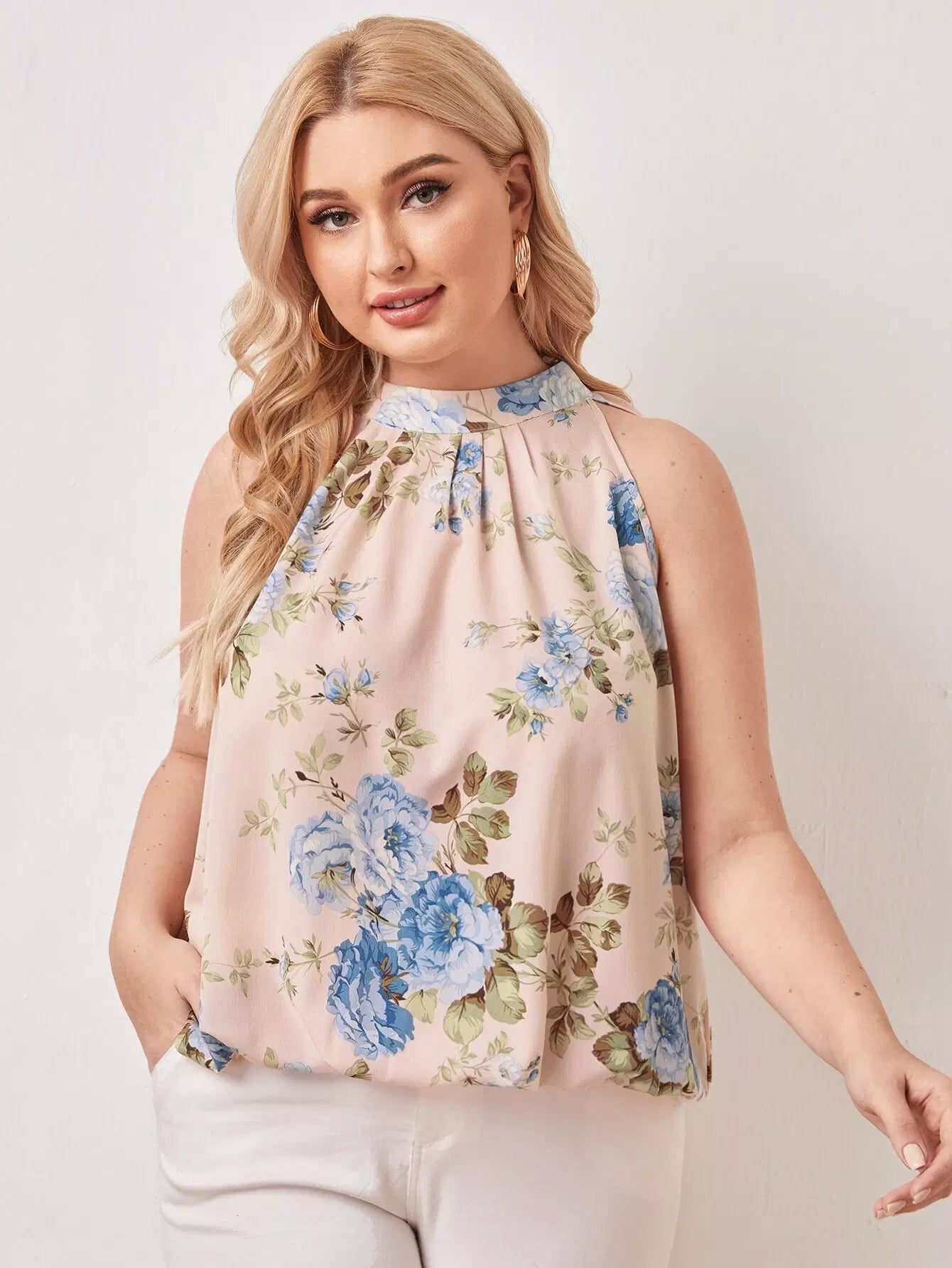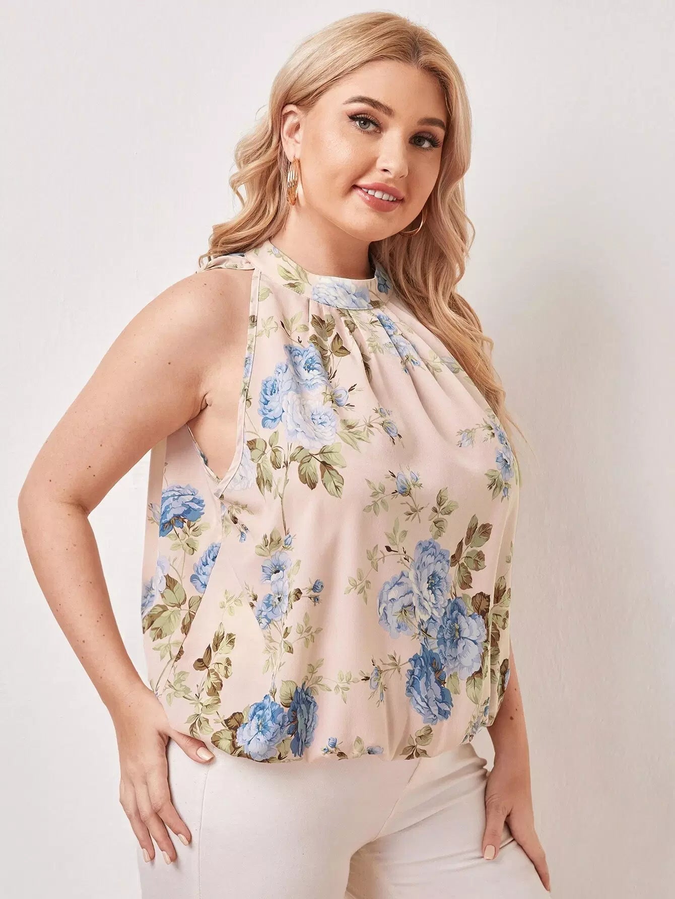 بلوزة بطبعة زهور مطبوع عليها رسن زائد