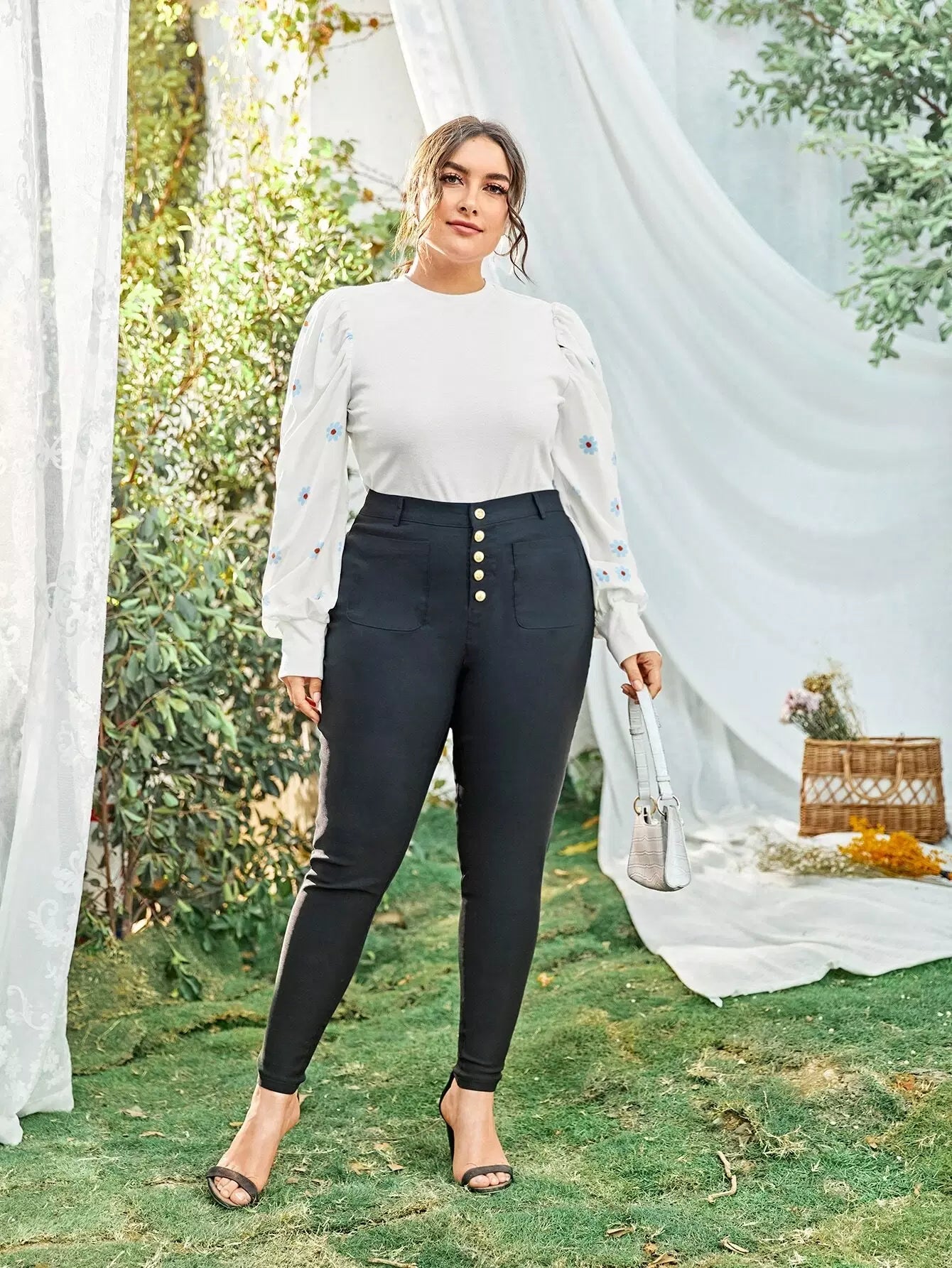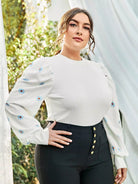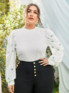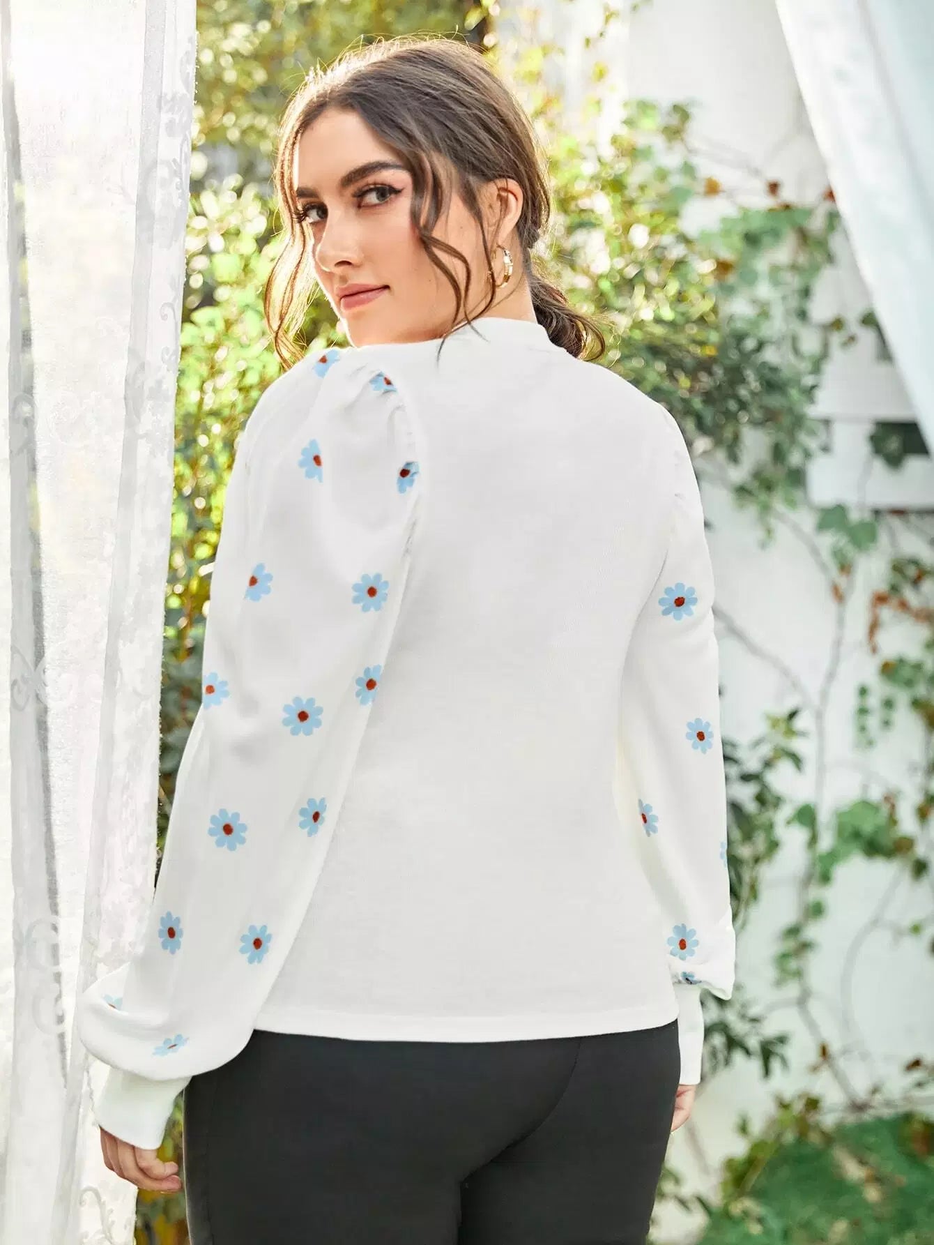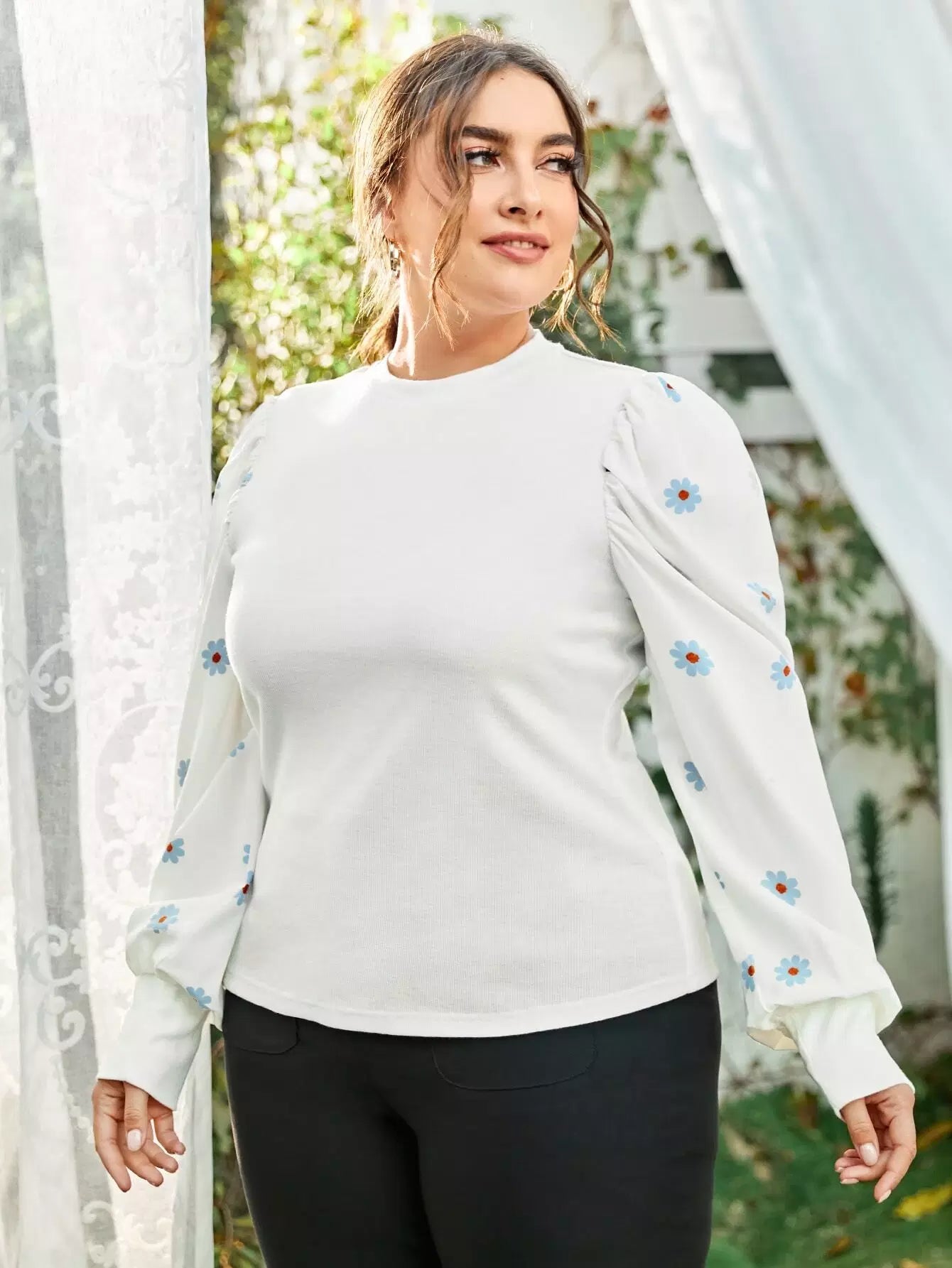 بلوزة بأكمام منفوشة بطبعة زهور بأكمام منفوشة ومحبوكة على شكل ضلع