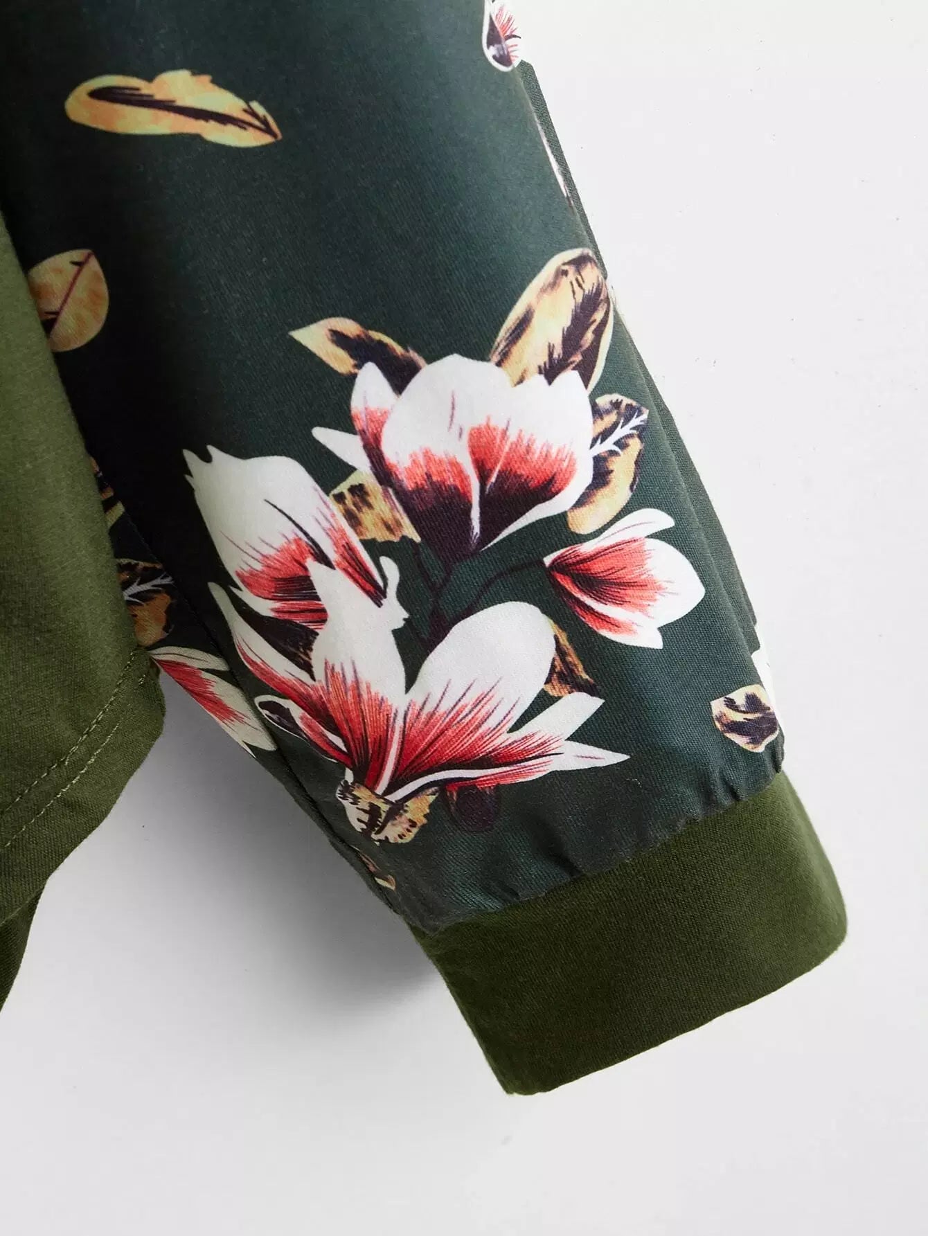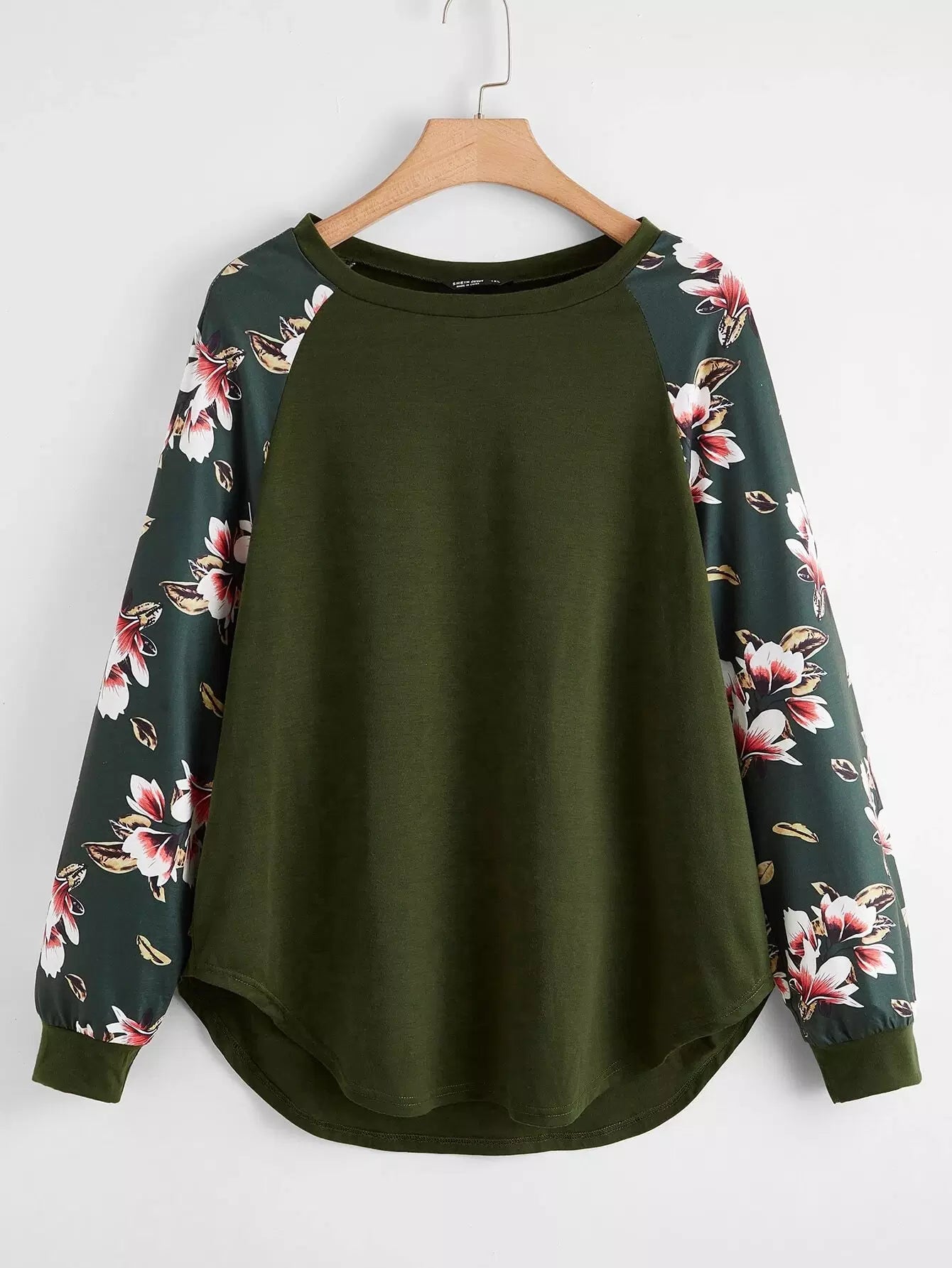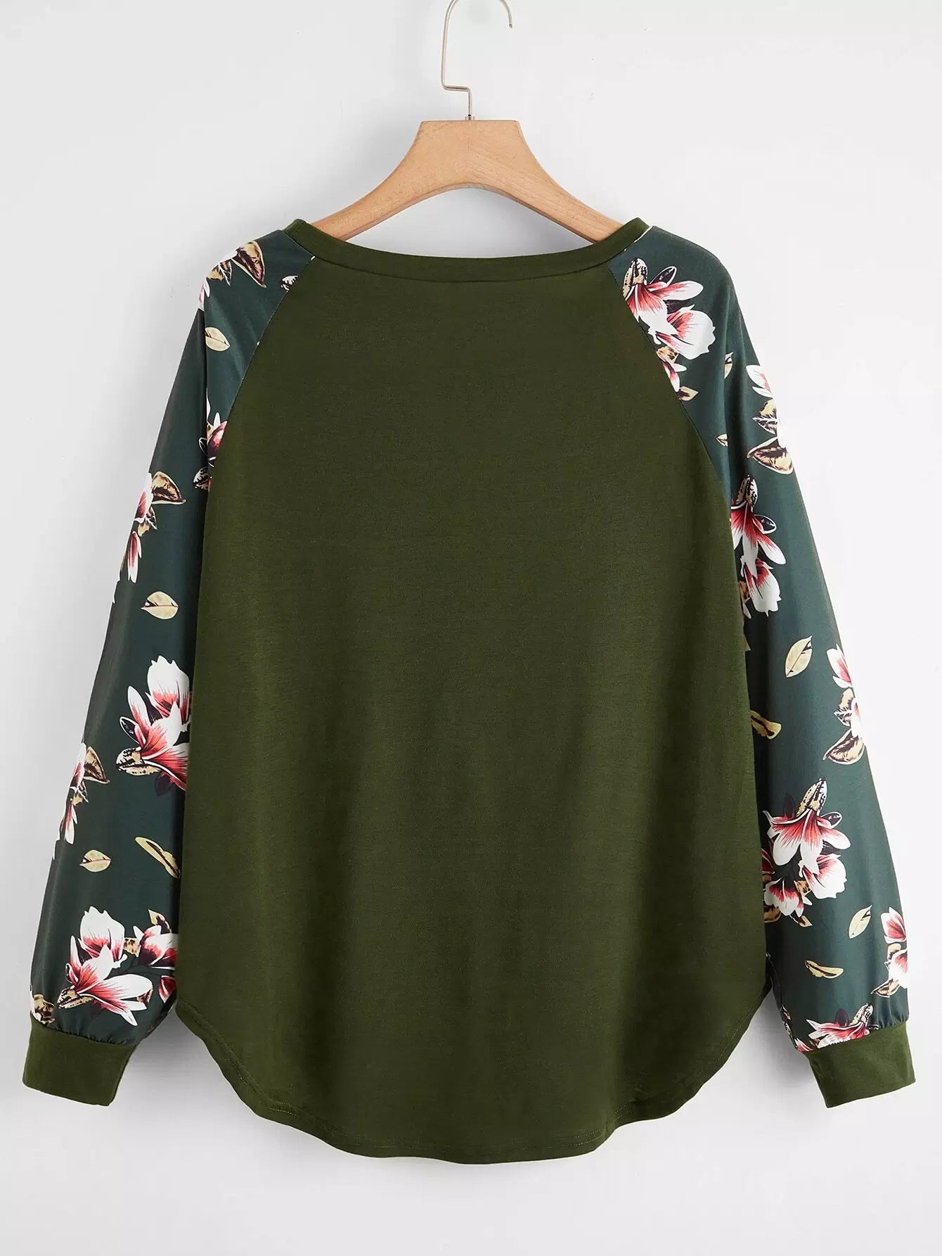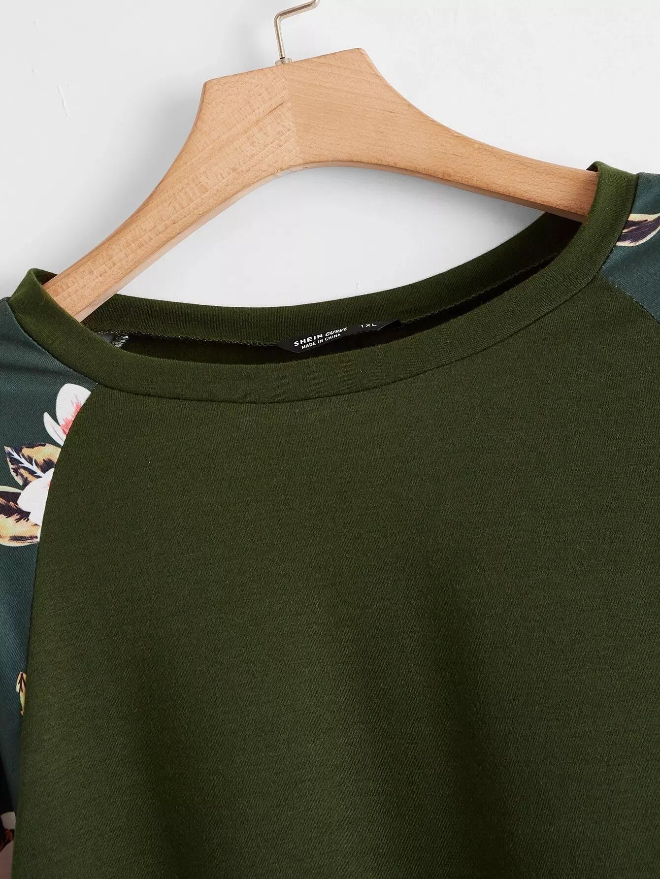 تي شيرت بأكمام راجلان مطبوع عليه زهور زائد
