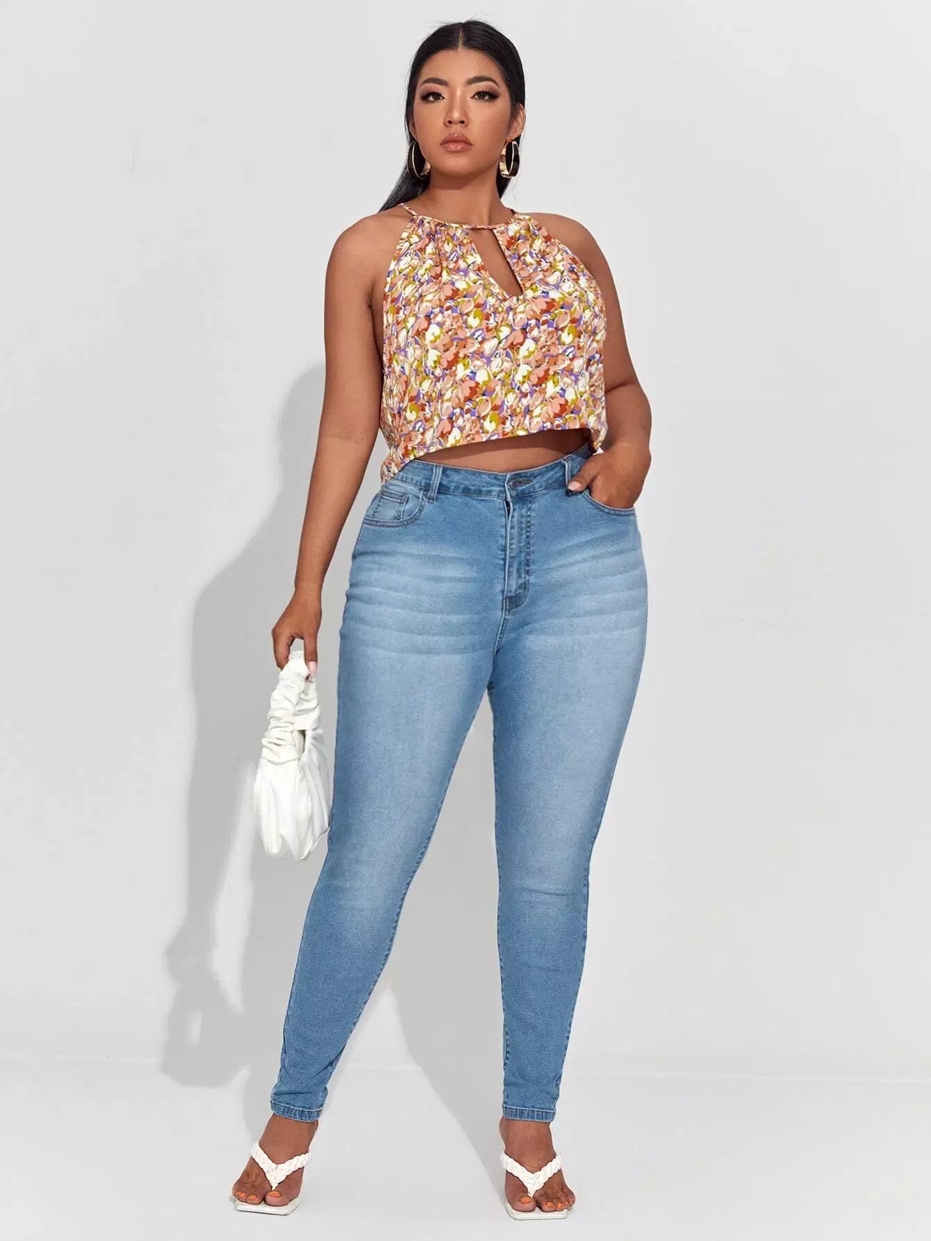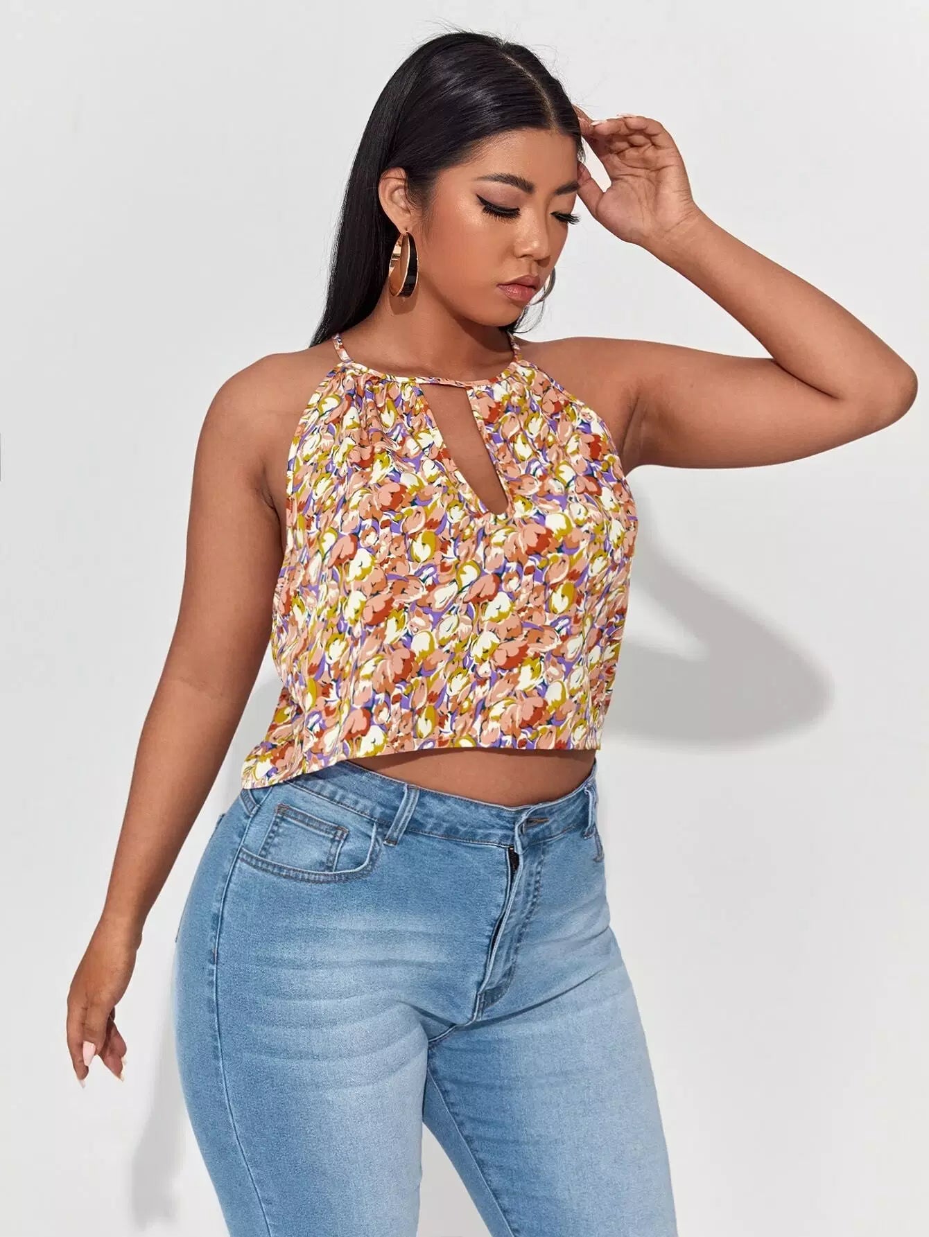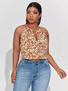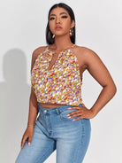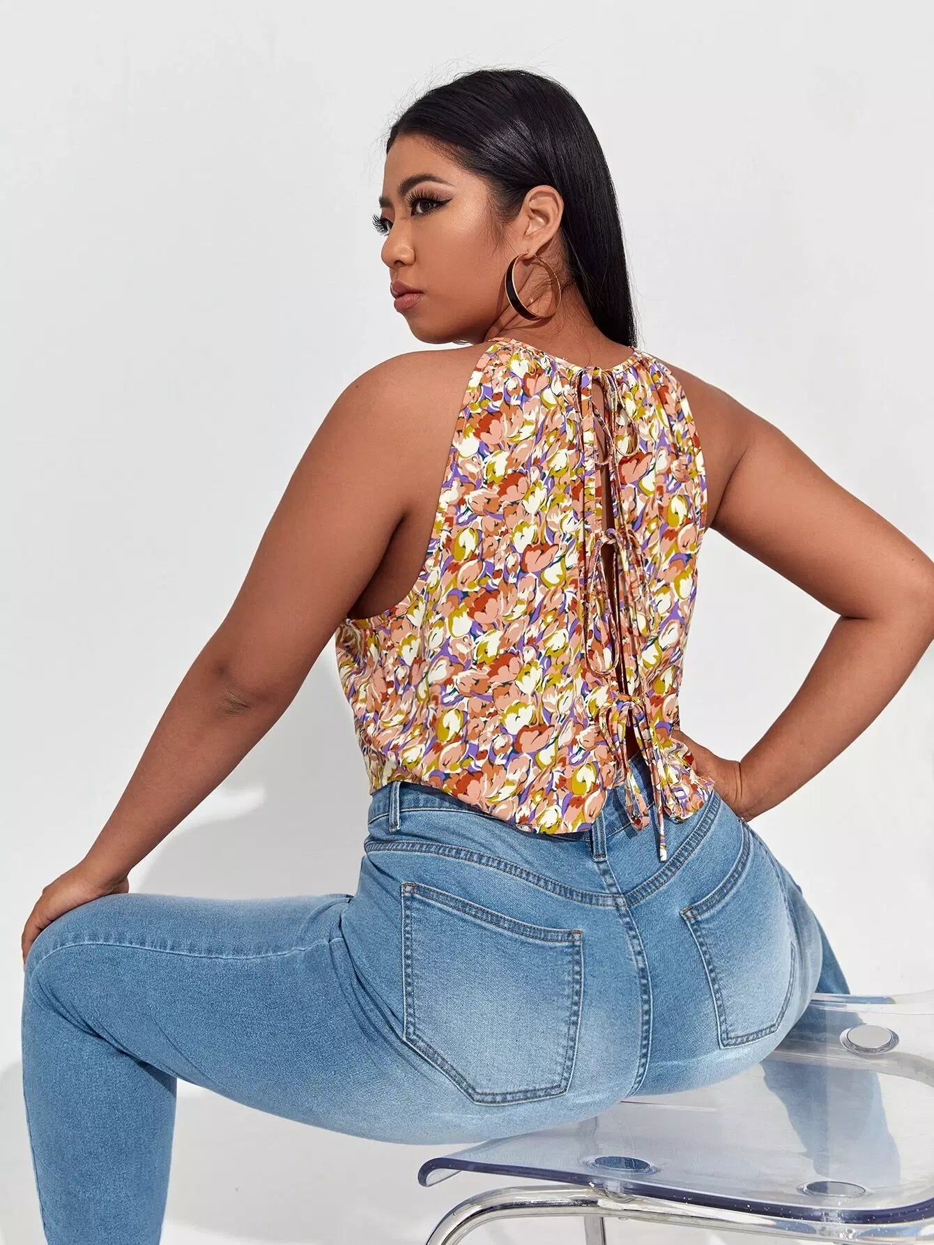 بلوزة بطبعة زهور مطبوعة بربطة عنق على الظهر زائد