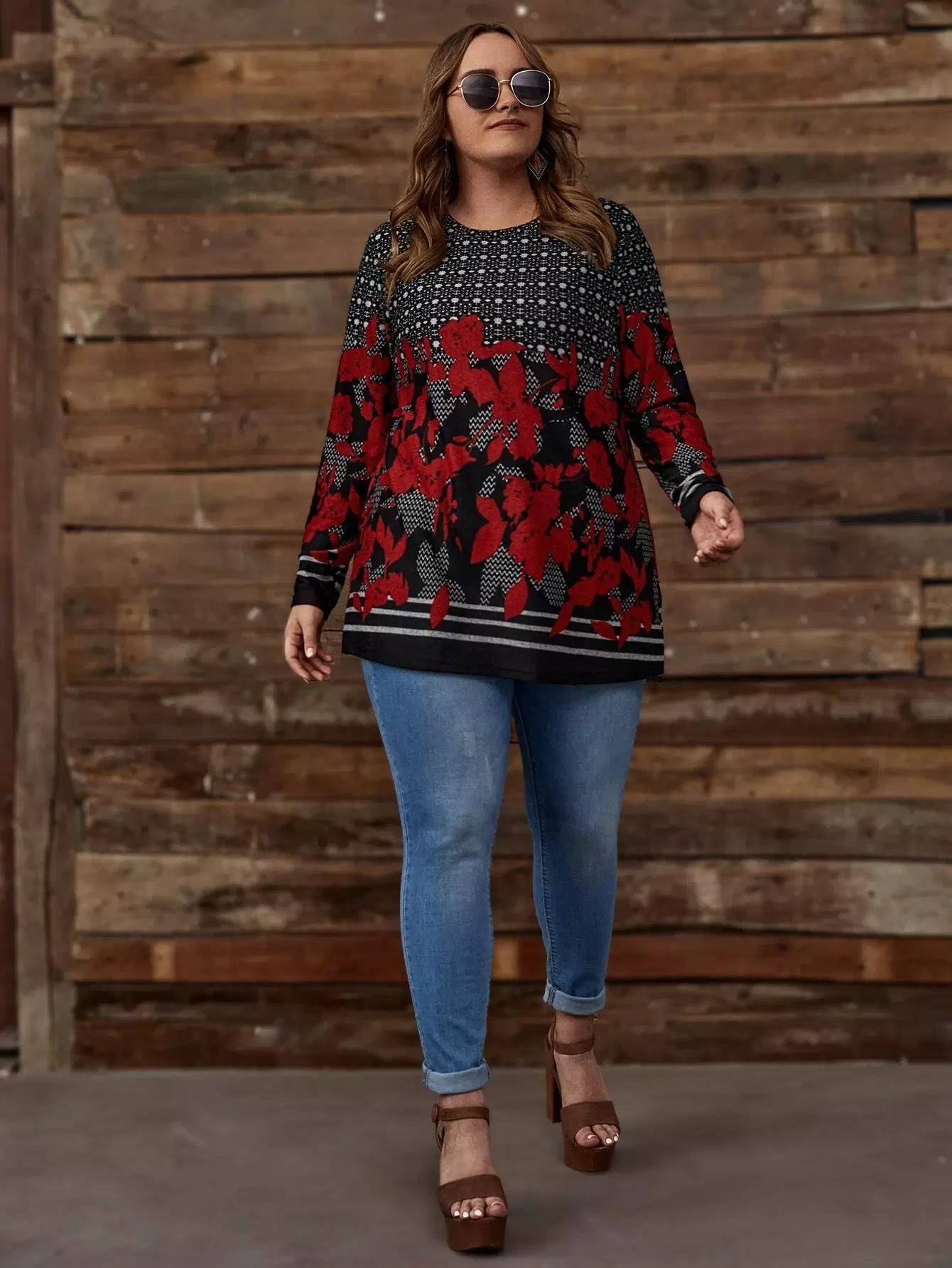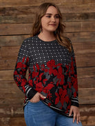 نحيف - مقاس كبير تي شيرت تونك مطبوع بالأزهار والمخطط
