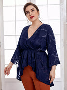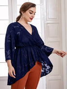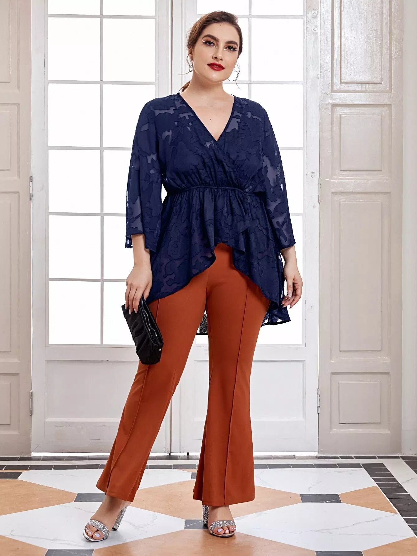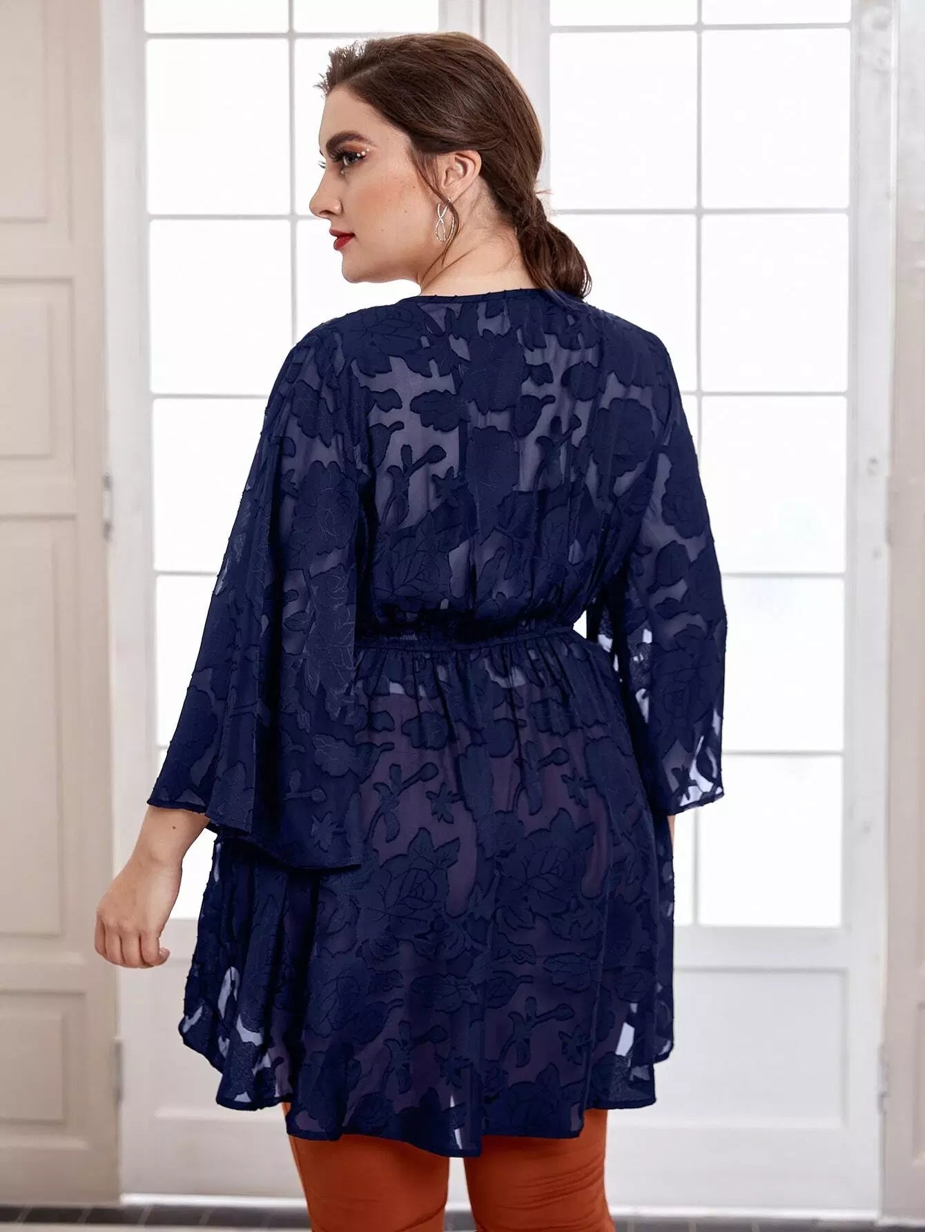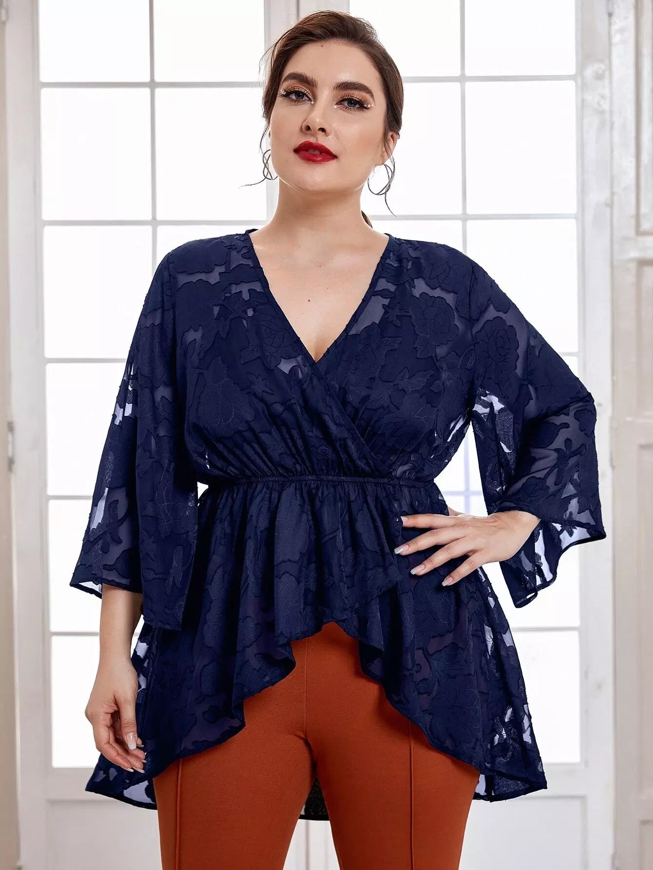 بلوزة بحاشية كشكش غير متناسقة بنقوش زهرية غير متناسقة
