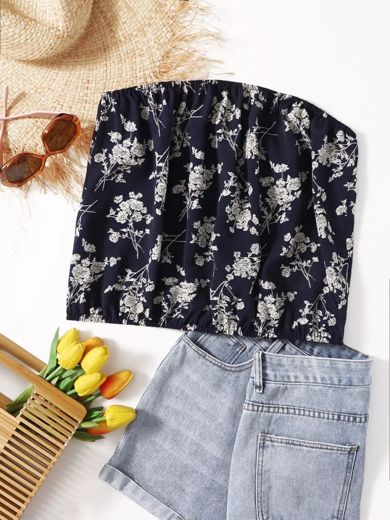 بلوزة أنبوبي زهور زائد