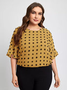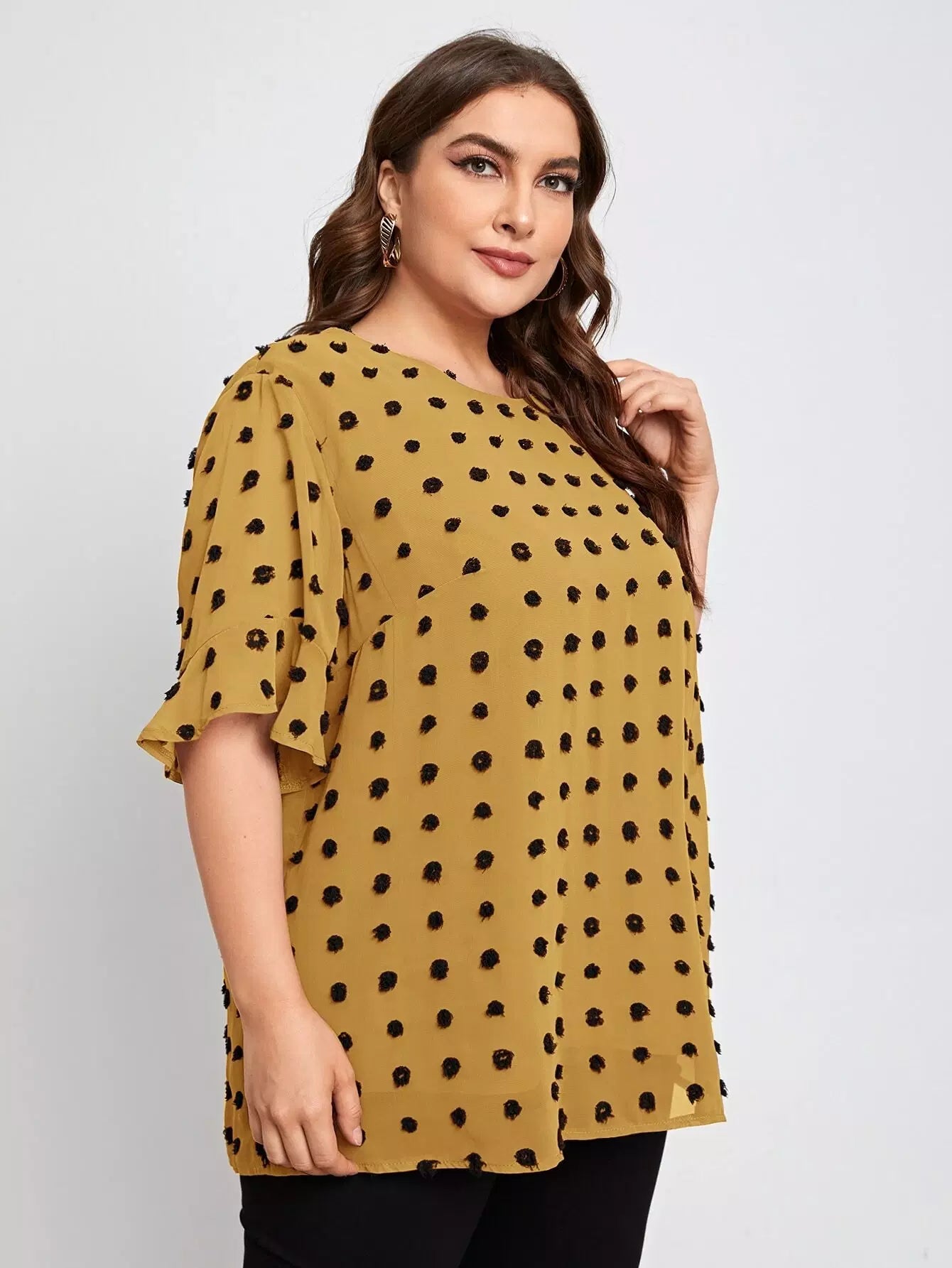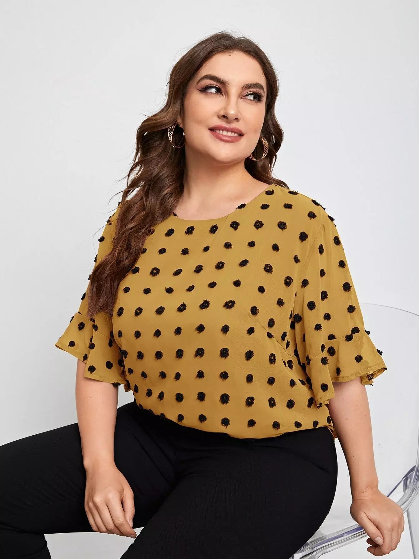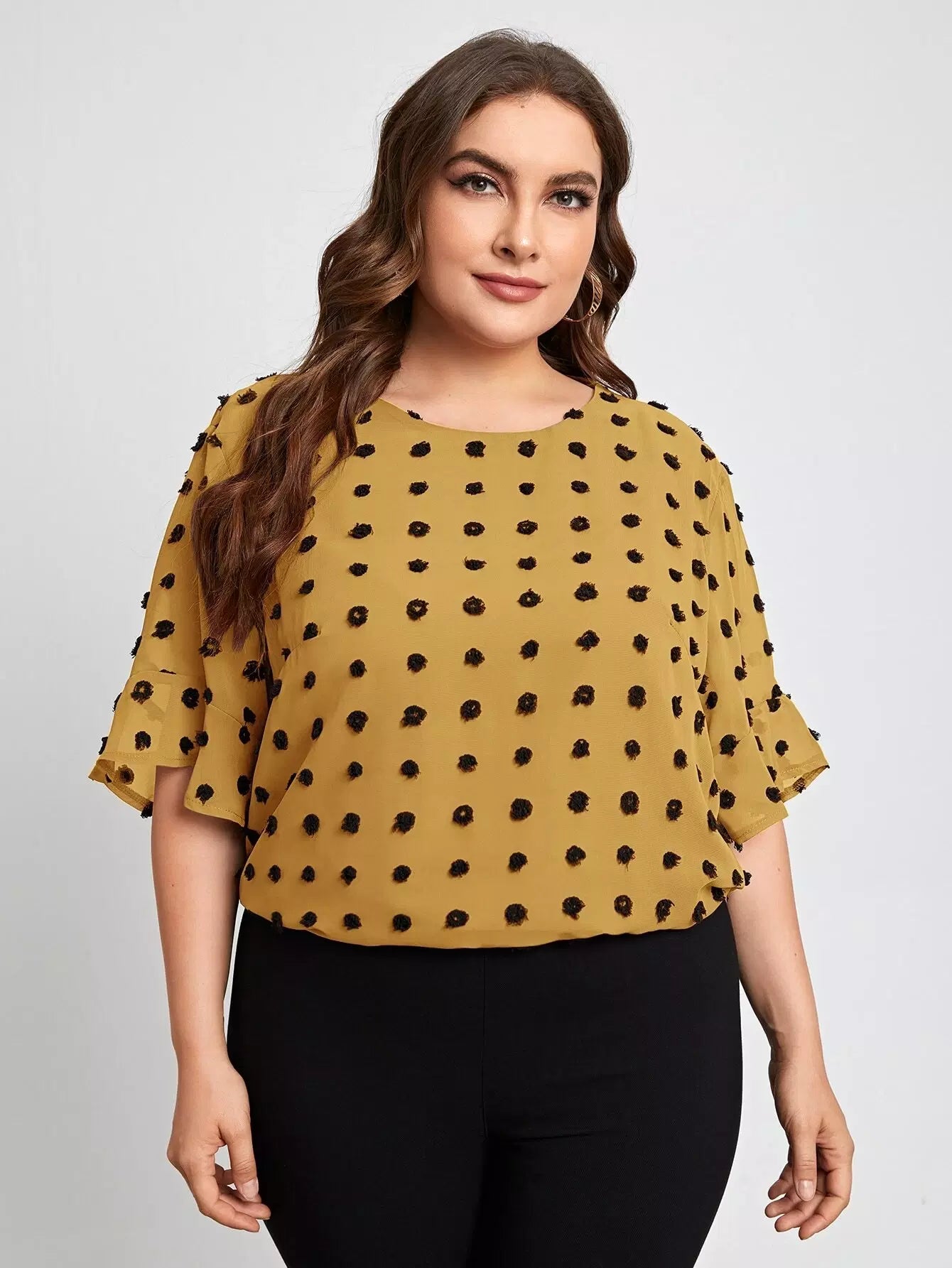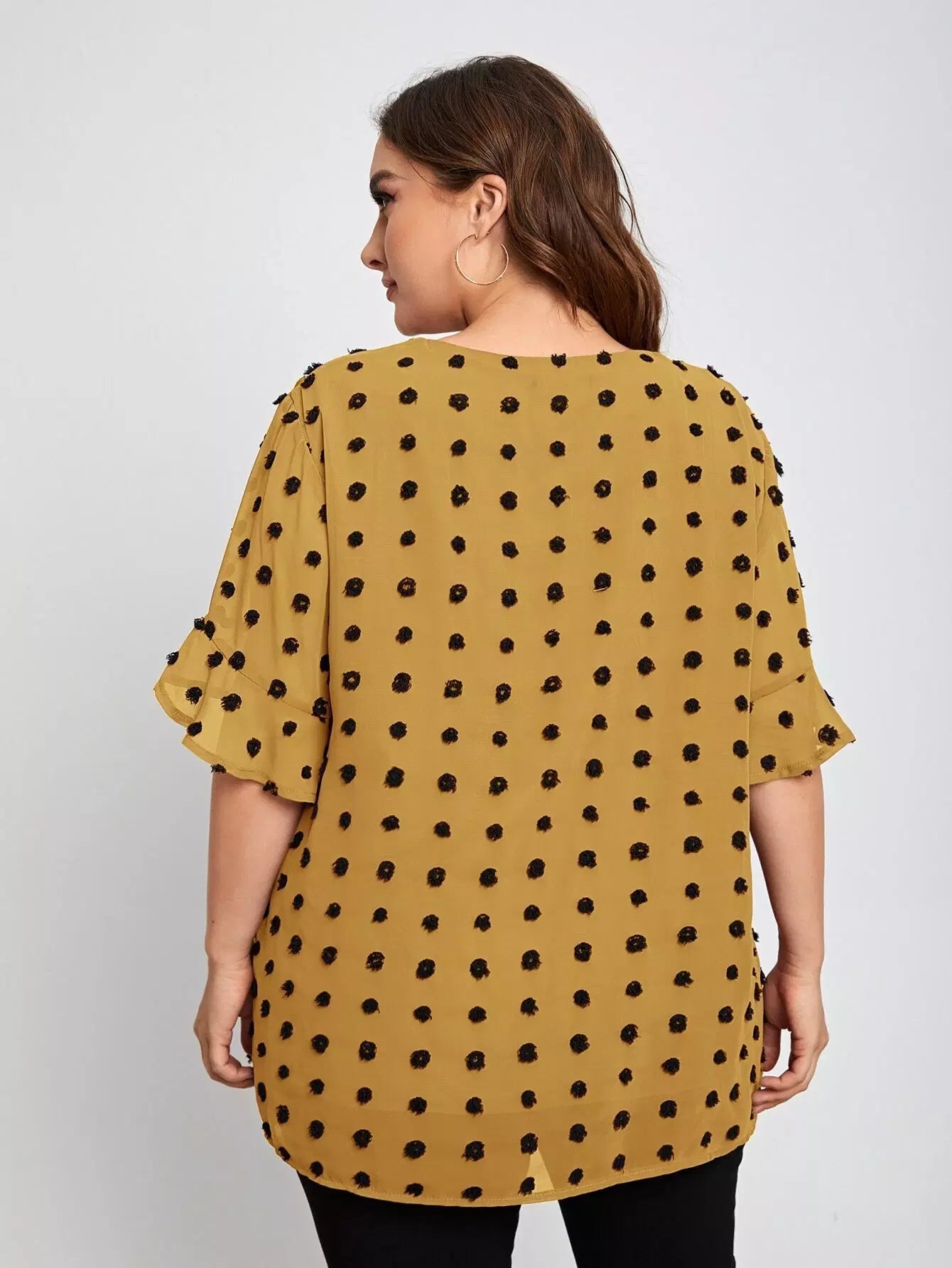 بلوزة شيفون من الشيفون المنقّط السويسري بأكمام منفوشة بلون مغاير