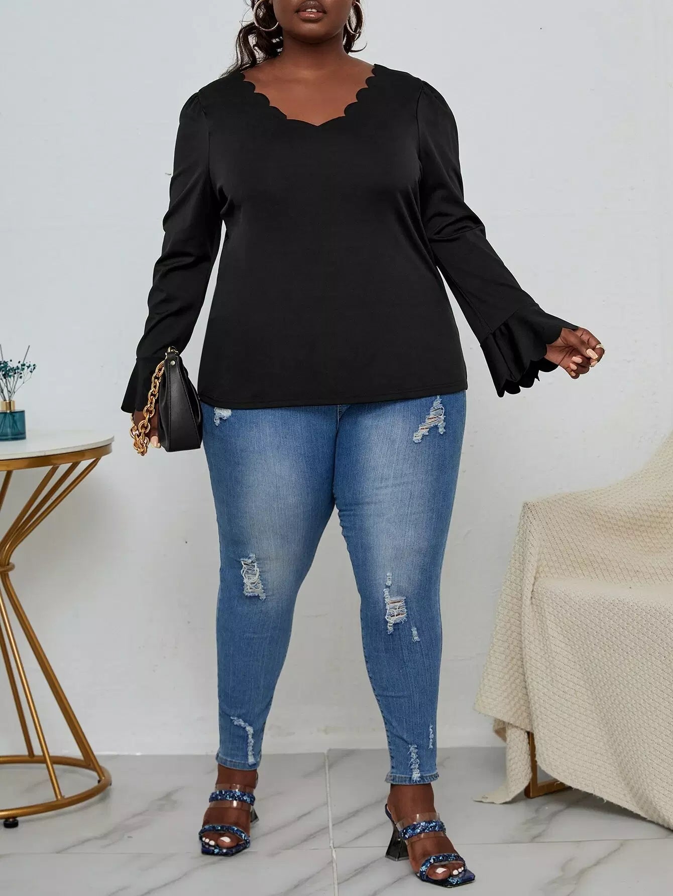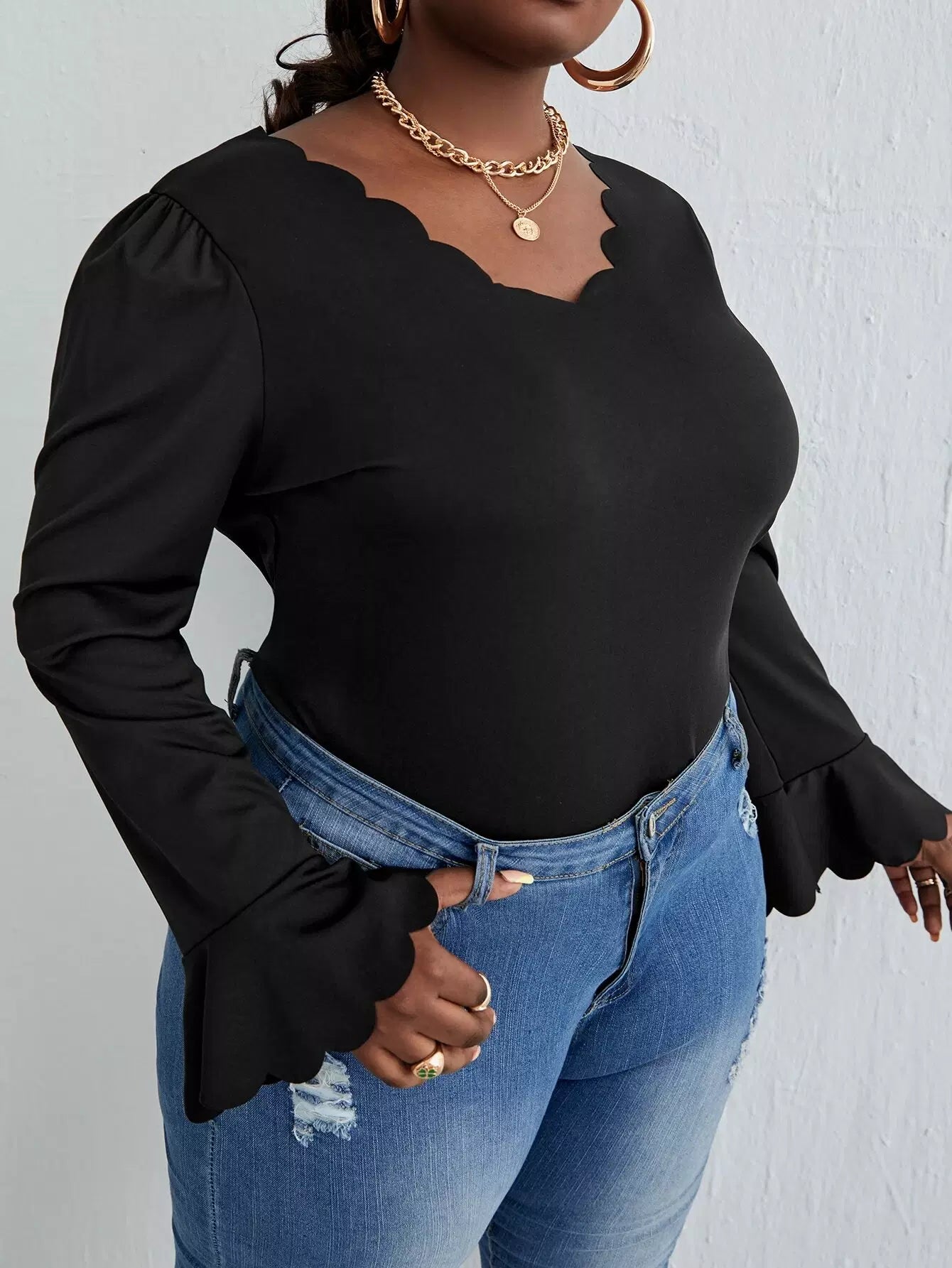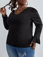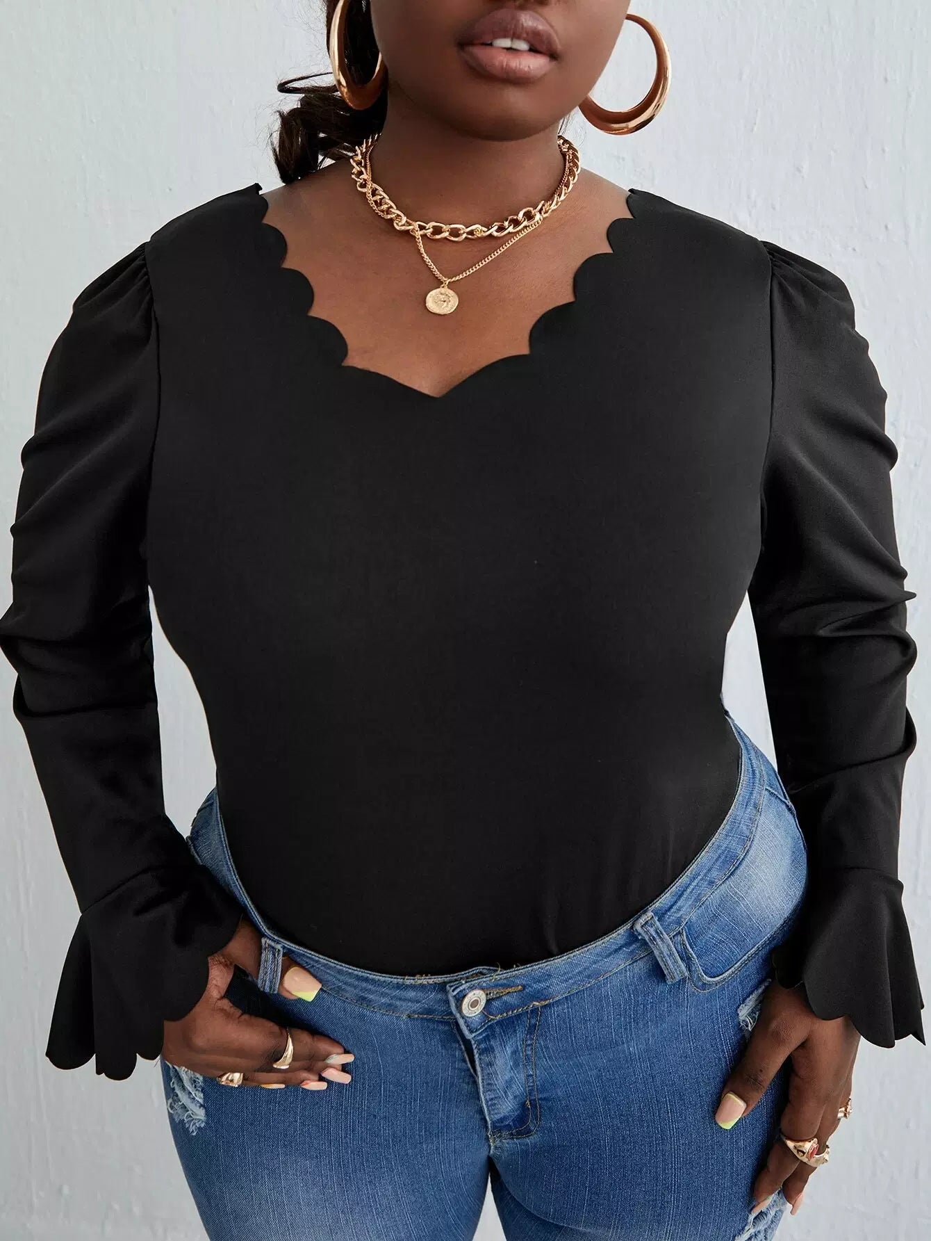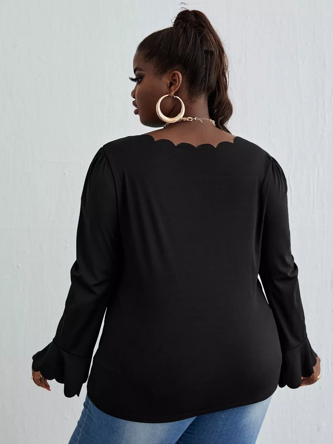 بلوزة بأكمام منفوشة بأكمام منفوشة بحافة صدفية