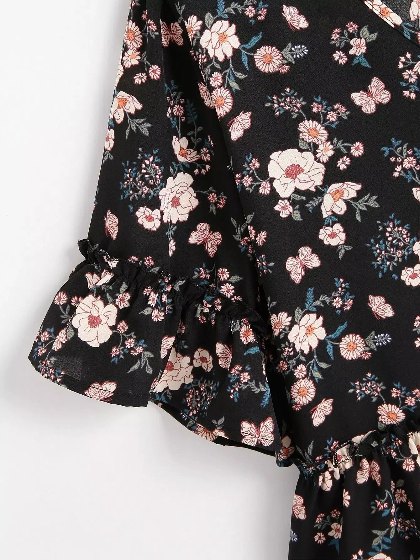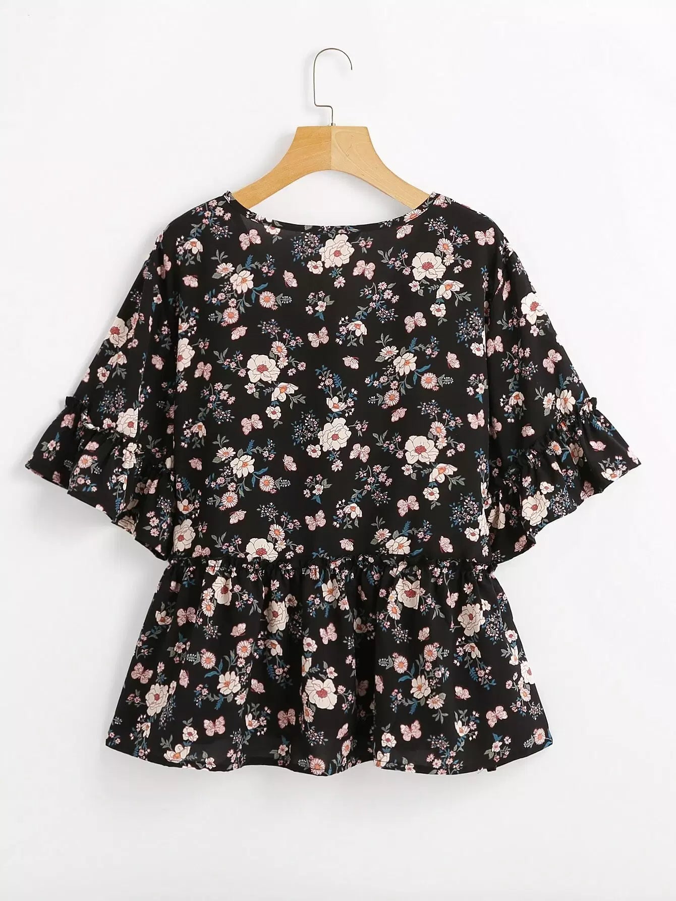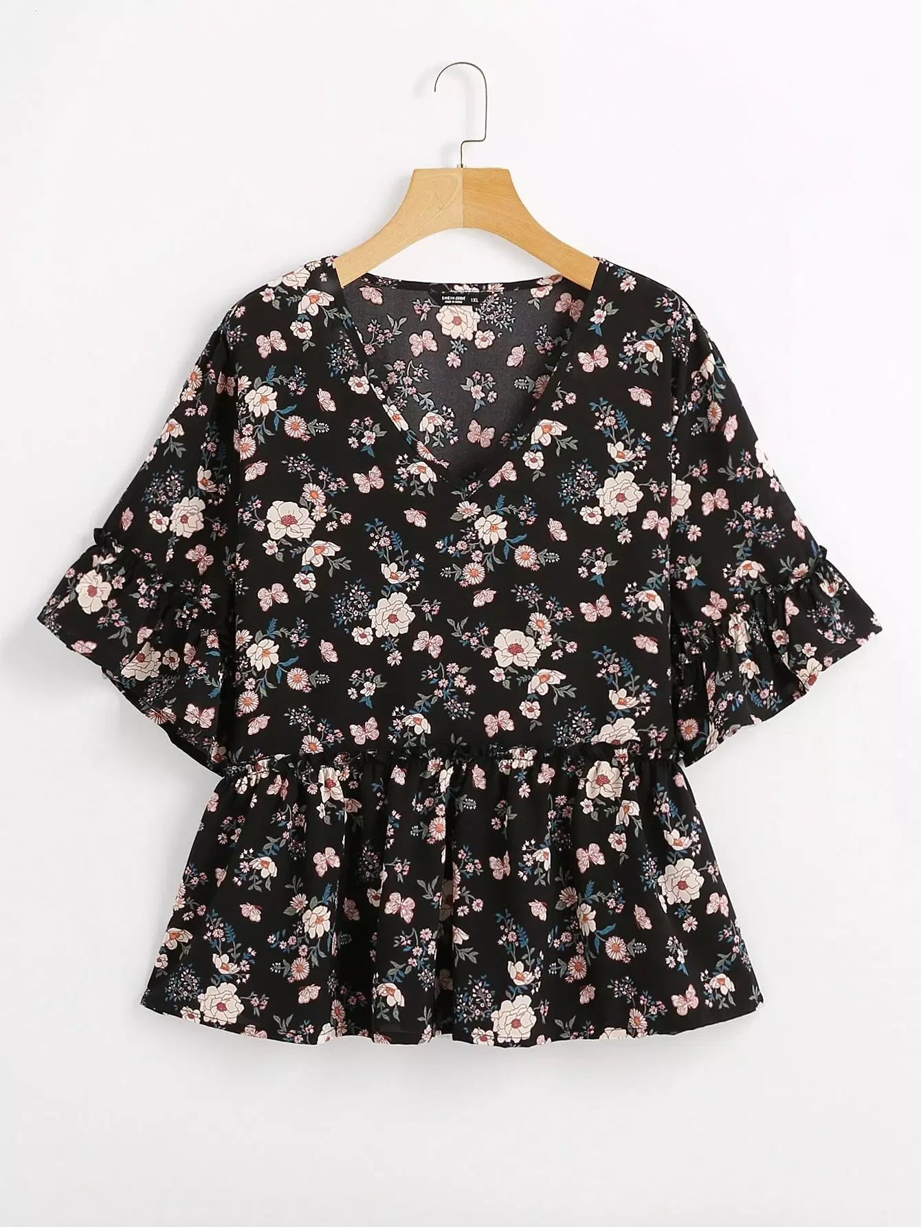بلوزة بيبي دول مطبوع عليها زهور زائد