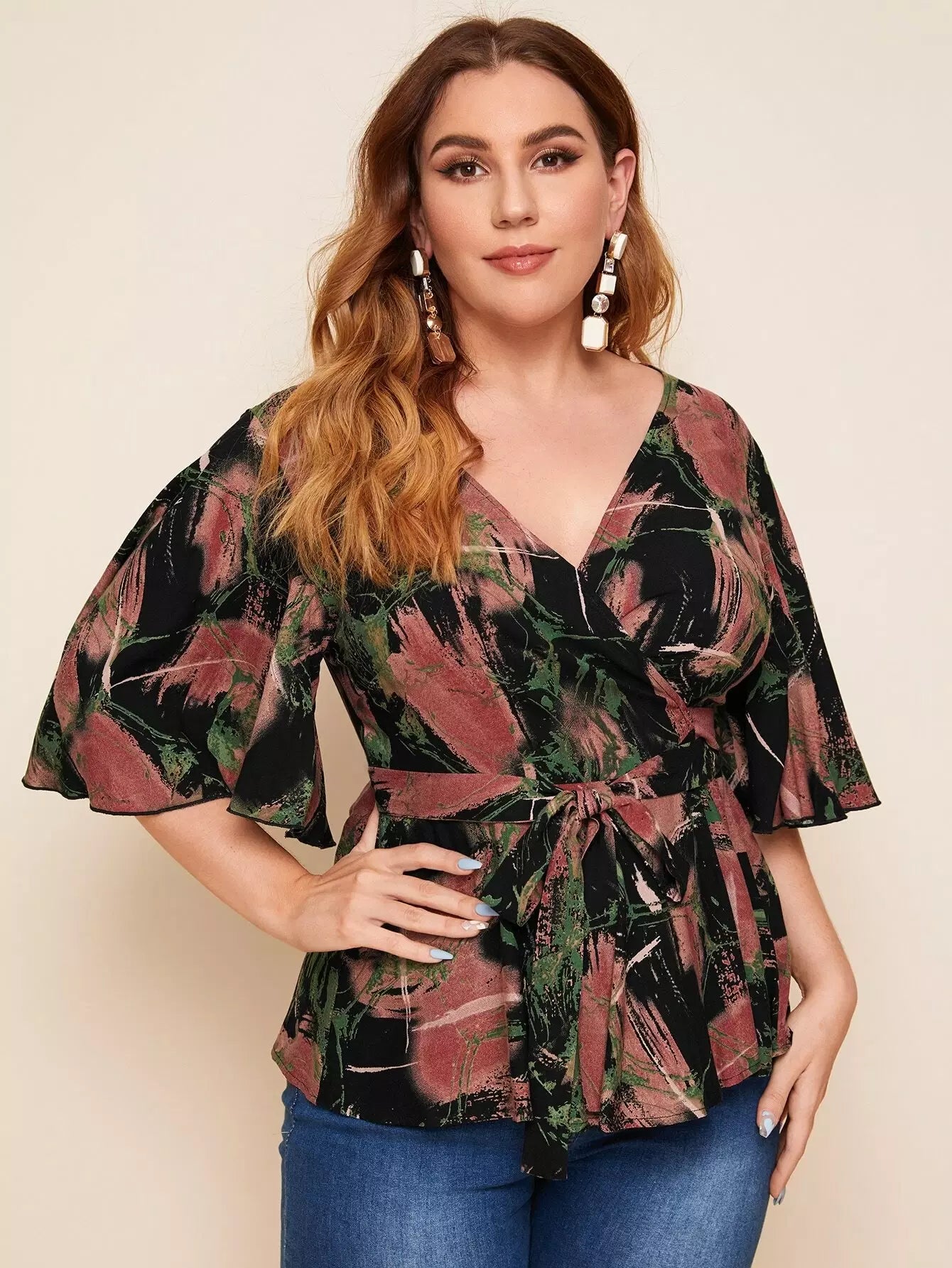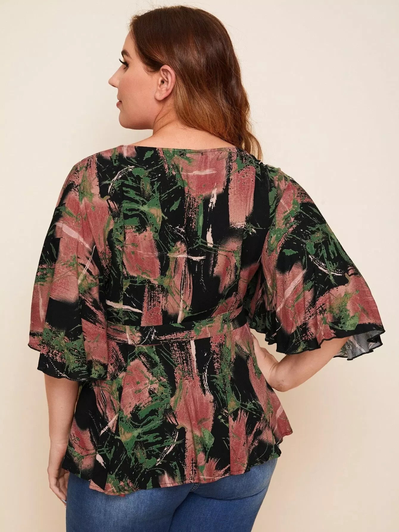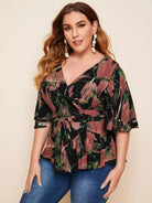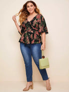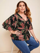 بالإضافة إلى الأكمام الرفرفة Surplice الرقبة أعلى Peplum بدون حزام