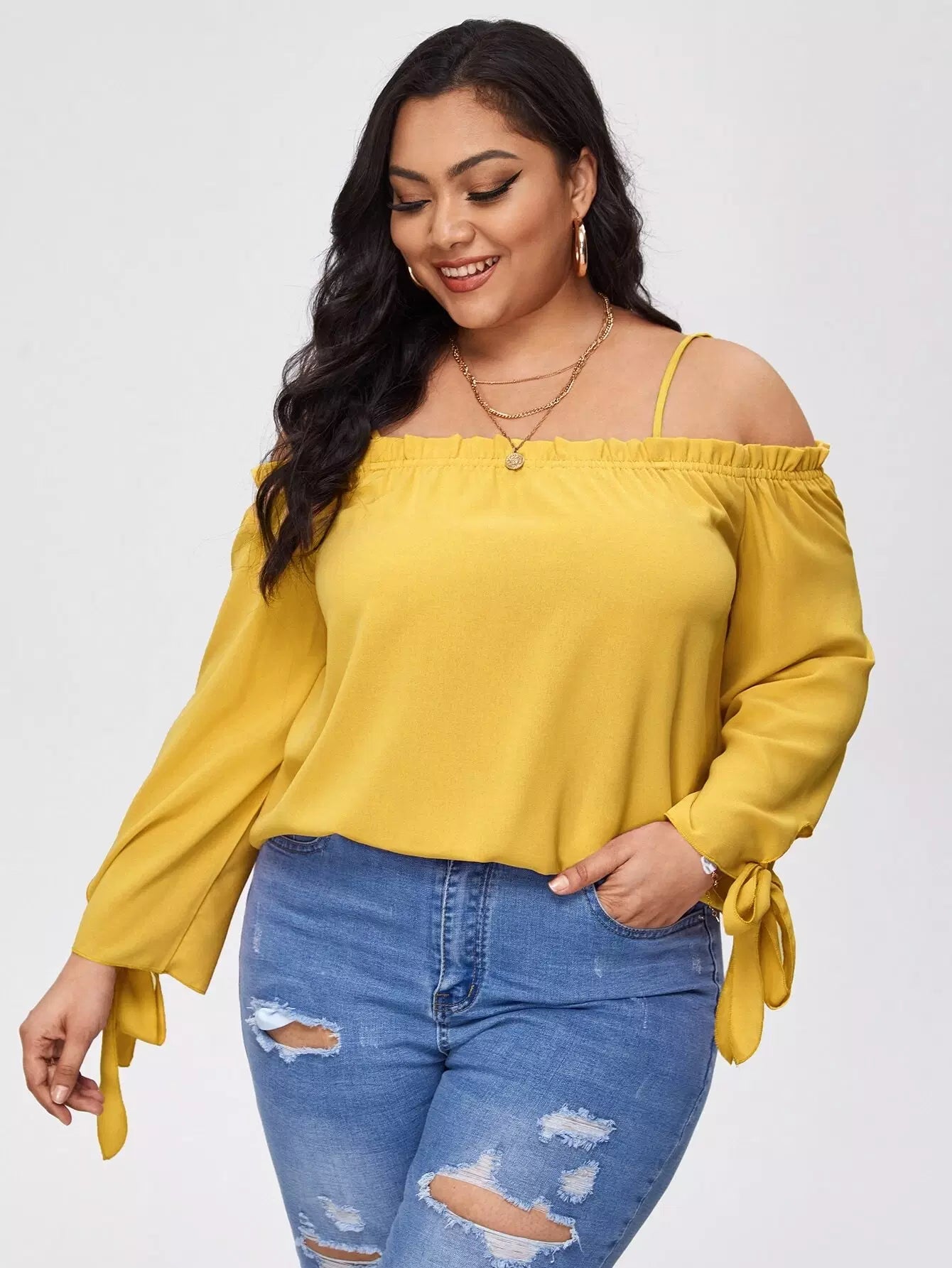 بلوزة سادة بحواف كشكش بحواف كشكش زائد